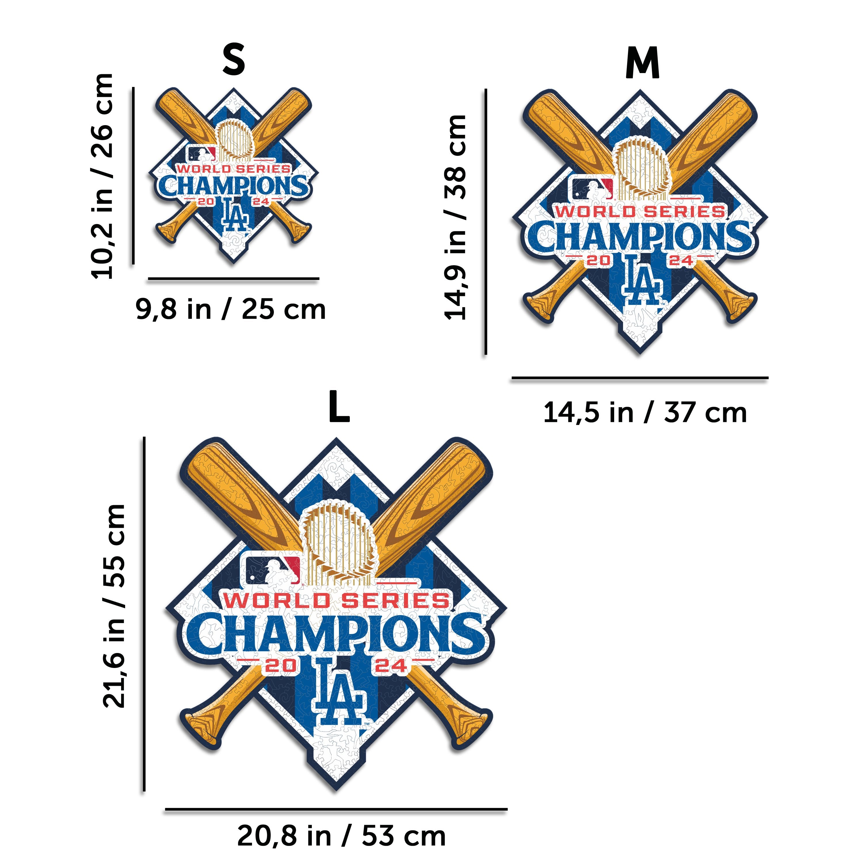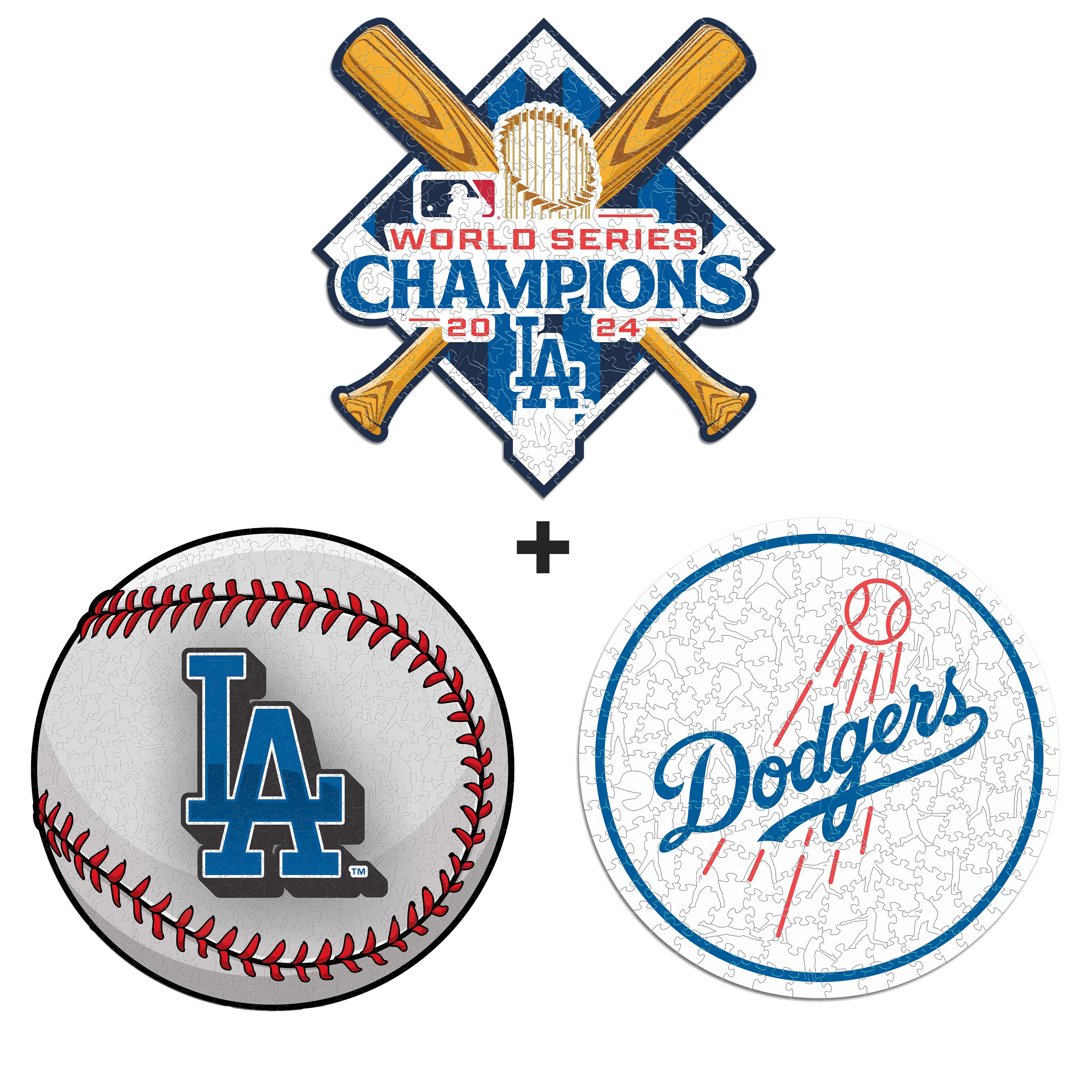 ✓ 3x (Los Angeles Dodgers™ Ball + Primary Logo + 2024 World Series) Official Wooden Puzzles