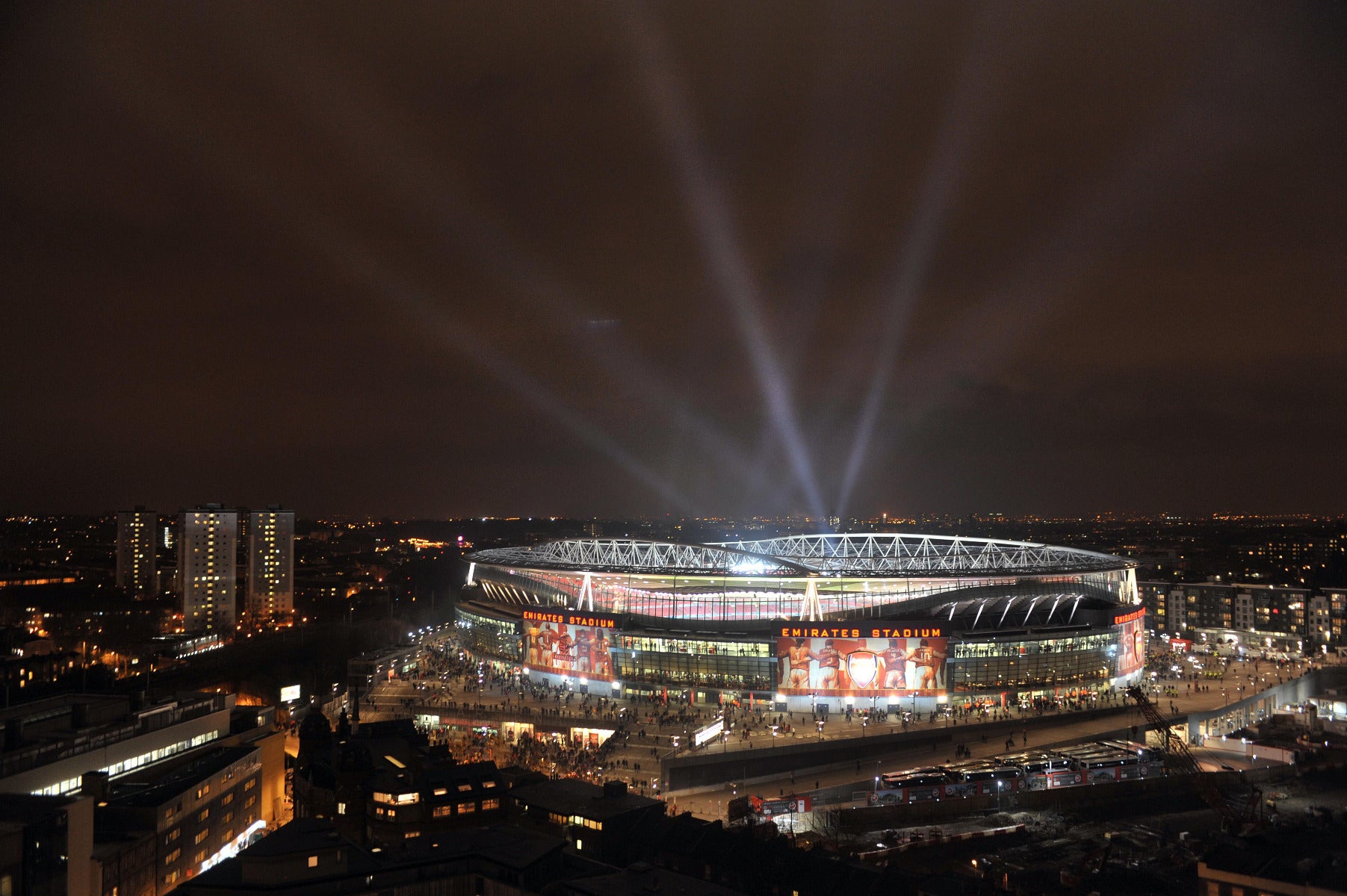 Arsenal Emirates Stadium Full Wall Mural - Outside Night Time View With Lights
