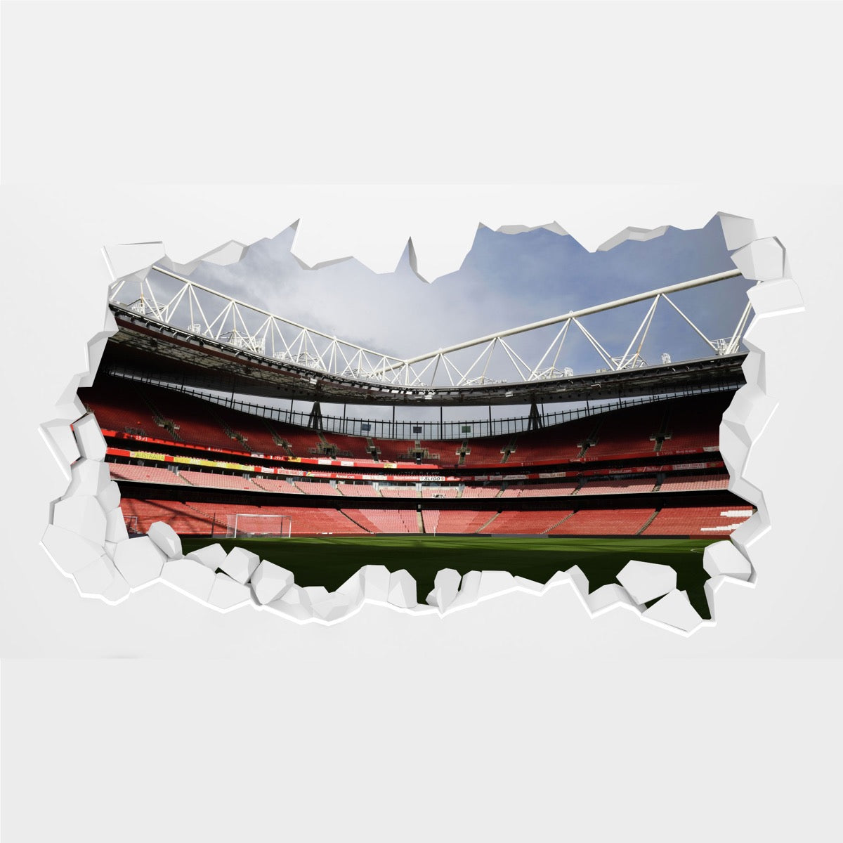 Contents: x1 Arsenal FC - Empty Stadium Cloudy Sky Broken Wall Sticker & Fitting Instructions.