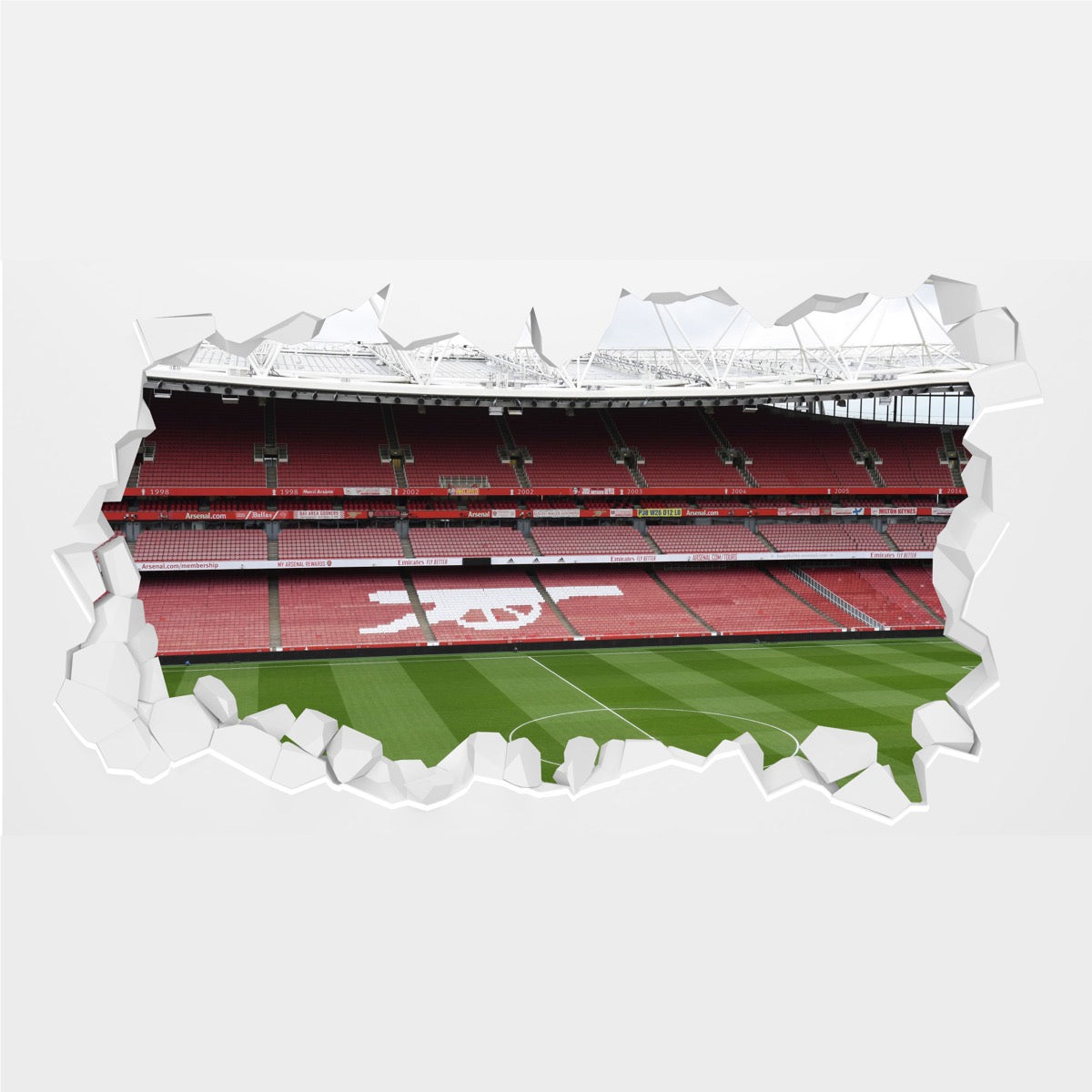 Contents: x1 Arsenal FC - Stadium Day Time Cannon in Stands Broken Wall Sticker & Fitting Instructions.