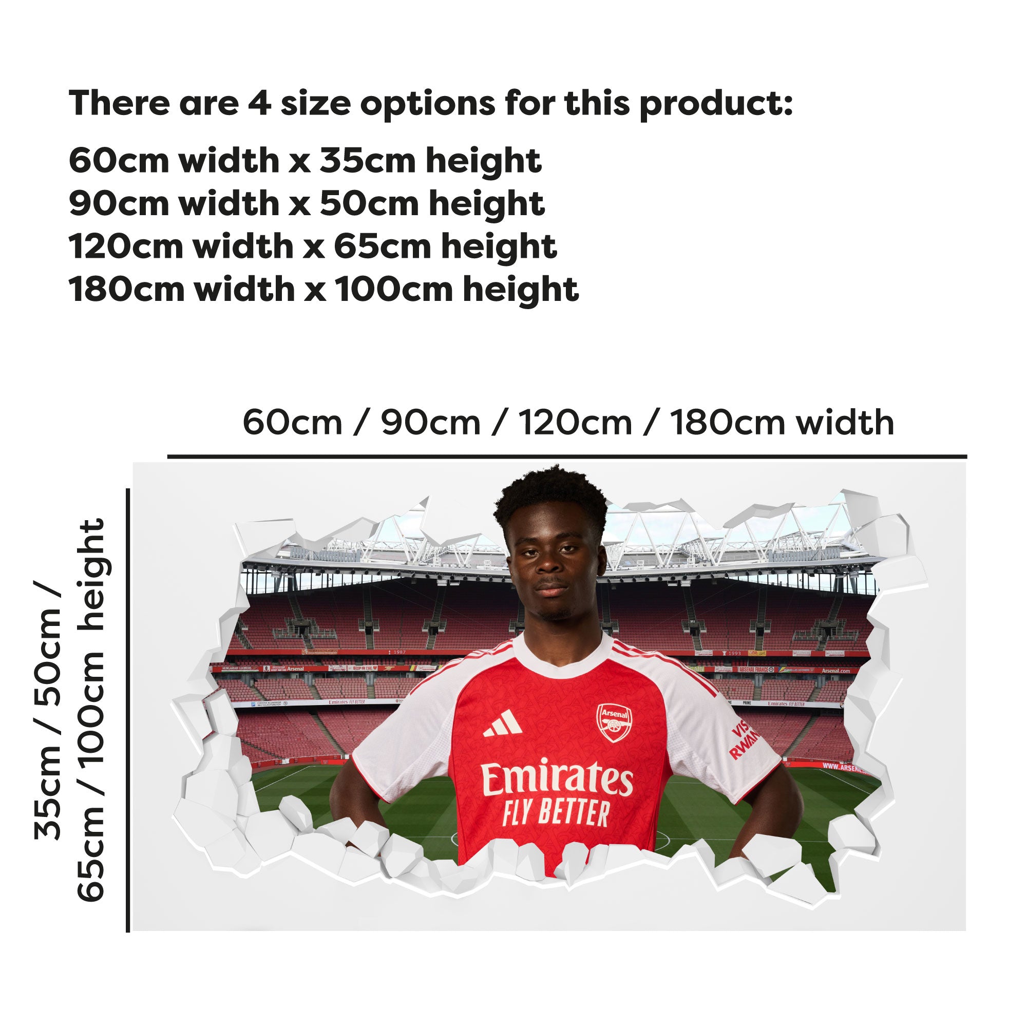 Contents: x1 Arsenal Football Club - Bukayo Saka Smashed Wall Sticker. plus Fitting Instructions.