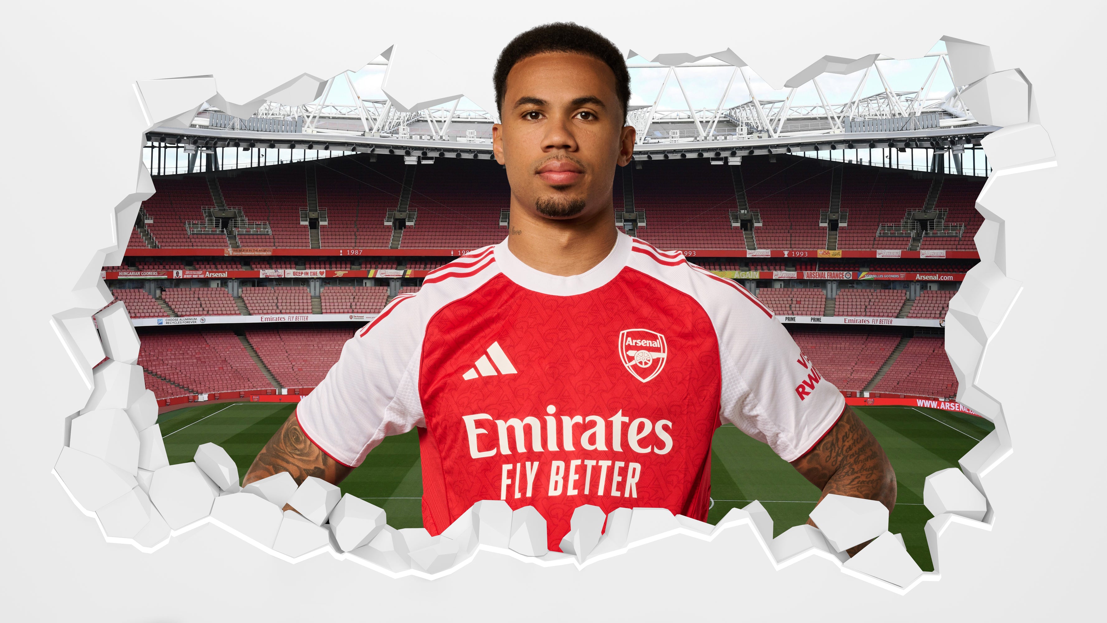 Contents: x1 Arsenal Football Club - Gabriel 25/26 Smashed Wall Sticker. plus Fitting Instructions.