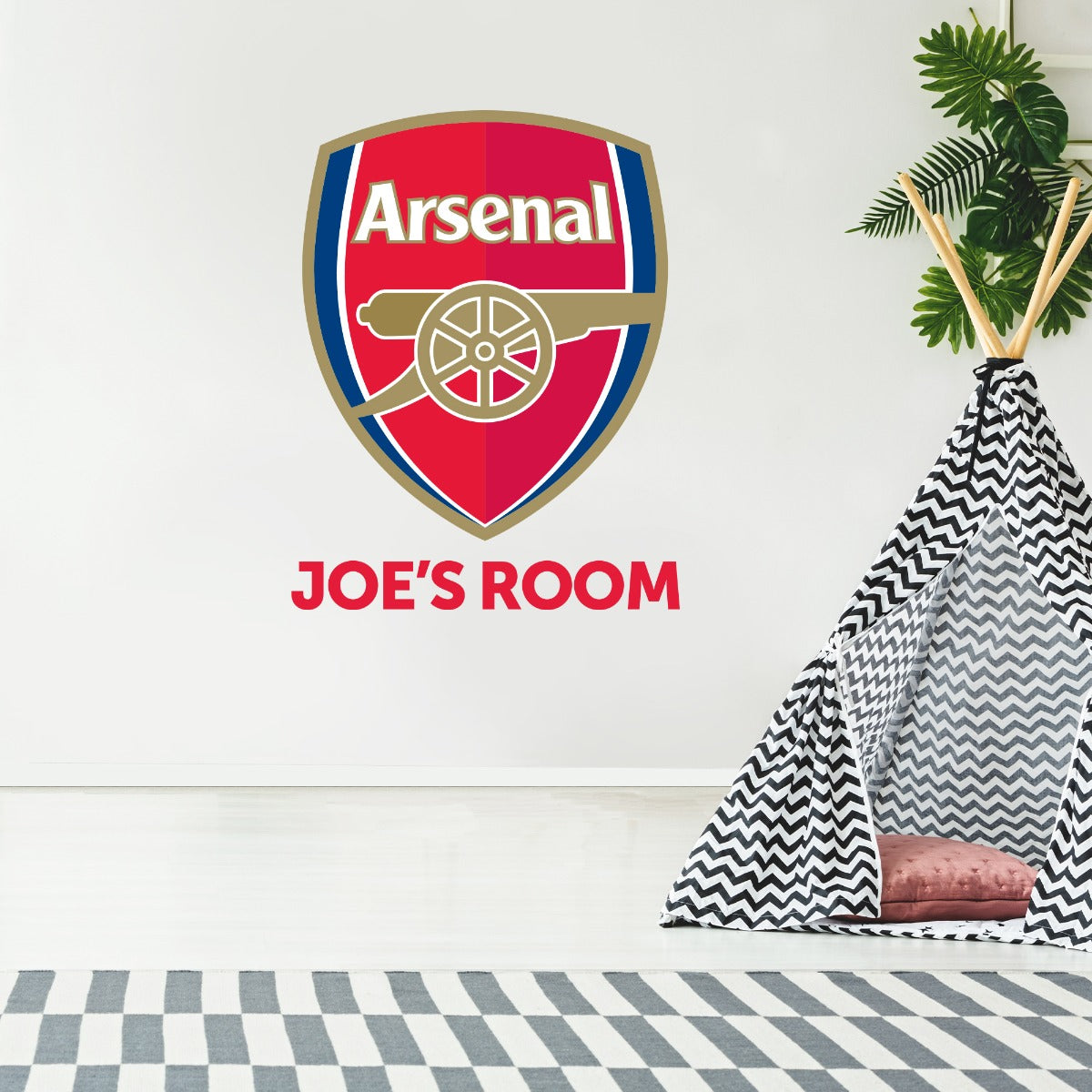 This fantastic Arsenal Personalised Name & Crest Wall Mural would look perfect in any bedroom. office or home.
