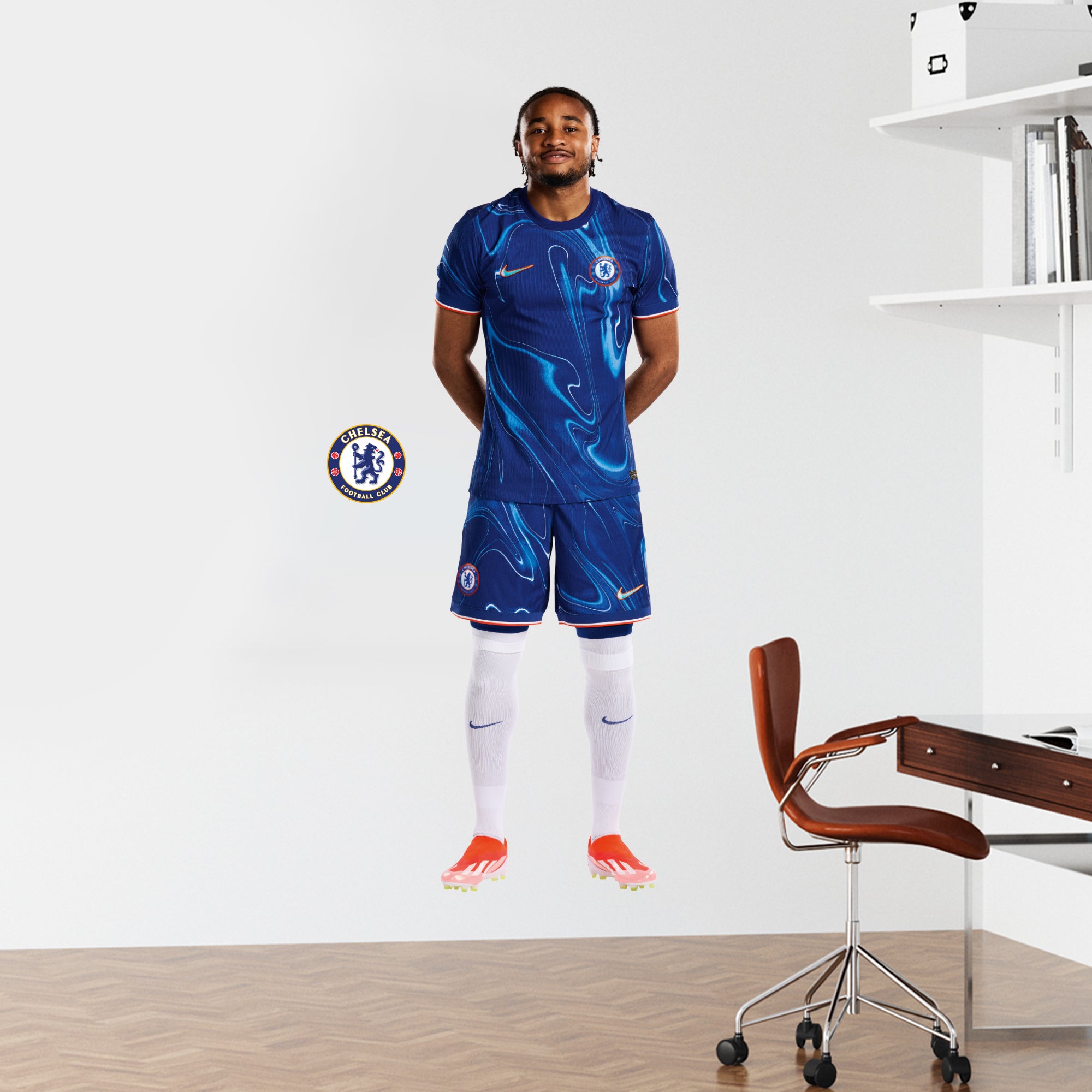 Contents: x1 Chelsea Football Club Nkunku Player Mural. plus Extra Chelsea FC Decals included. plus Fitting Instructions.