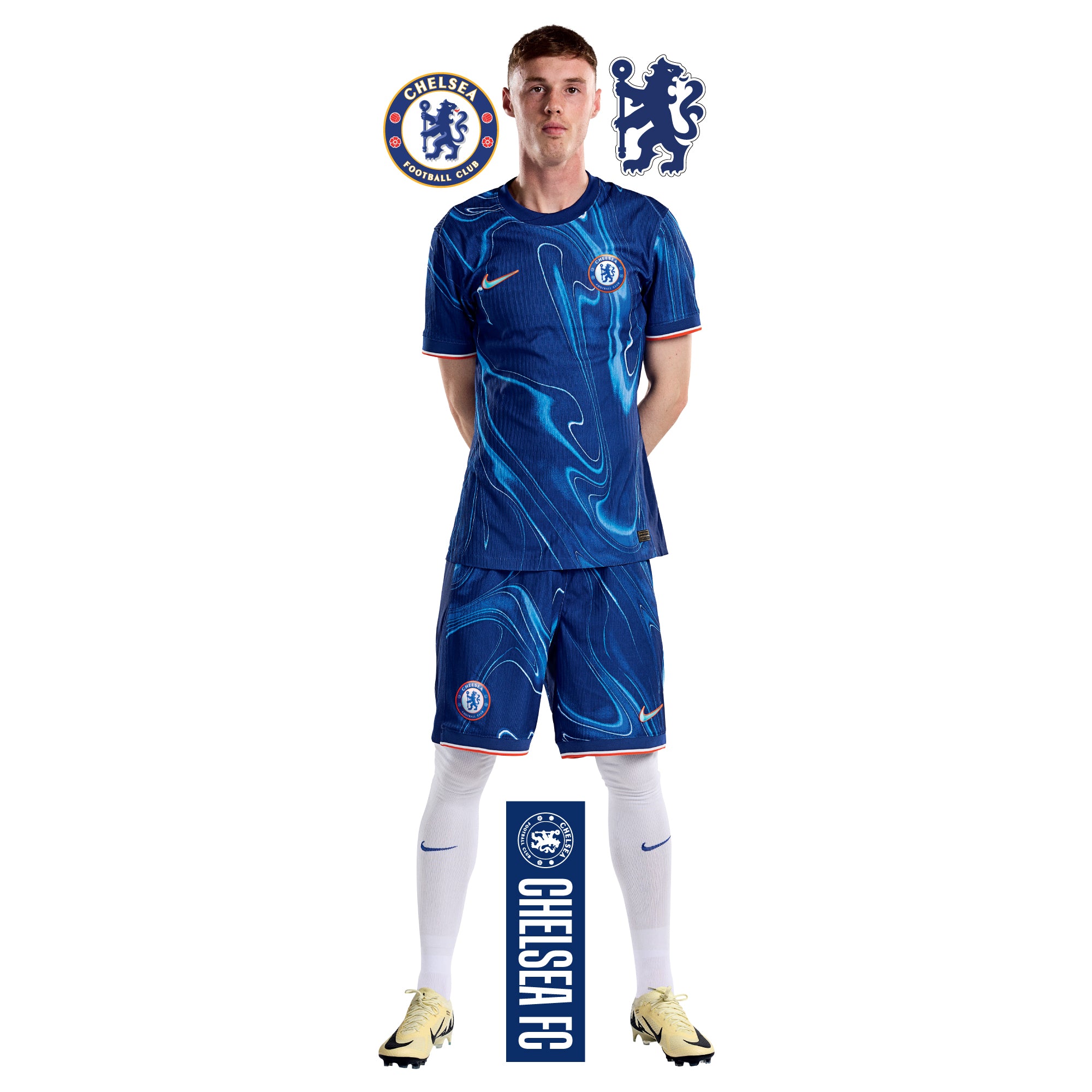 Contents: x1 Chelsea Football Club Palmer Player Mural. plus Extra Chelsea FC Decals included. plus Fitting Instructions.
