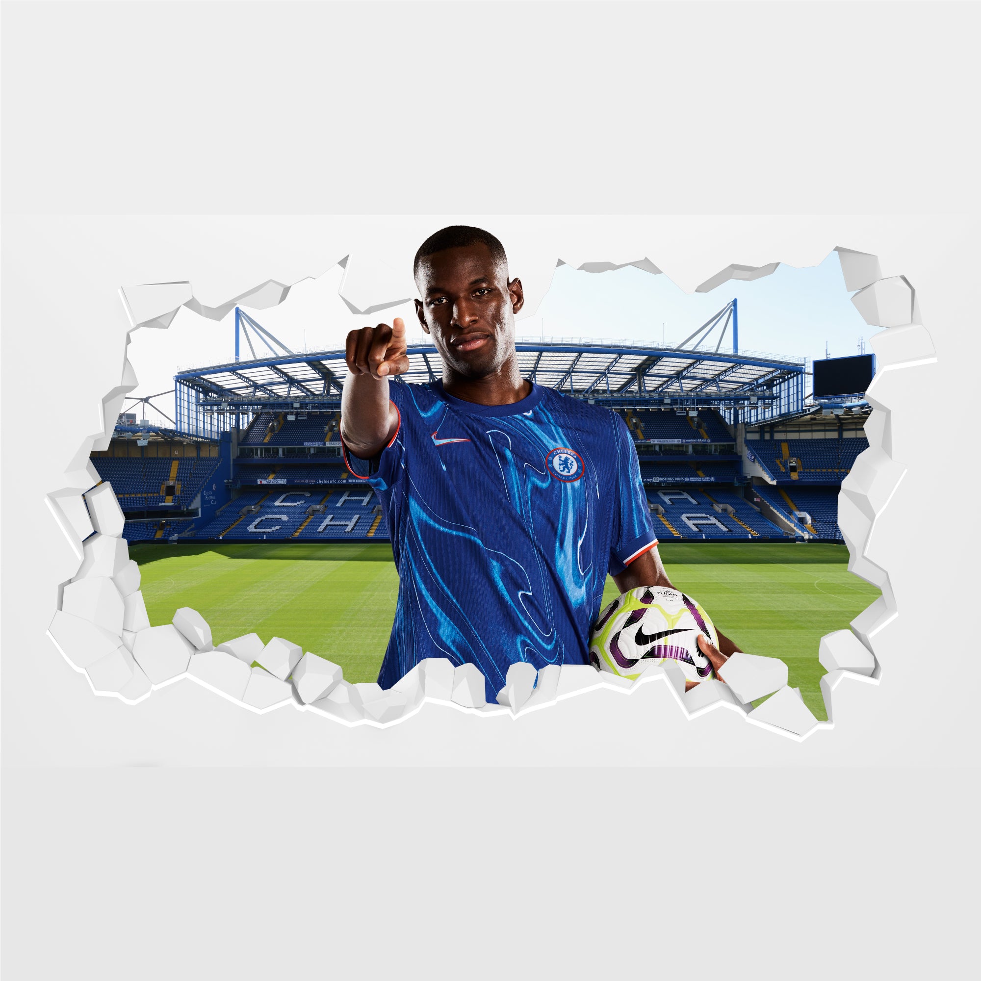 Contents: x1 Chelsea Football Club - Jackson Broken Wall Mural. plus Fitting Instructions.
