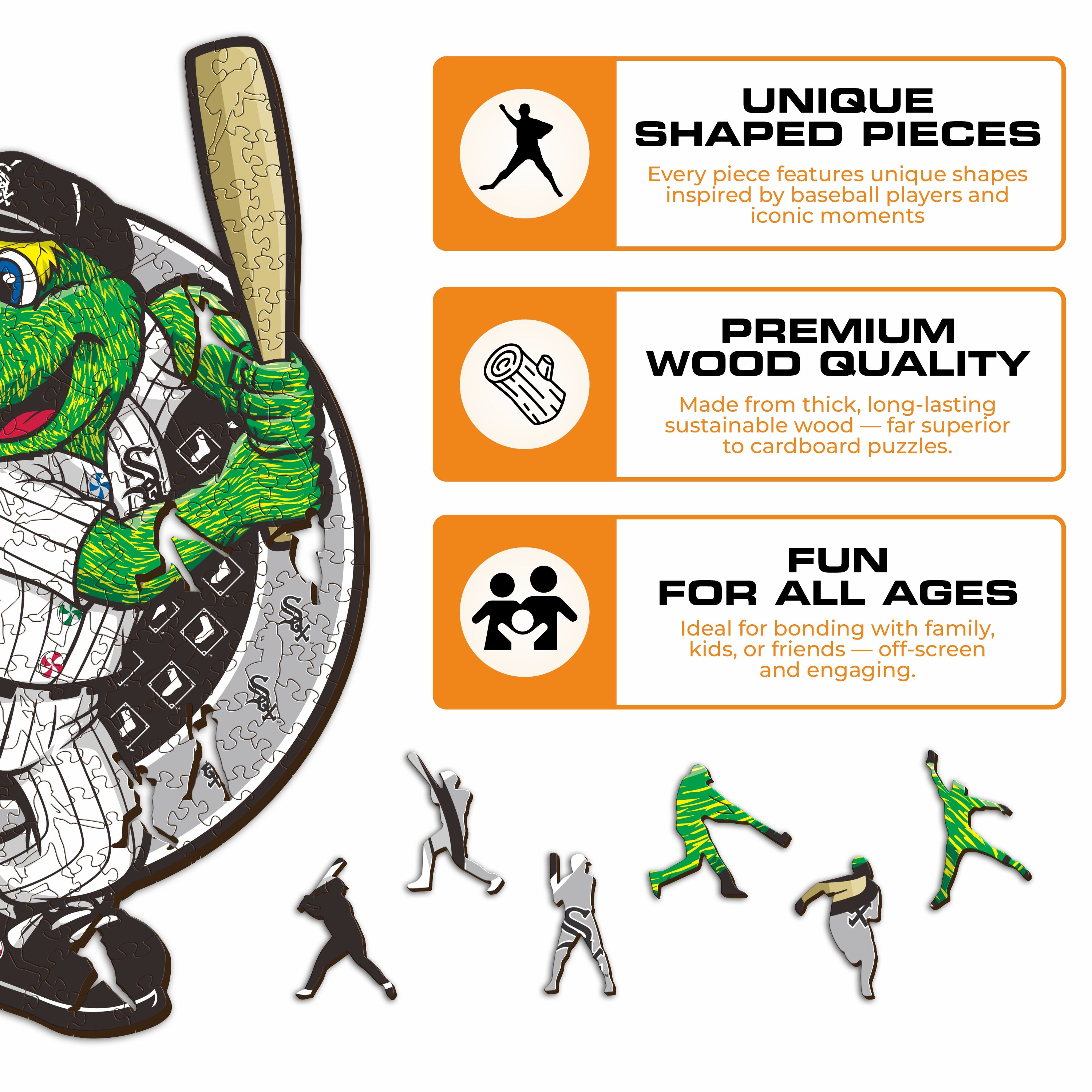 ✓ 1x Chicago White Sox™ Mascot - Official Wooden Puzzle