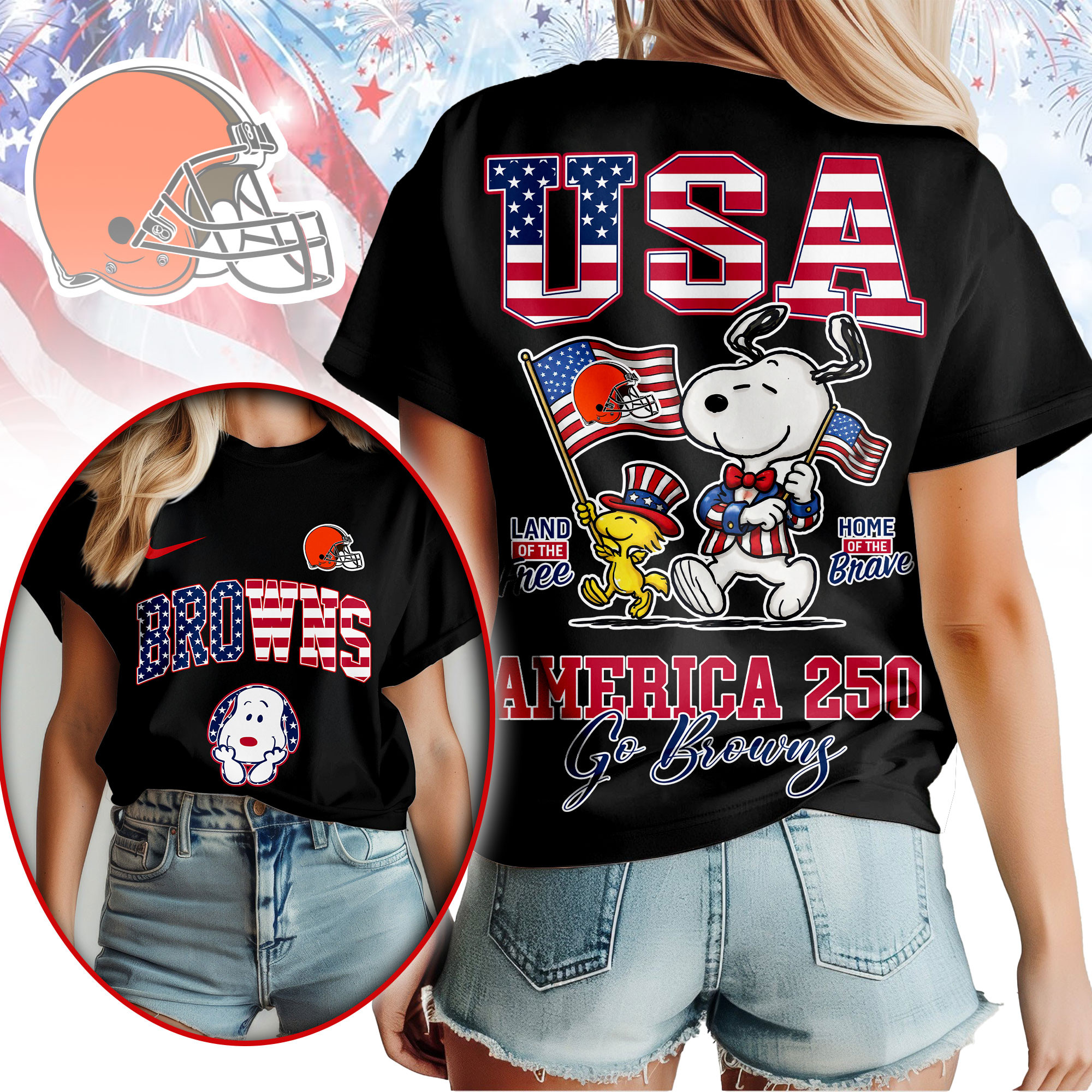 Cleveland Browns | Premium NFL Snoopy America 250 3D Shirt
