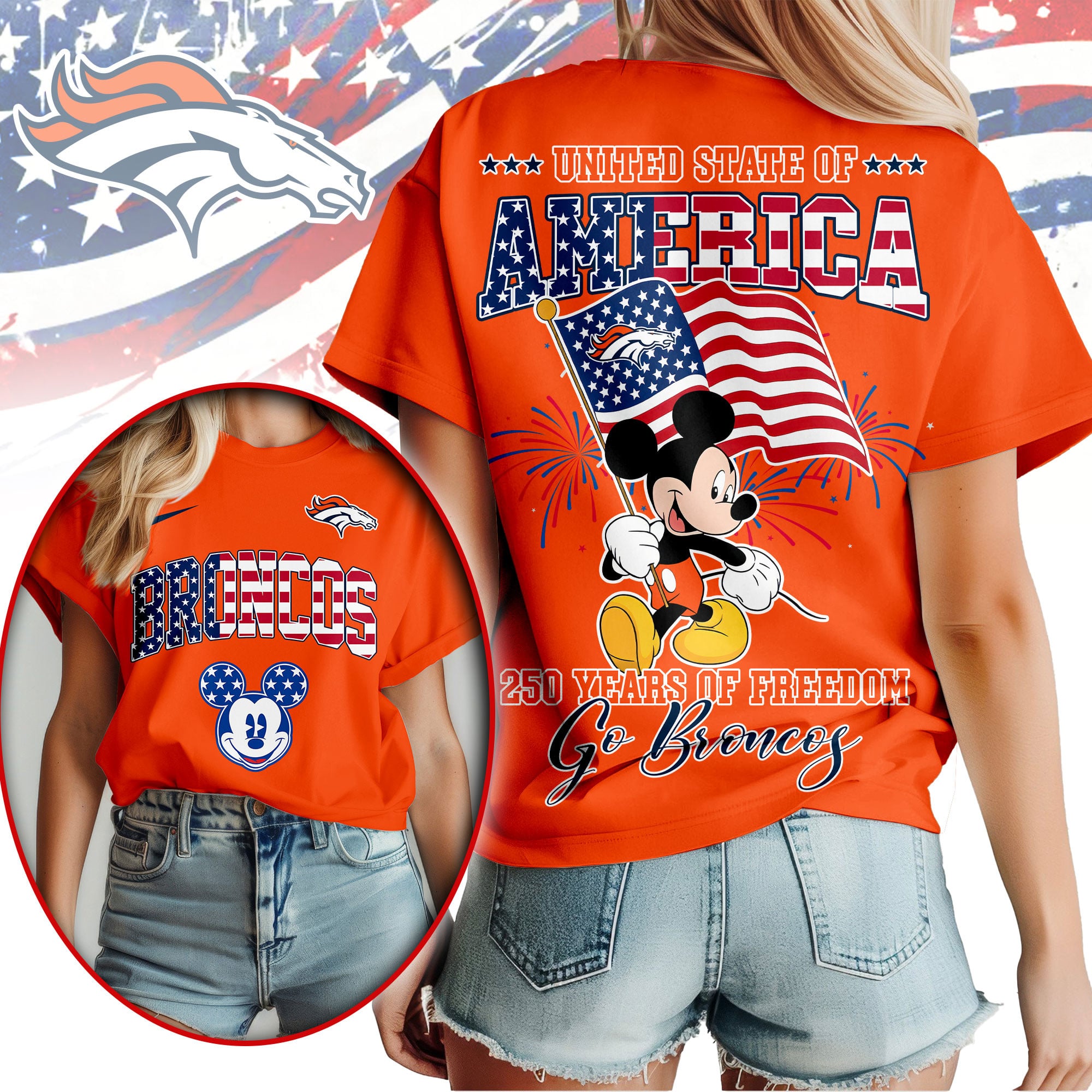 Denver Broncos | Premium NFL Freedom 250 3D Shirt