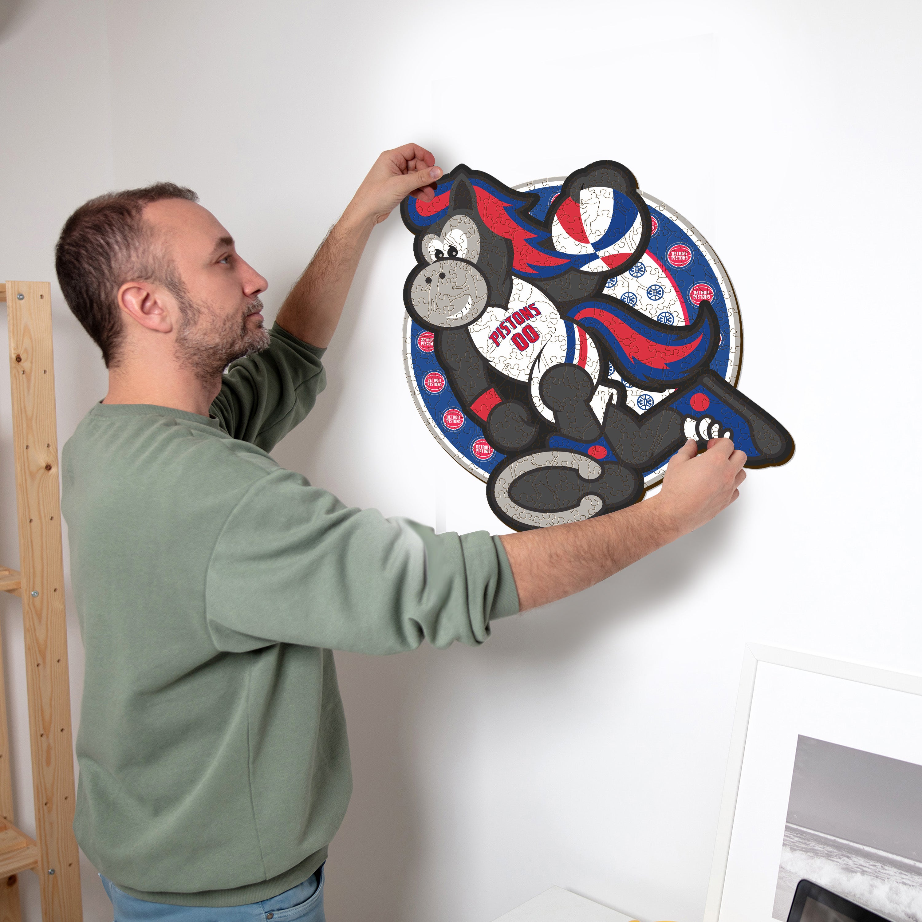 ✓ 1x Detroit Pistons™ Mascot - Official Wooden Puzzle