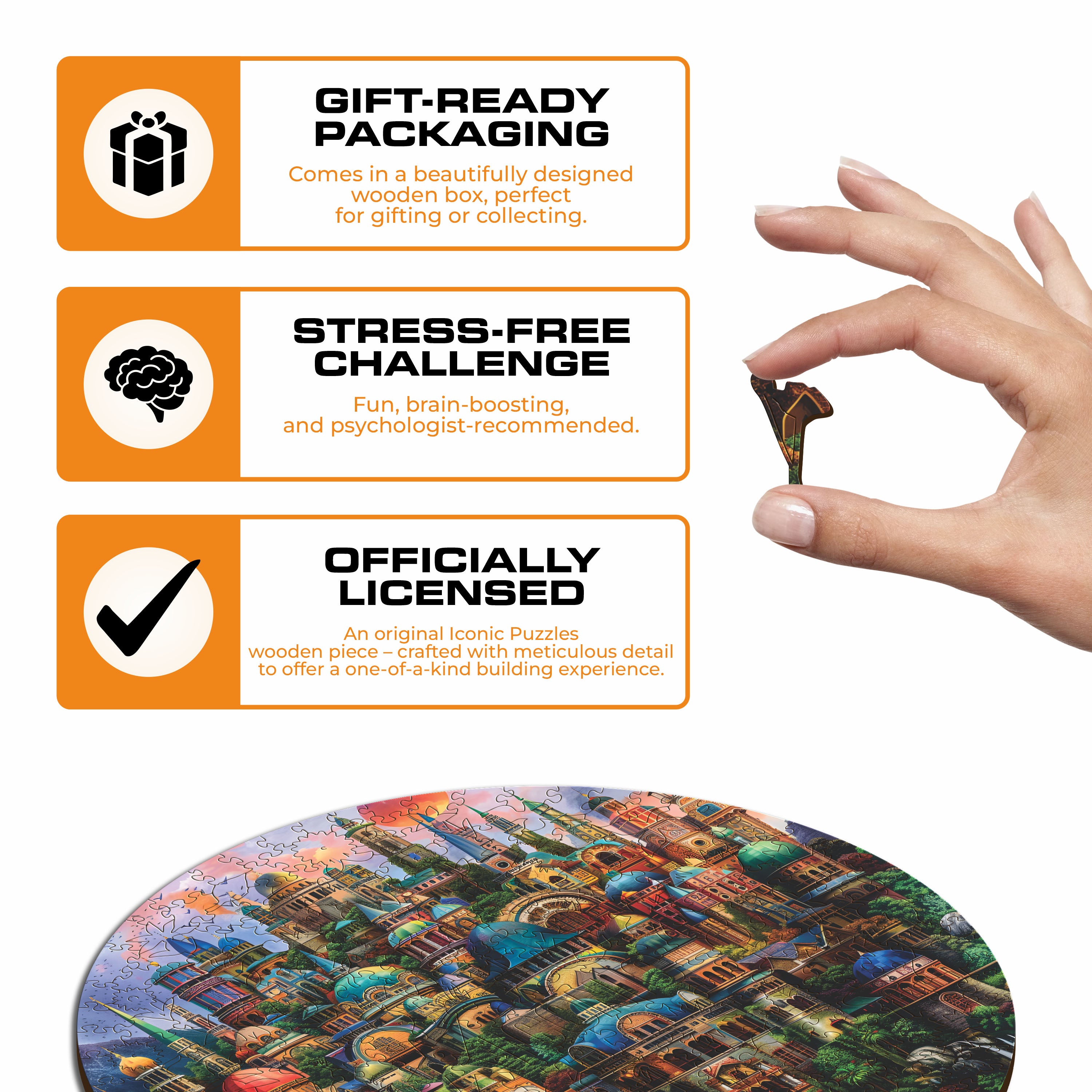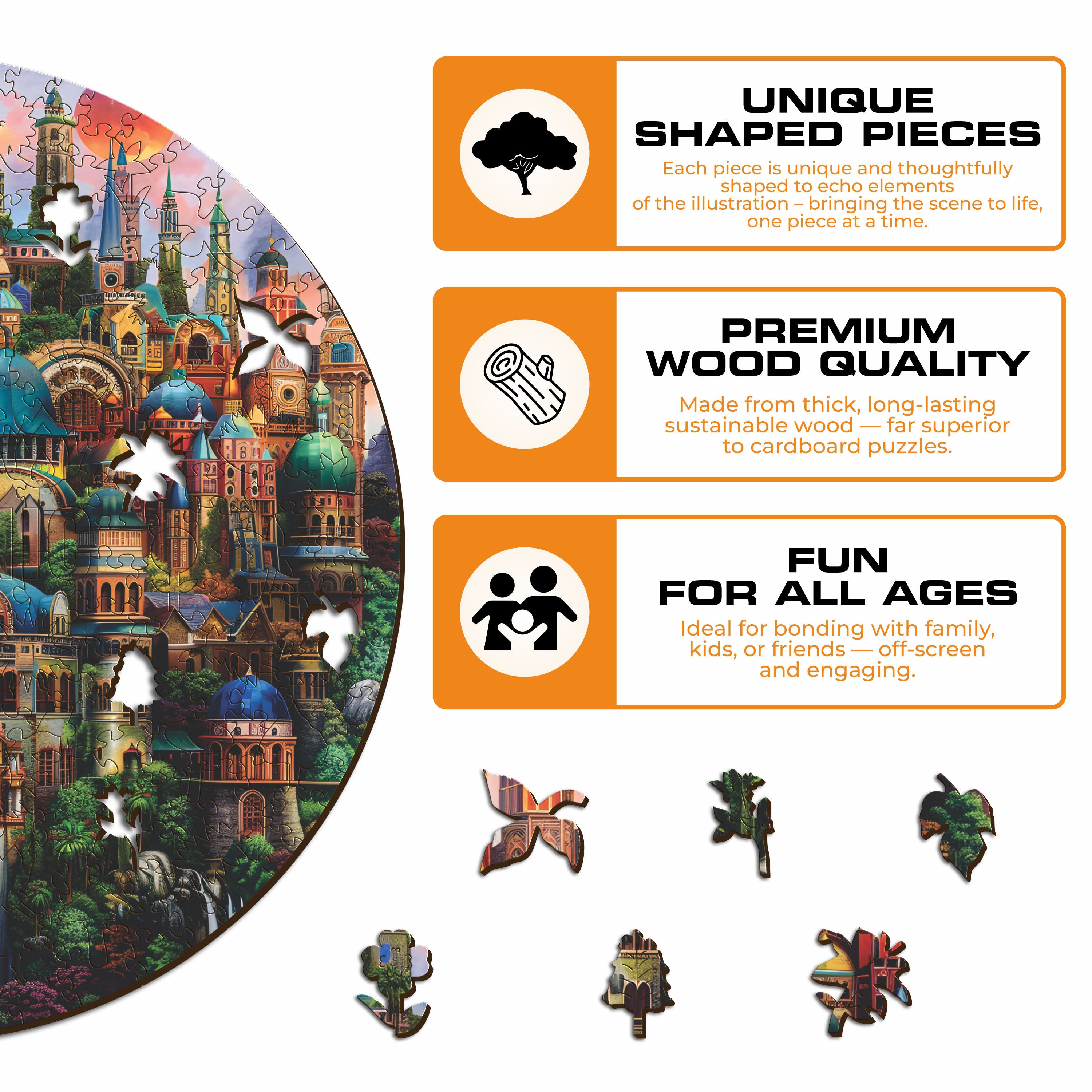 - 100% sustainable wooden puzzle 1/5in (0.3cm) thick.