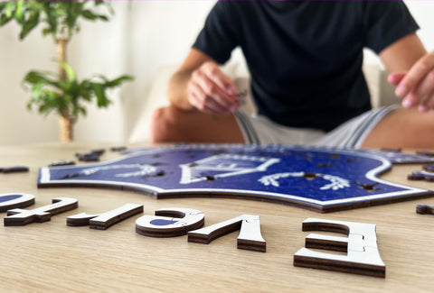 - 100% sustainable wooden puzzle 1/5in (0.3cm) thick.