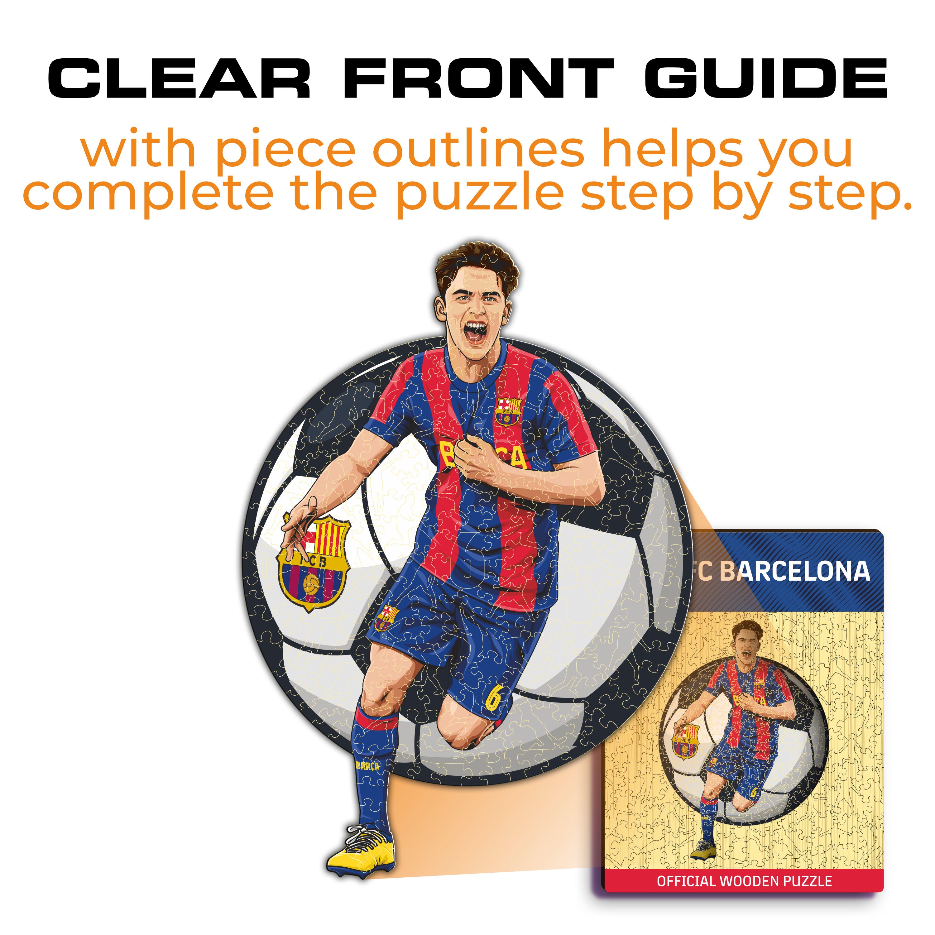 ✓ Each puzzle piece has a unique shape that depicts elements related to soccer and iconic player poses.