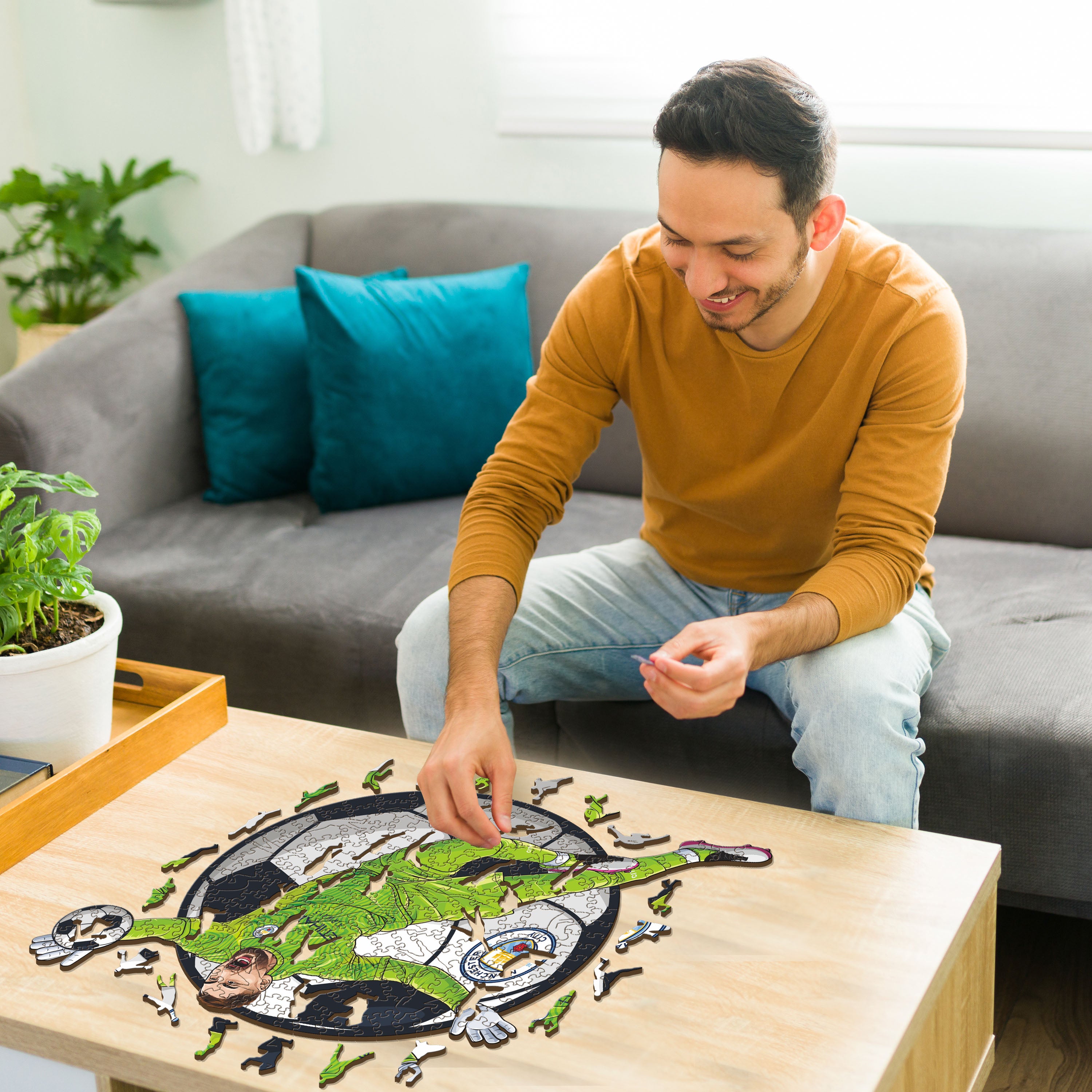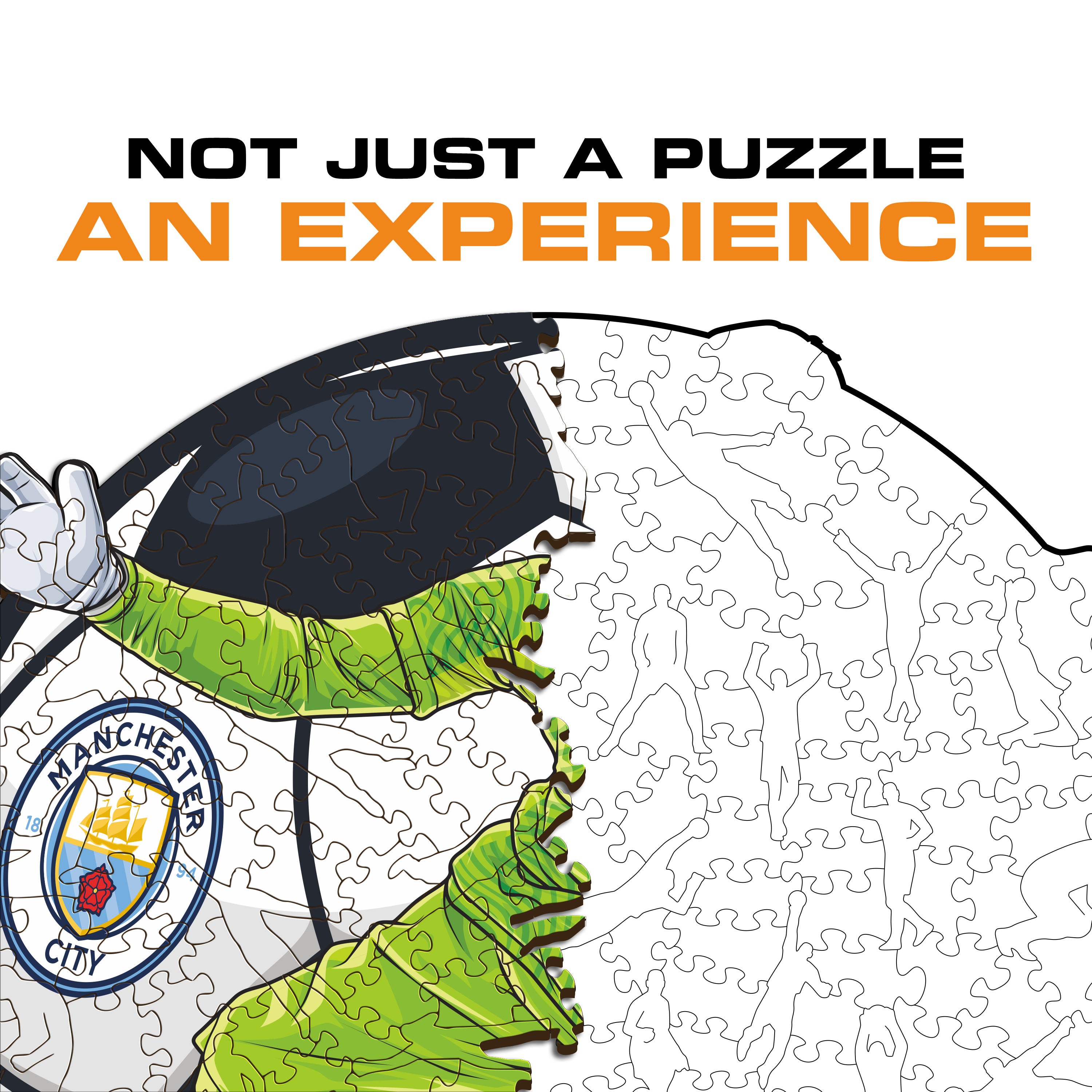 ✓ Each puzzle piece has a unique shape that depicts elements related to soccer and iconic players' poses.