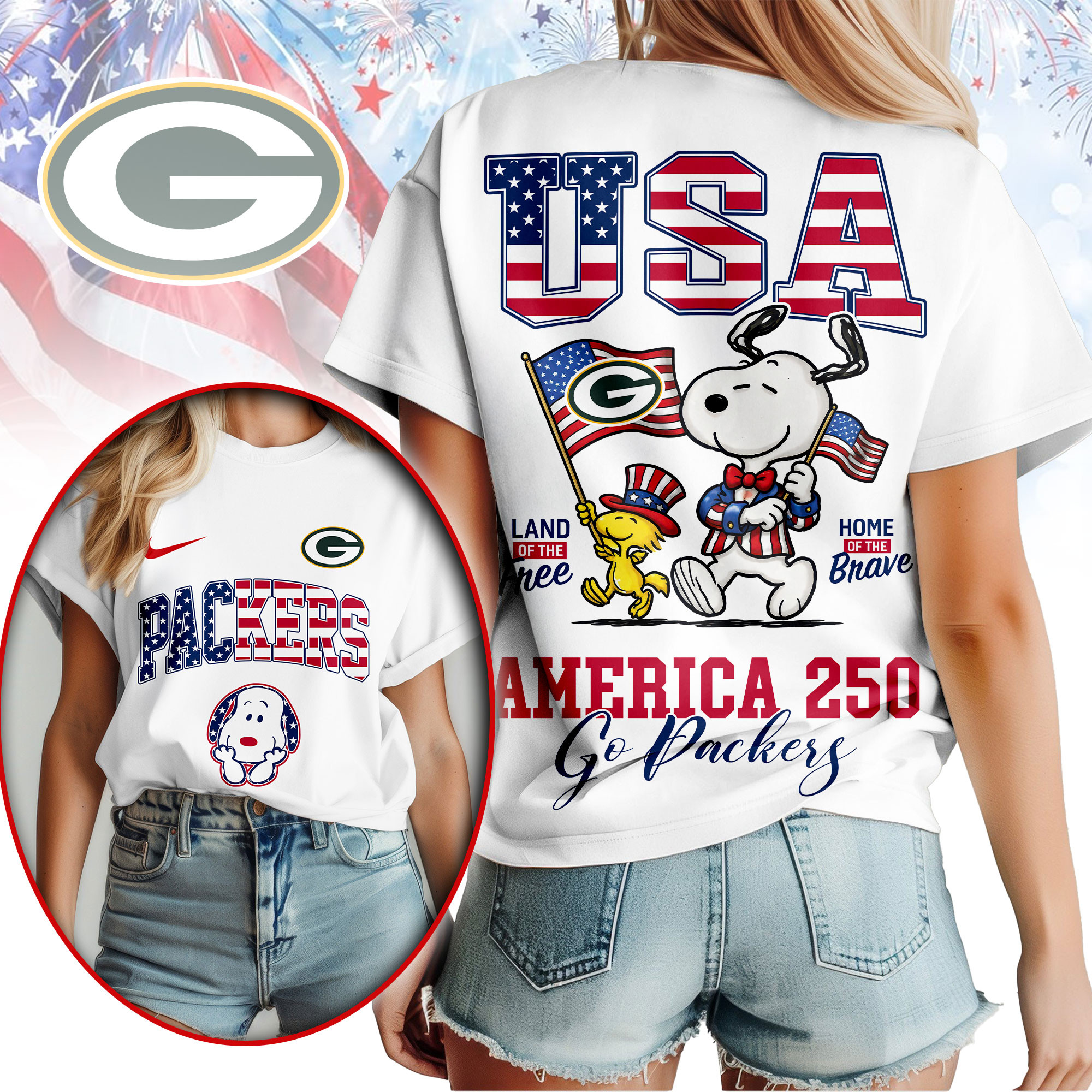 Green Bay Packers | Premium NFL Snoopy America 250 3D Shirt
