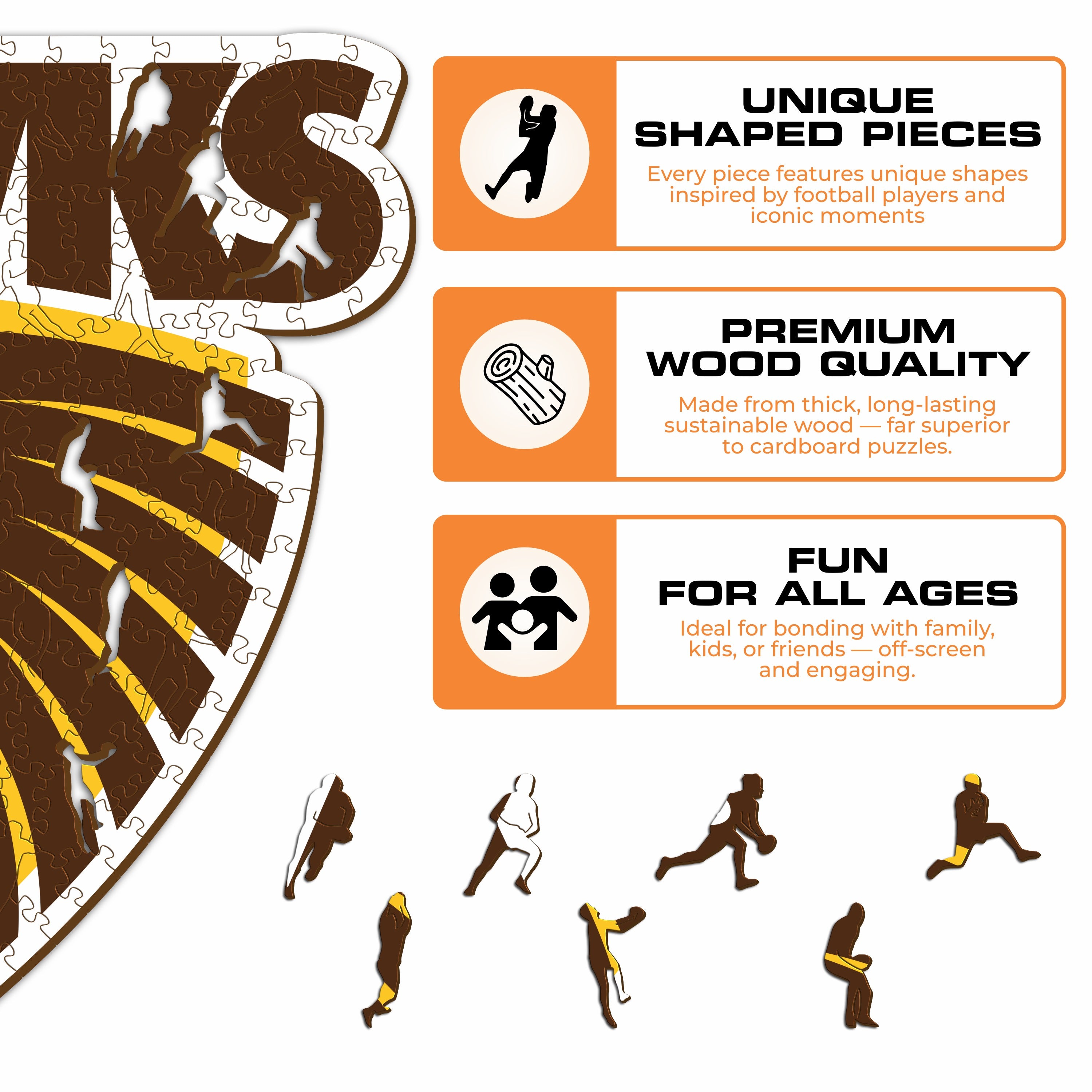✓ Each puzzle piece has a unique shape that depicts elements related to Australian football and iconic player poses.