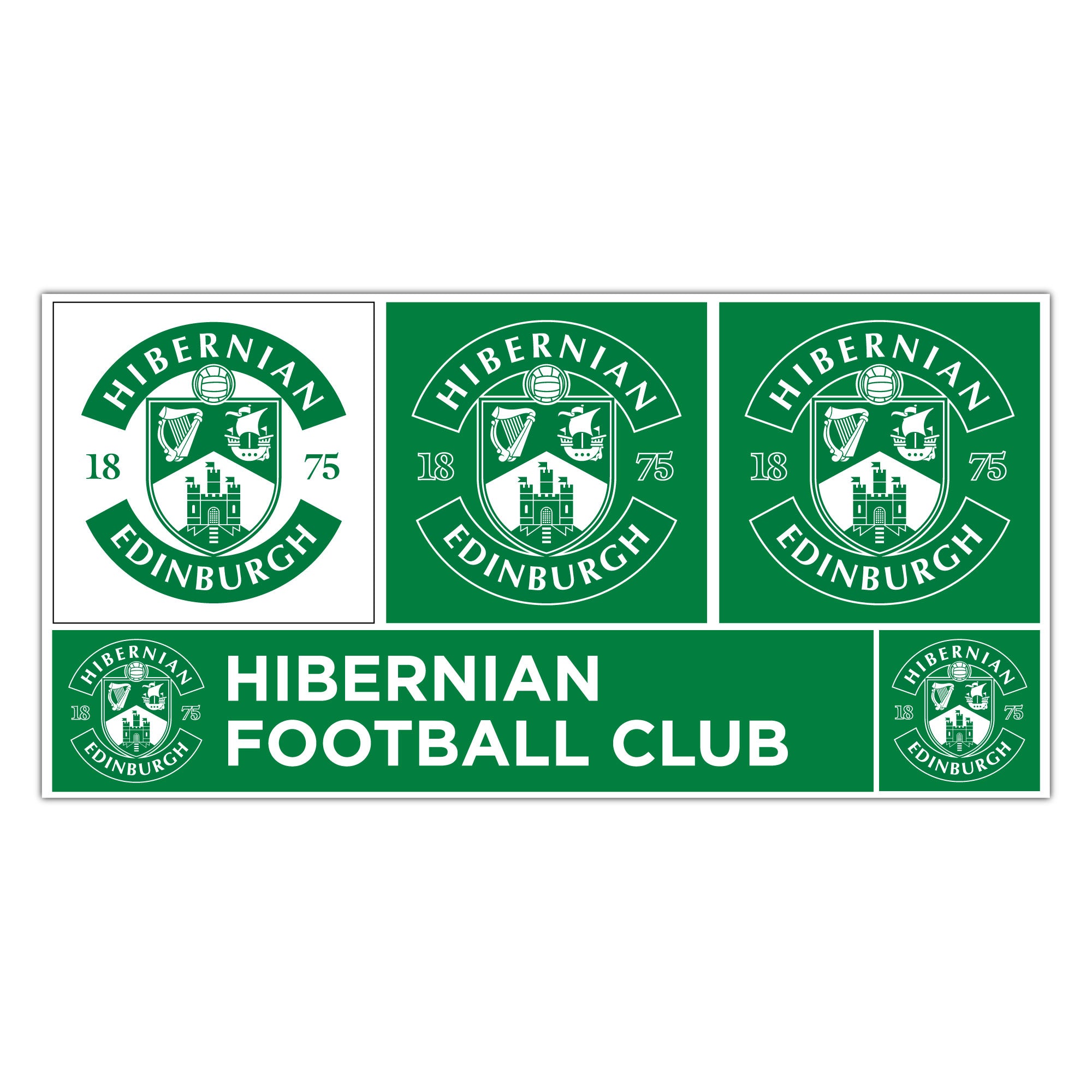 Contents: x1 Official Hibernian Football Club - Decal Set. Includes 5 individual stickers on a 60cm x 30cm sheet.