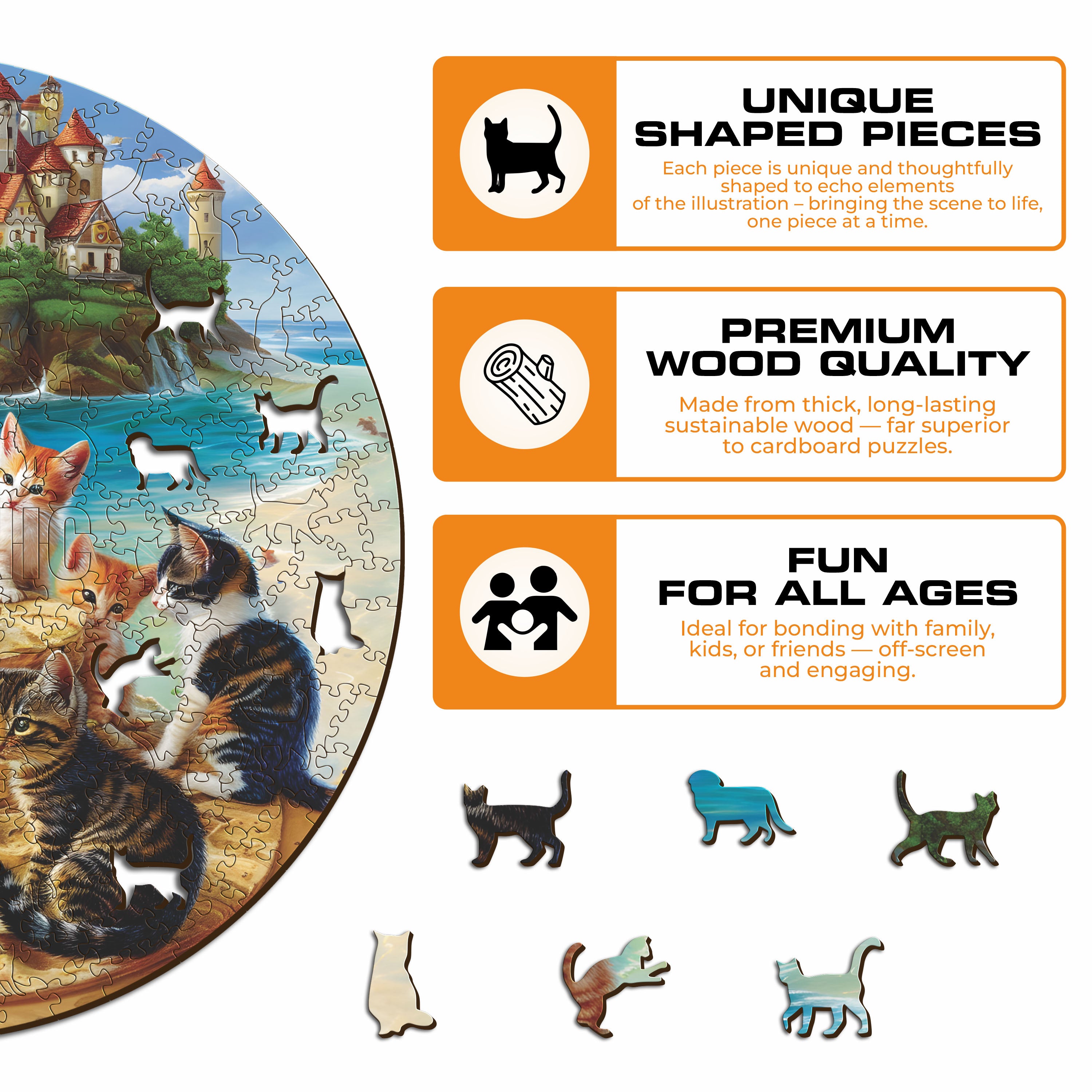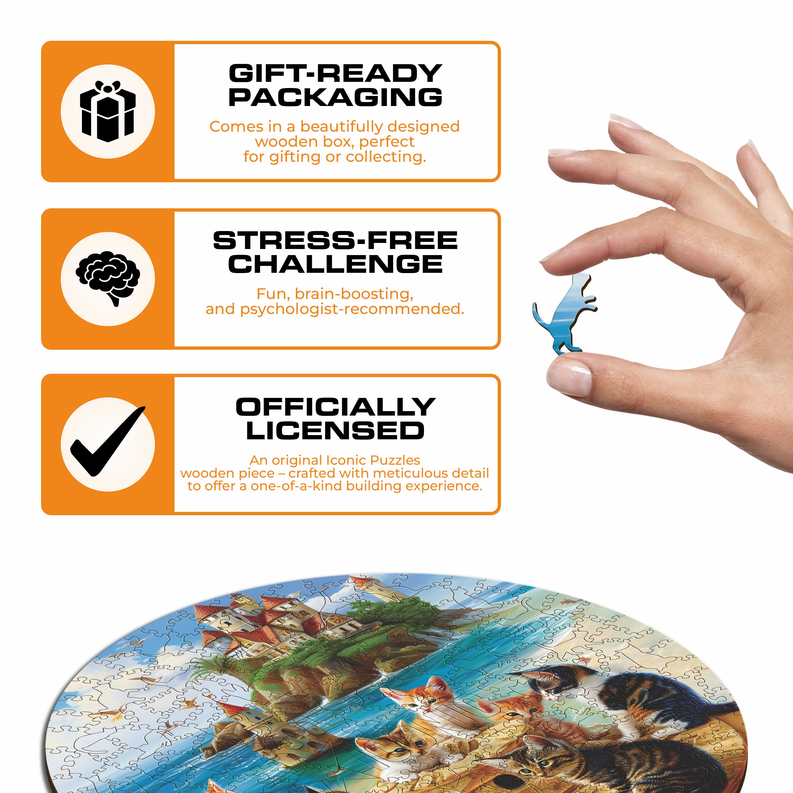 ✓ 1x Kittens at the seaside - Official Wooden Box (featuring a printed guide on the front to help you complete the puzzle with ease)