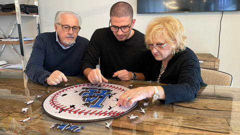 ✓ Each puzzle piece has a unique shape that depicts elements related to baseball and iconic player poses.