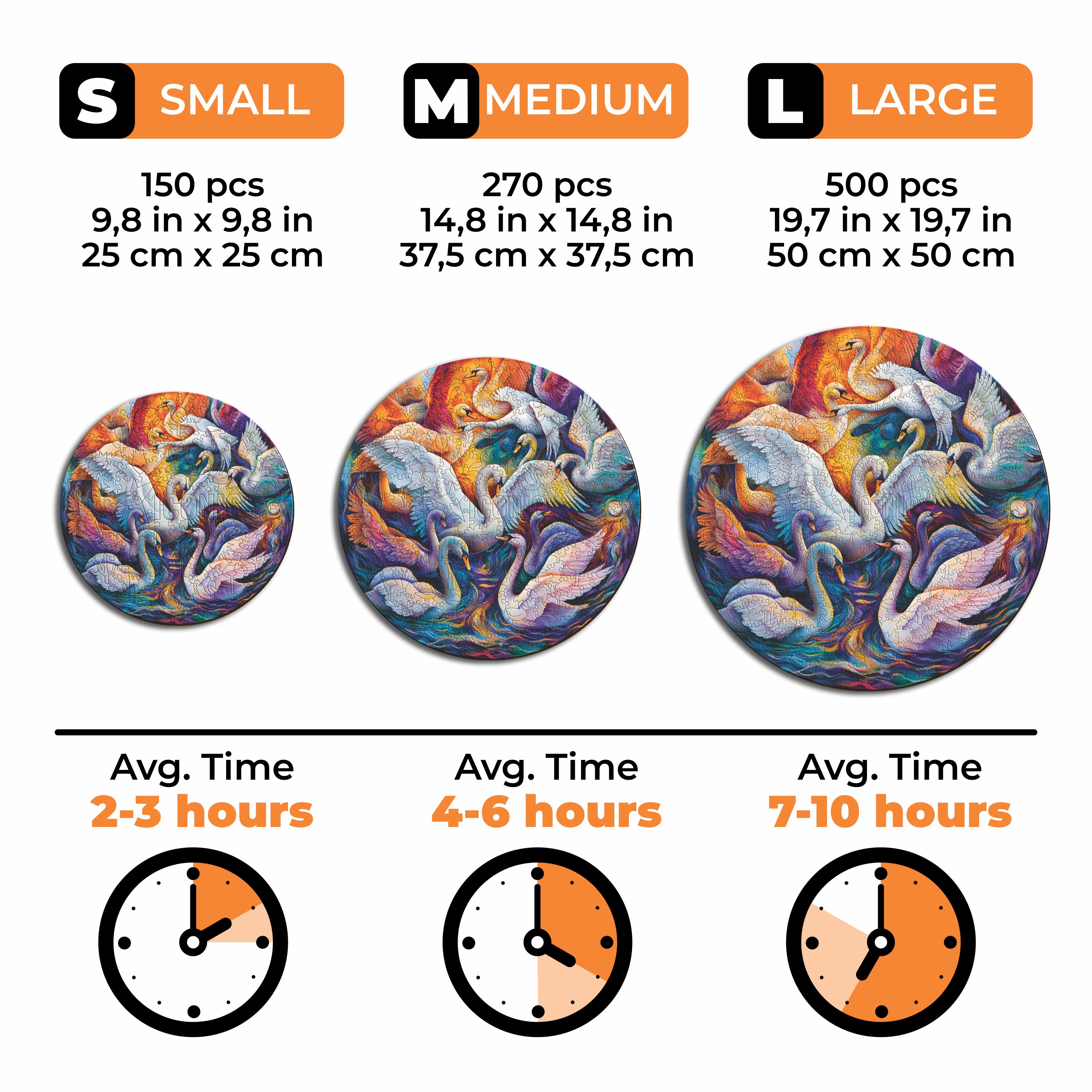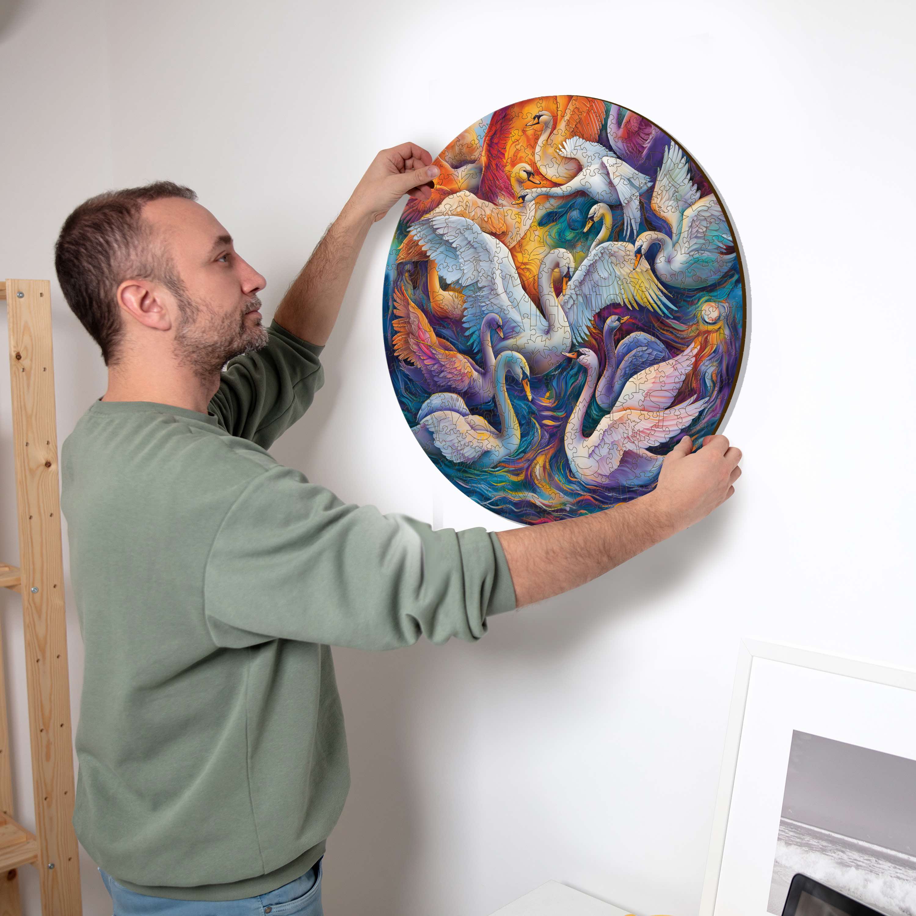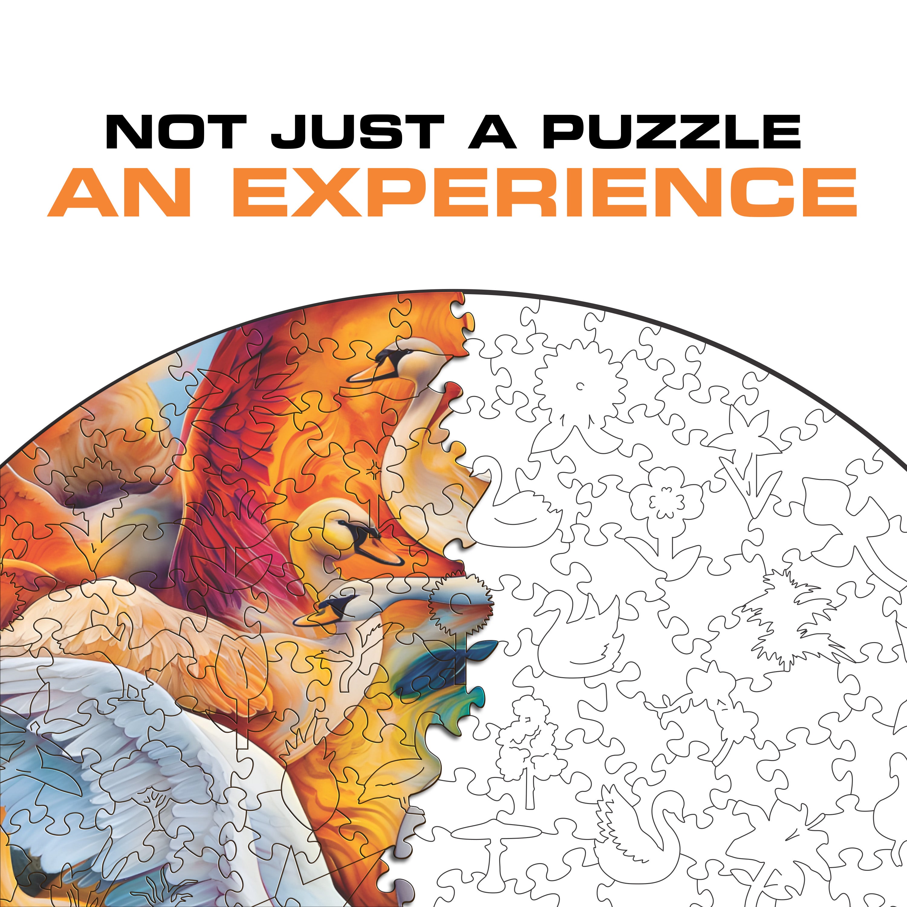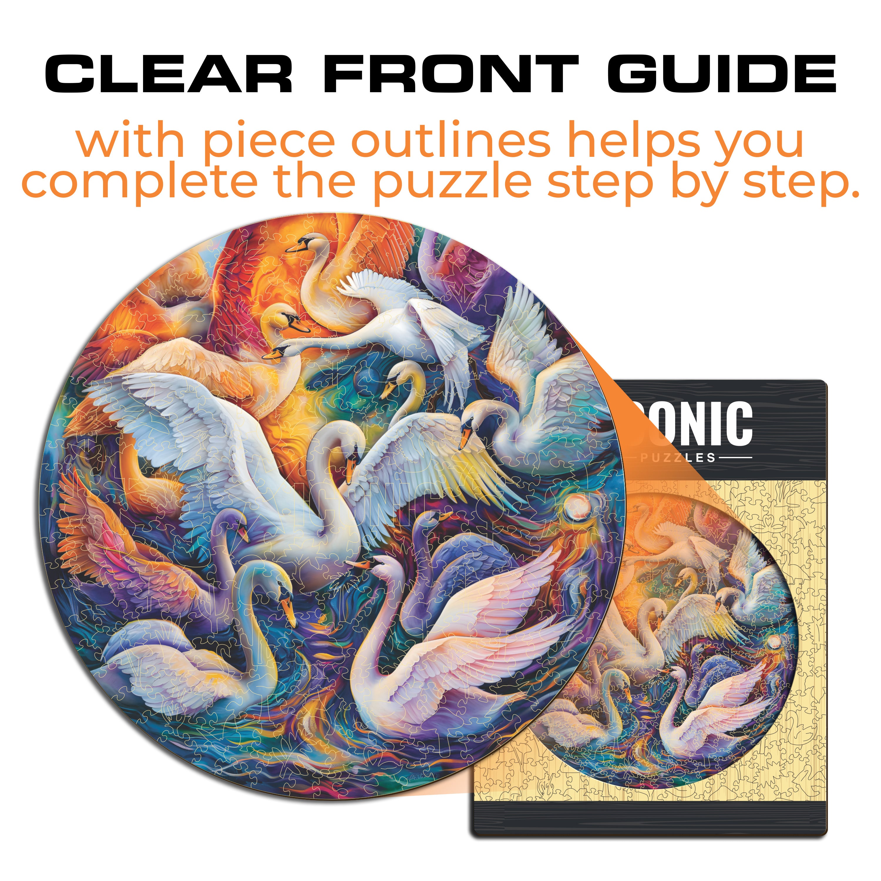 ✓ Each puzzle piece has a unique shape that depicts elements related to swans and nature.