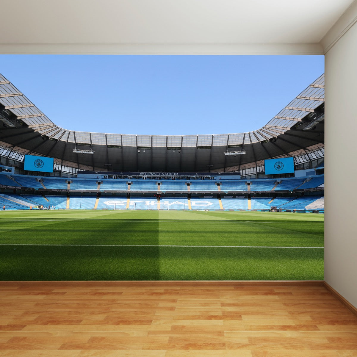 Contents: x1 Manchester City FC Stadium Full Wall Mural (Choose Your Size). plus Fitting Instructions.