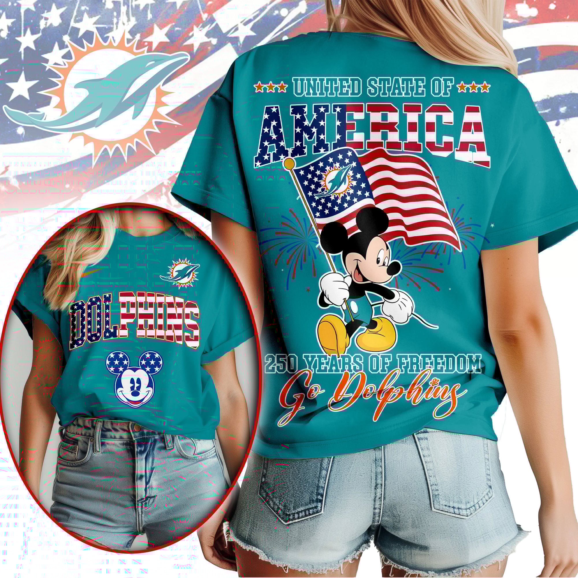 Miami Dolphins | Premium NFL Freedom 250 3D Shirt