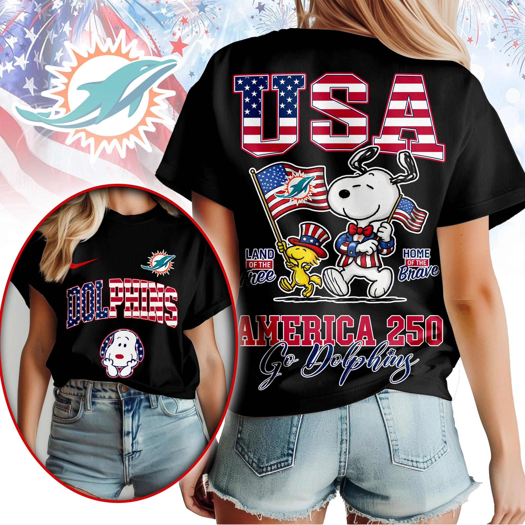 Miami Dolphins | Premium NFL Snoopy America 250 3D Shirt