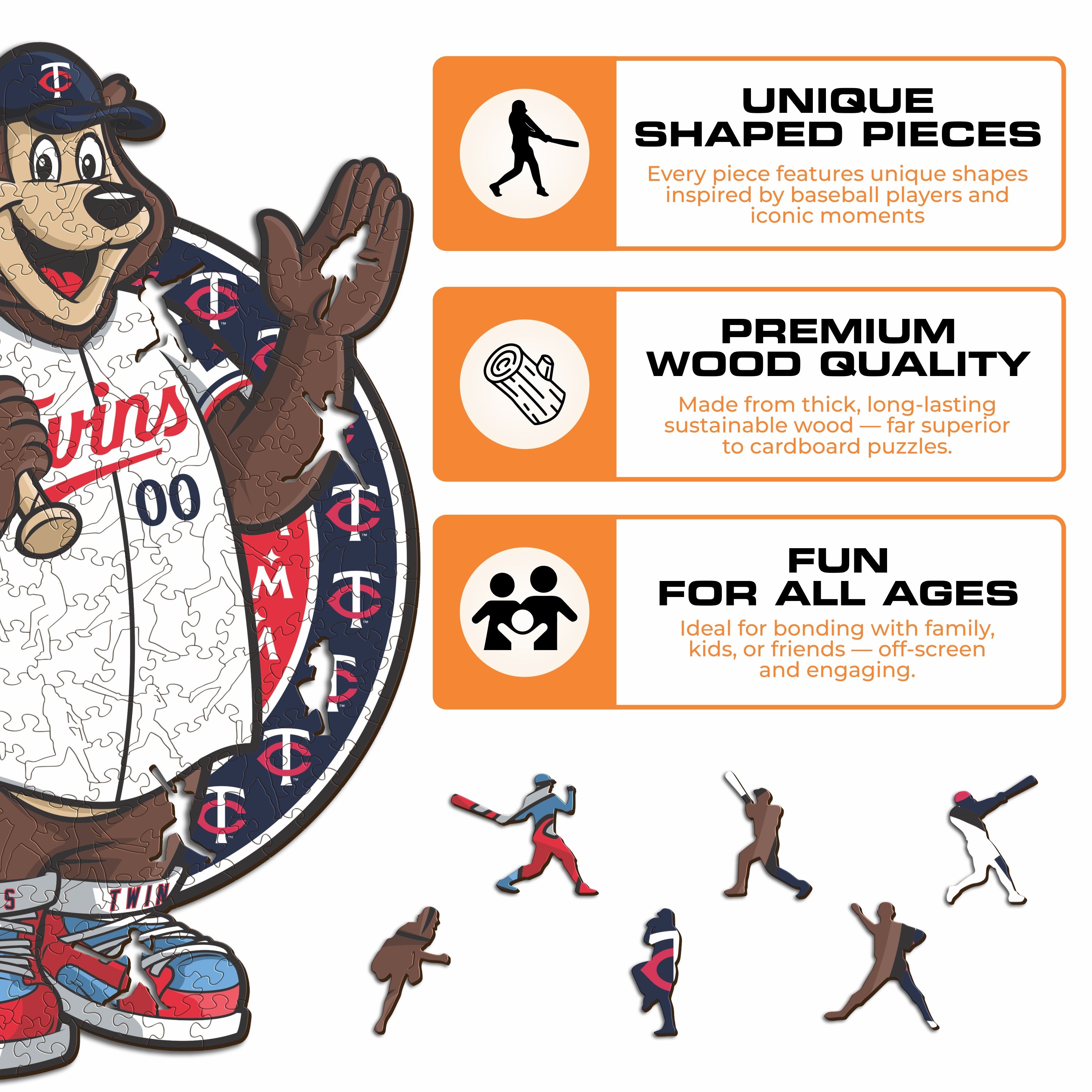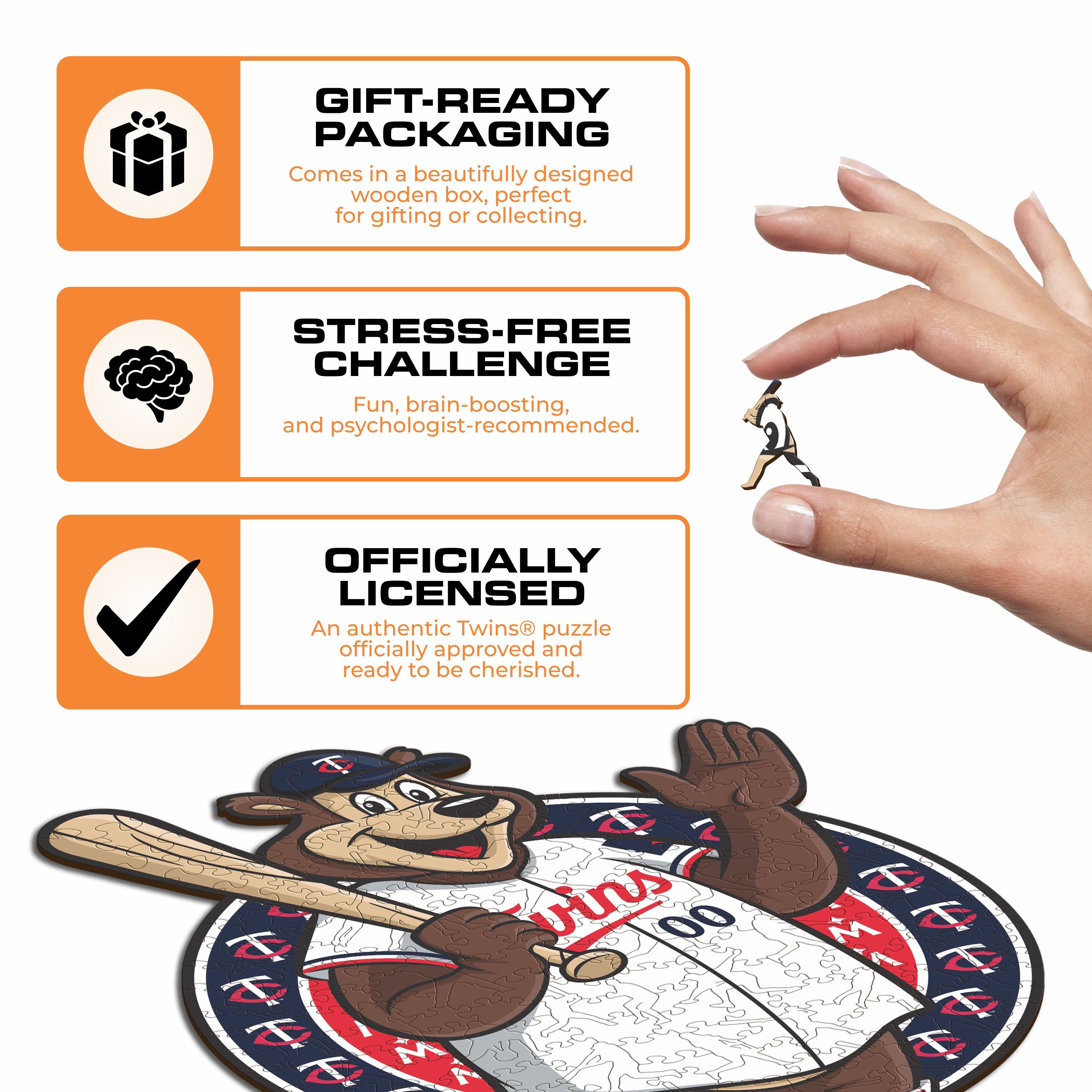 ✓ 1x Minnesota Twins™ Mascot - Official Wooden Puzzle