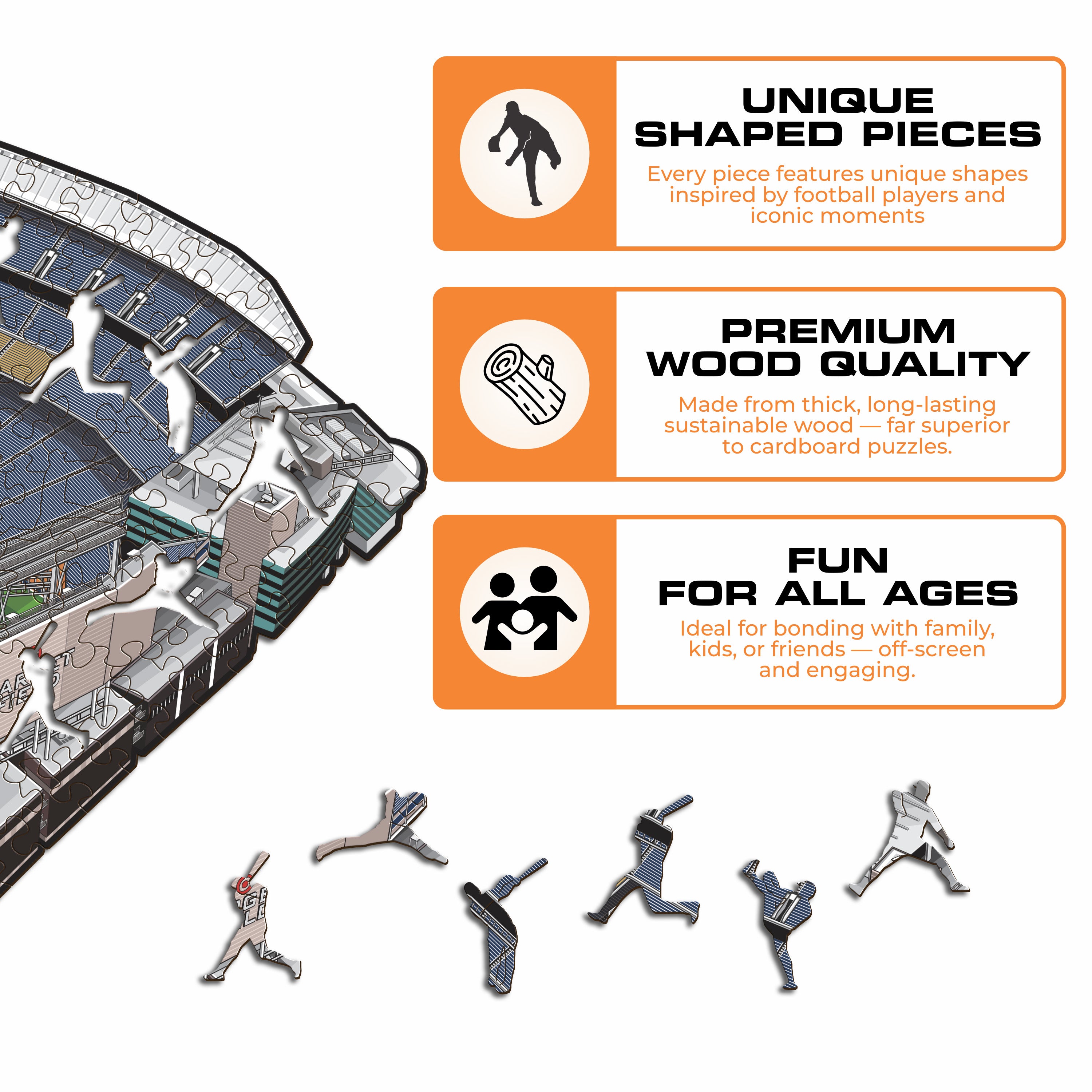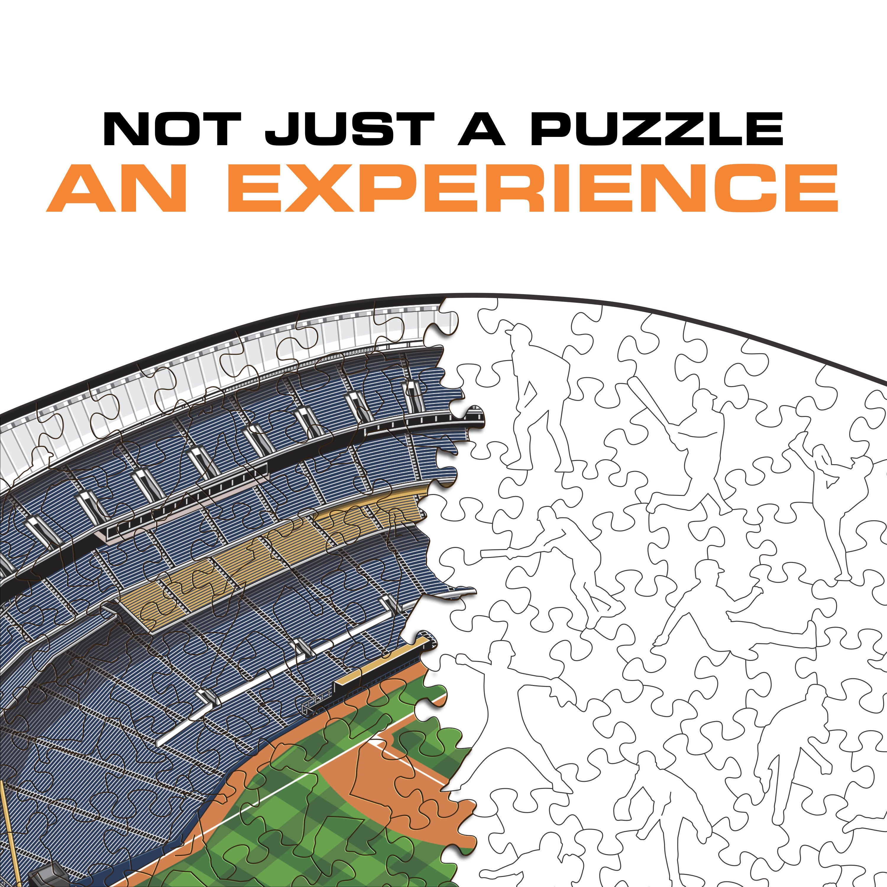 ✓ Each puzzle piece has a unique shape that depicts elements related to baseball and iconic player poses.