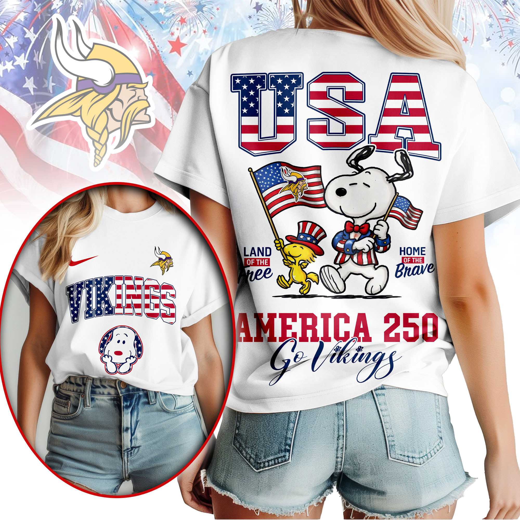 Minnesota Vikings | Premium NFL Snoopy America 250 3D Shirt