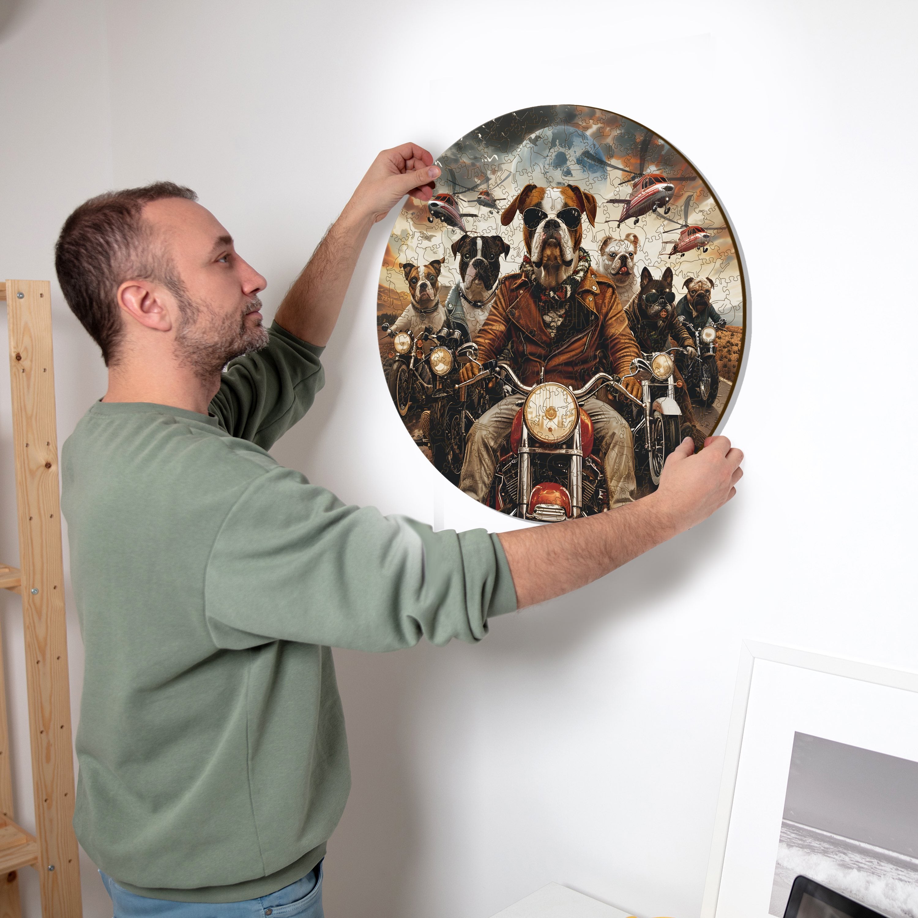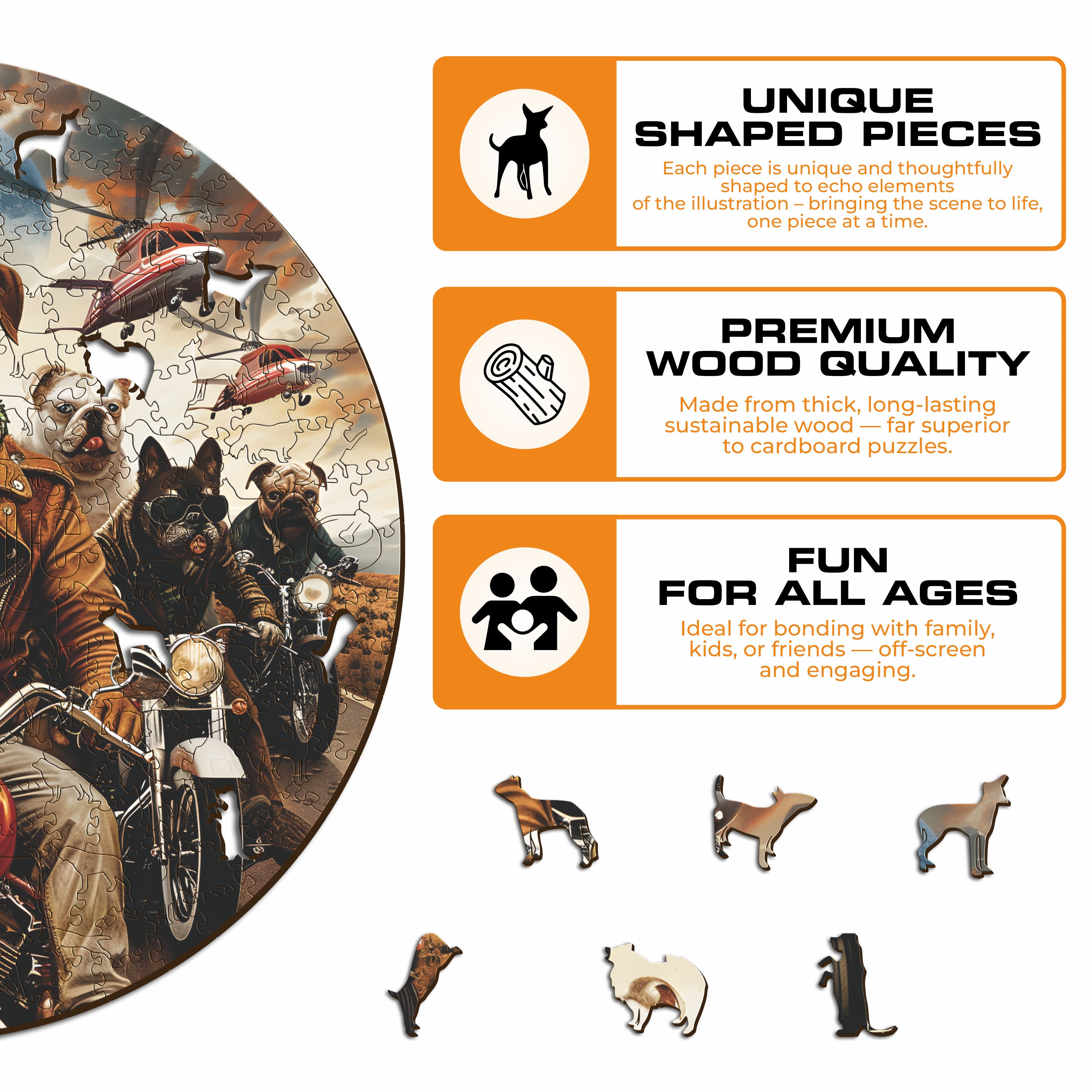 ✓ 1x Motorcyclist Dogs - Wooden Puzzle