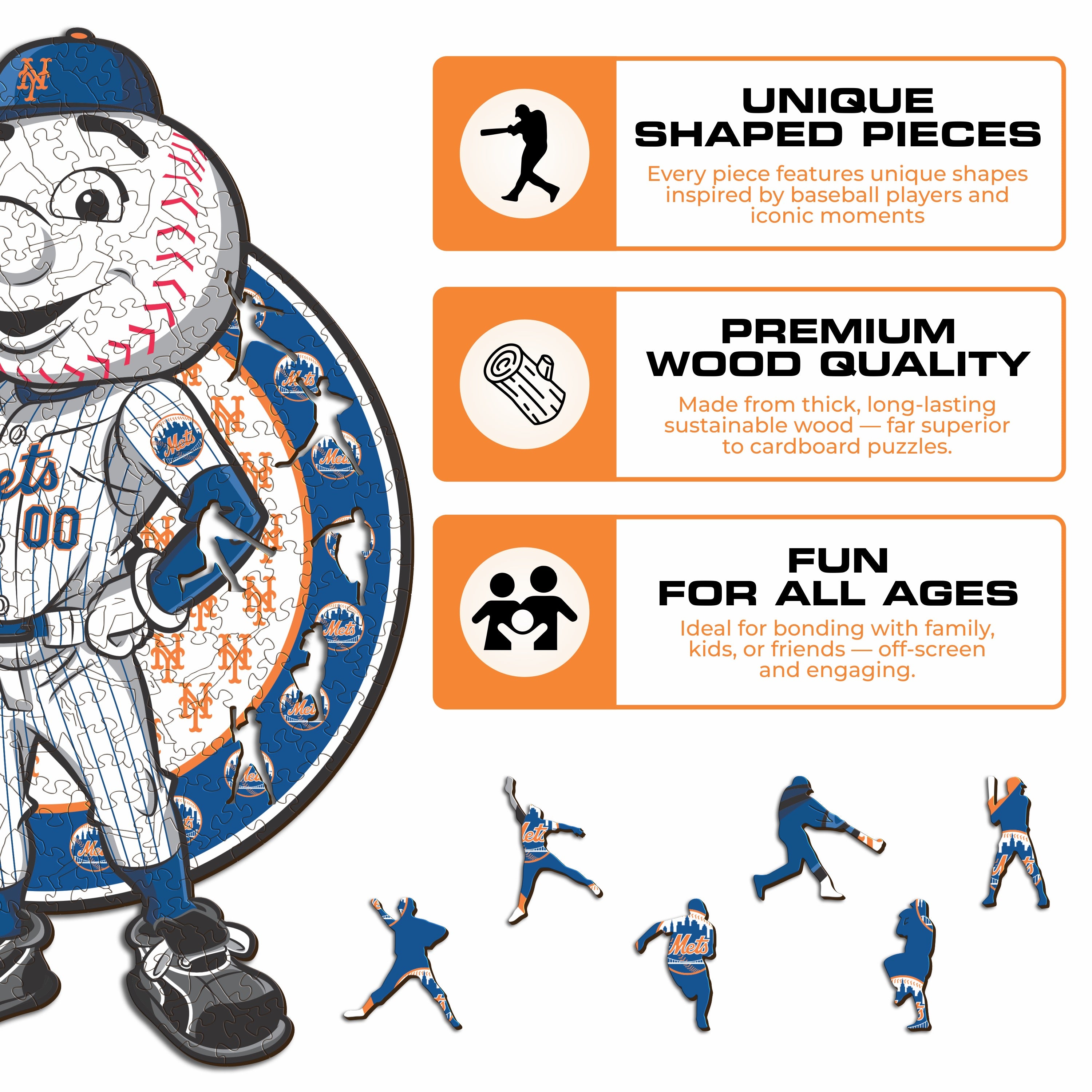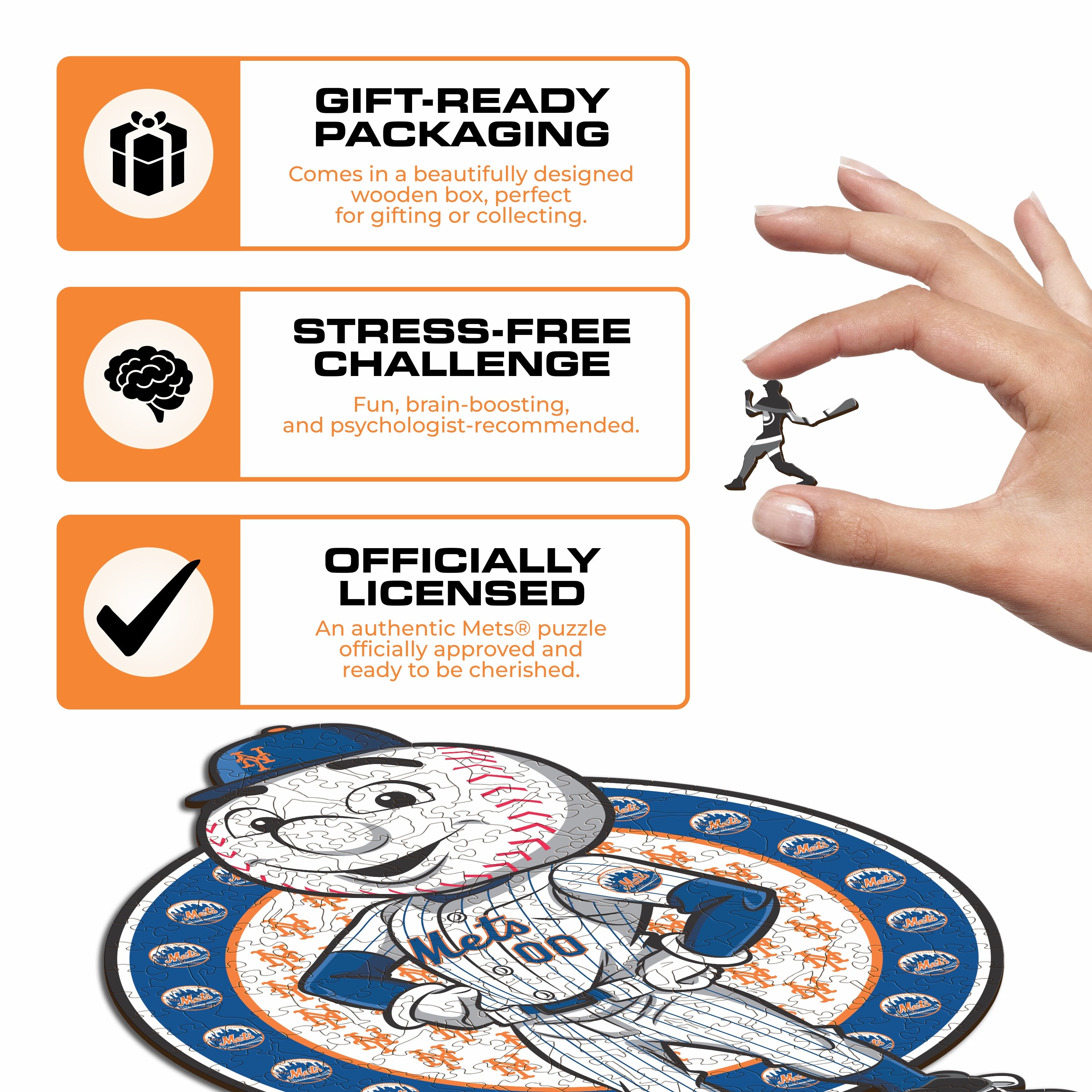 ✓ 1x New York Mets™ Mascot - Official Wooden Puzzle