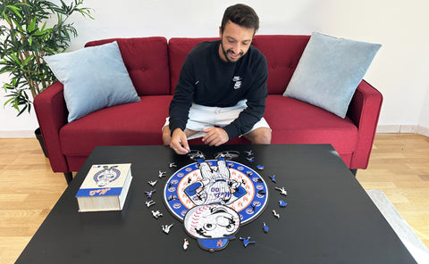 ✓ Each puzzle piece has a unique shape that depicts elements related to baseball and iconic player poses.
