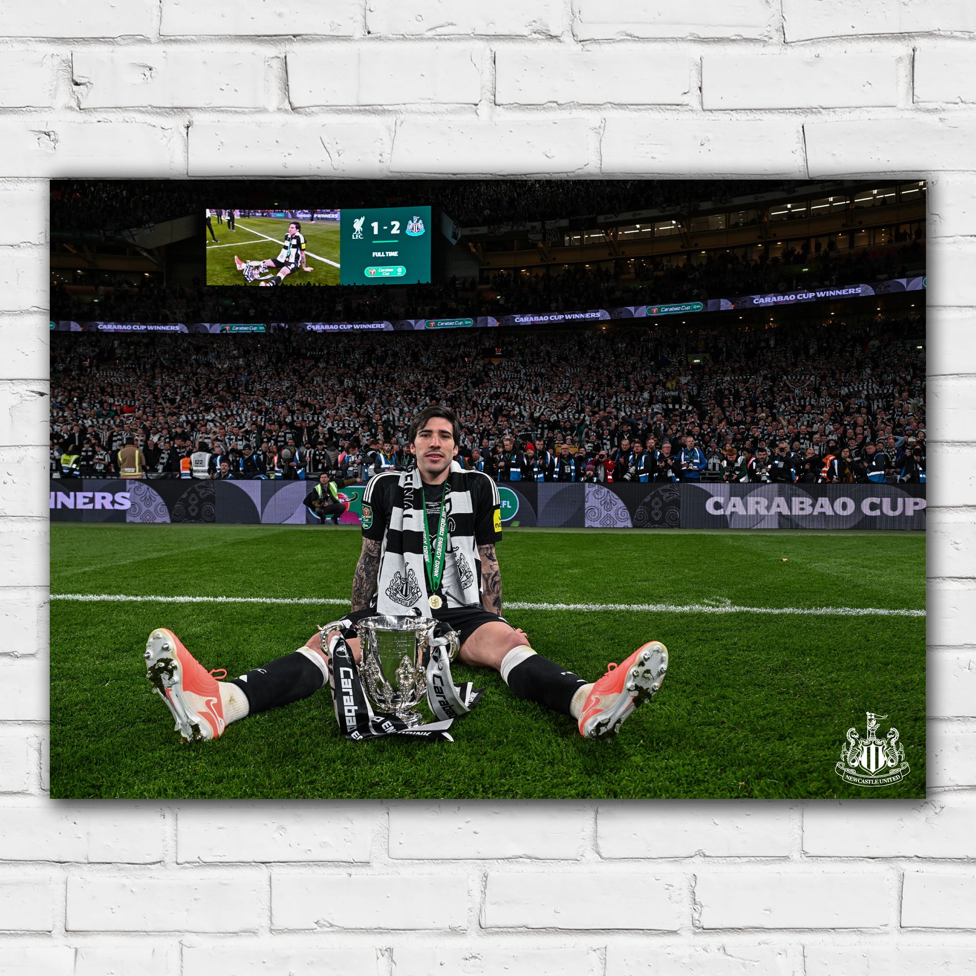 Contents: x1 Newcastle United FC Cup Winners Tonali with Trophy Print (in your chosen size and frame option).