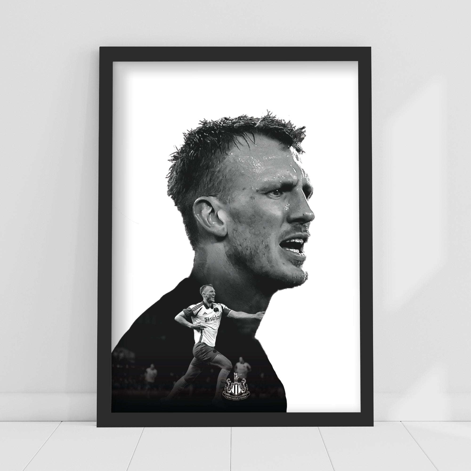 Contents: x1 Newcastle United Dan Burn Black and White Portrait Print (in your chosen size and frame option).