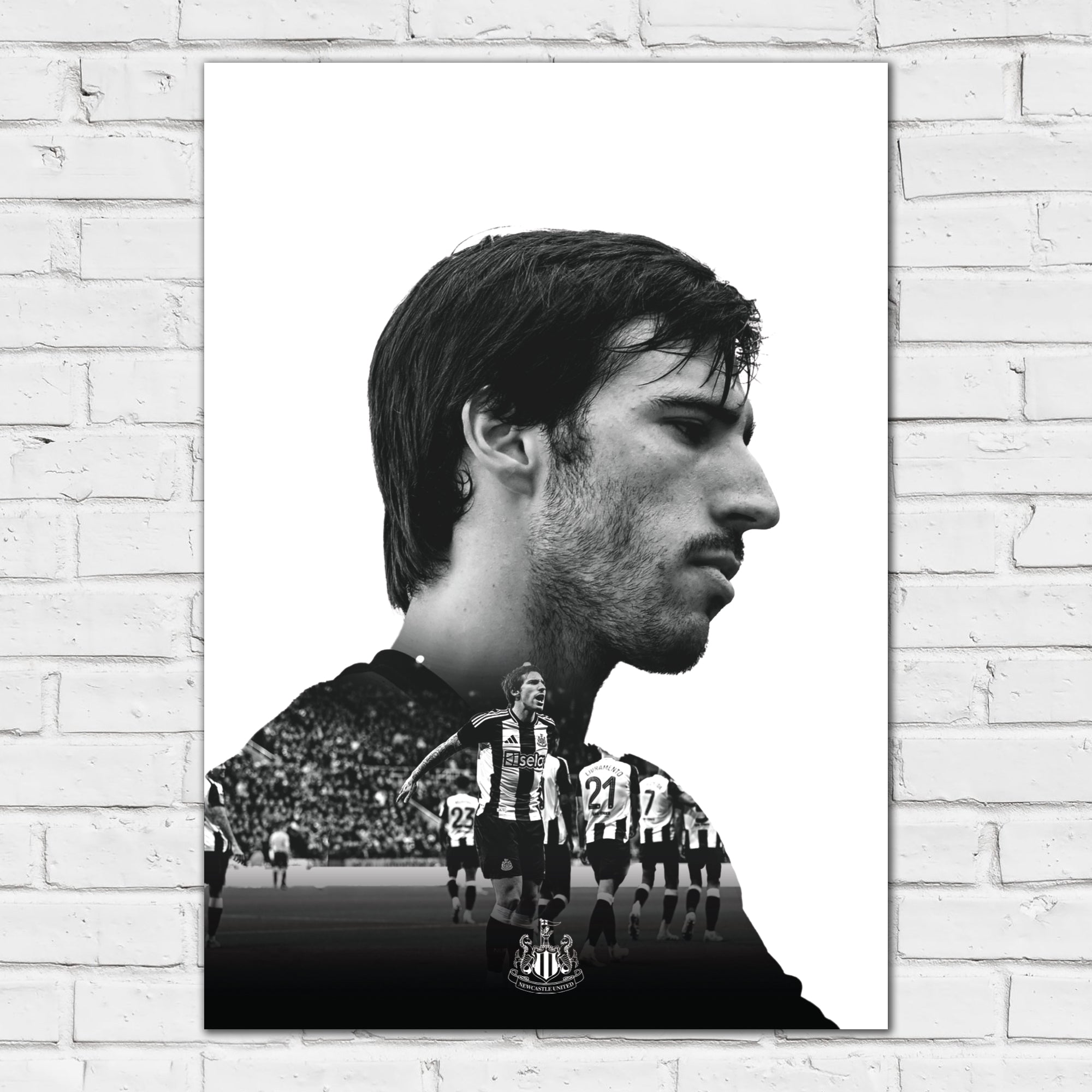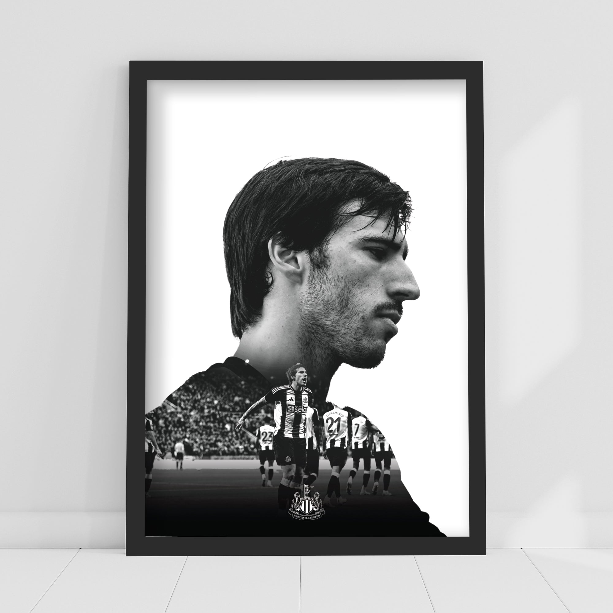 Contents: x1 Newcastle United Sandro Tonali Black and White Portrait Print (in your chosen size and frame option).