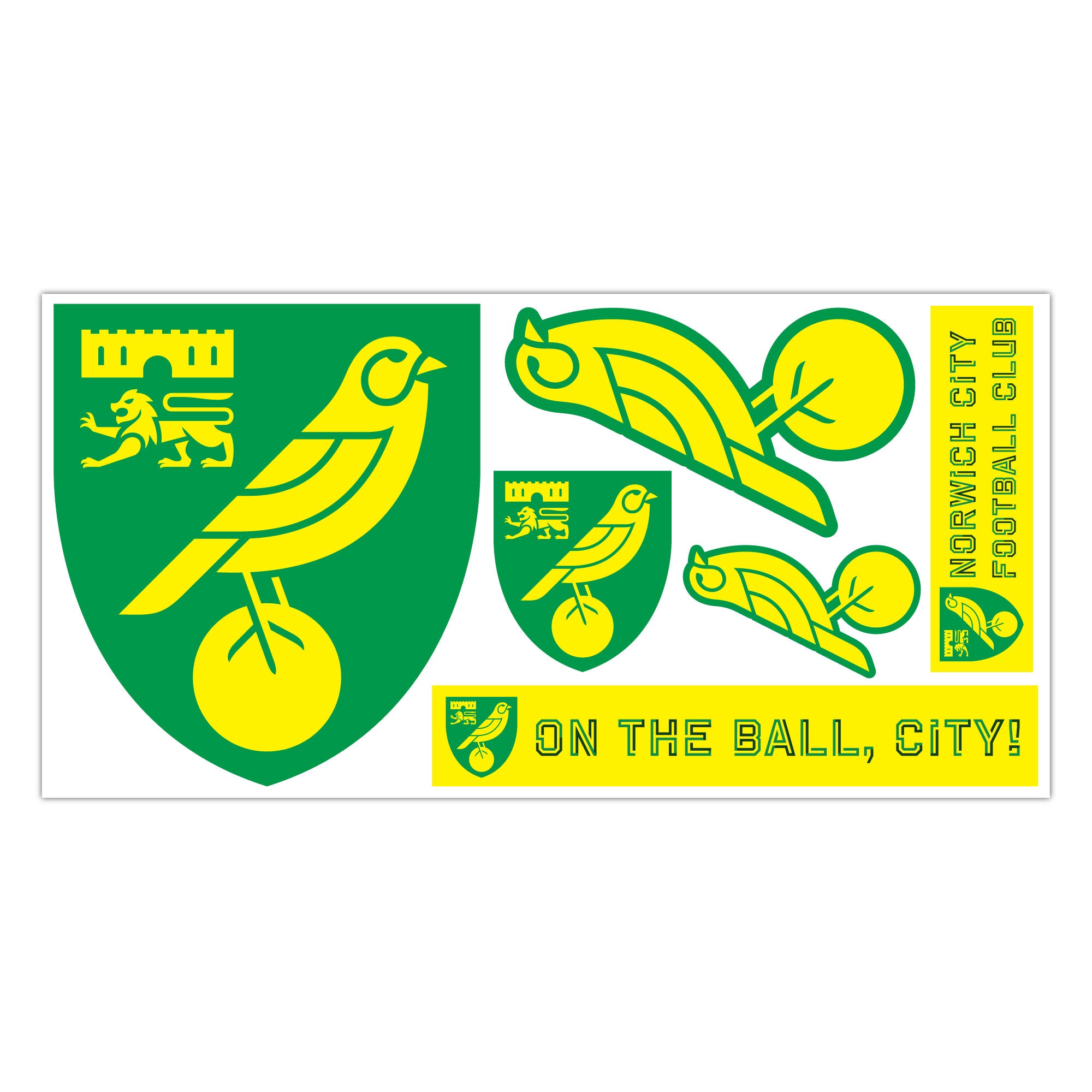 Contents: x1 Official Norwich Football Club Decal Sticker Set. Includes 6 individual stickers on a 60cm x 30cm sheet.
