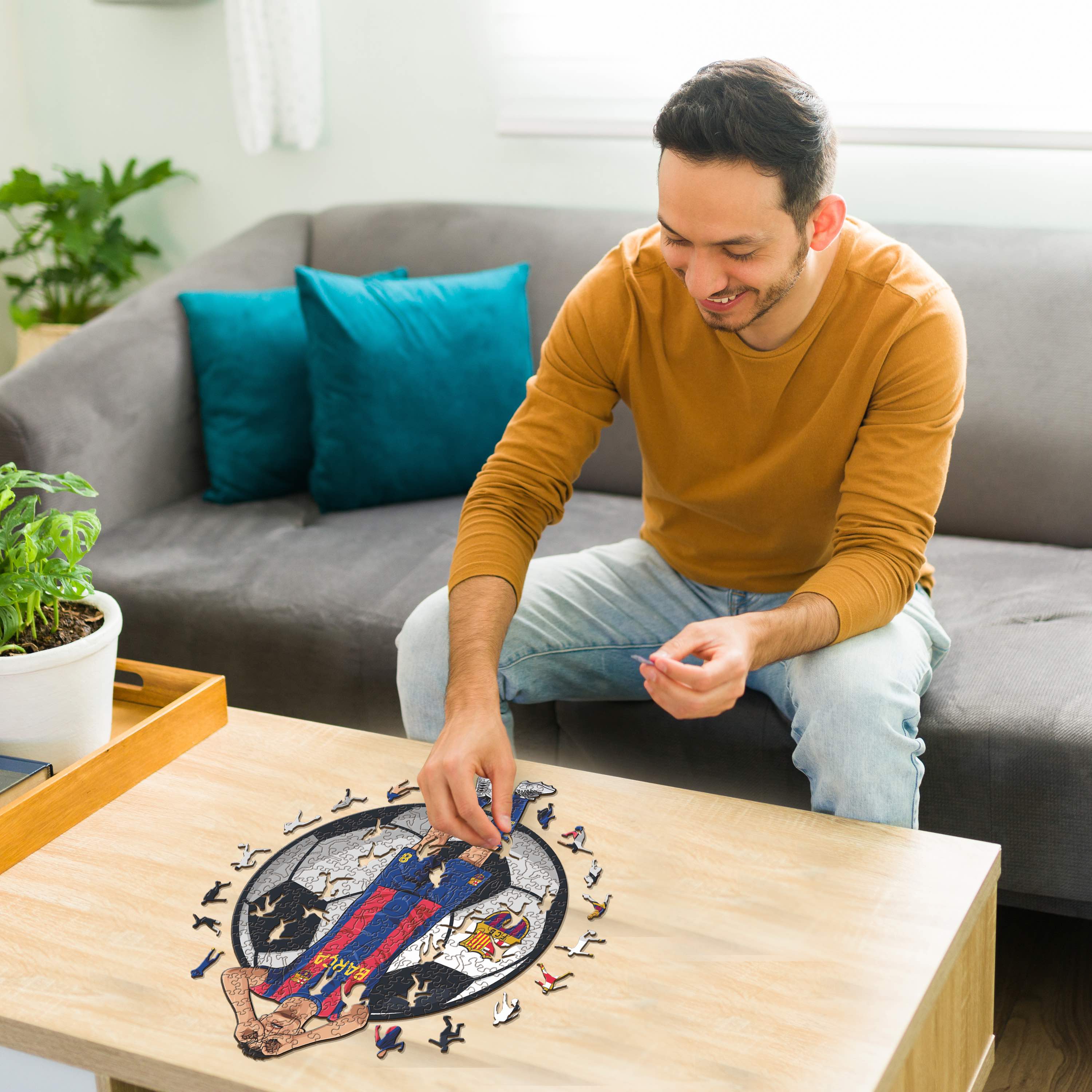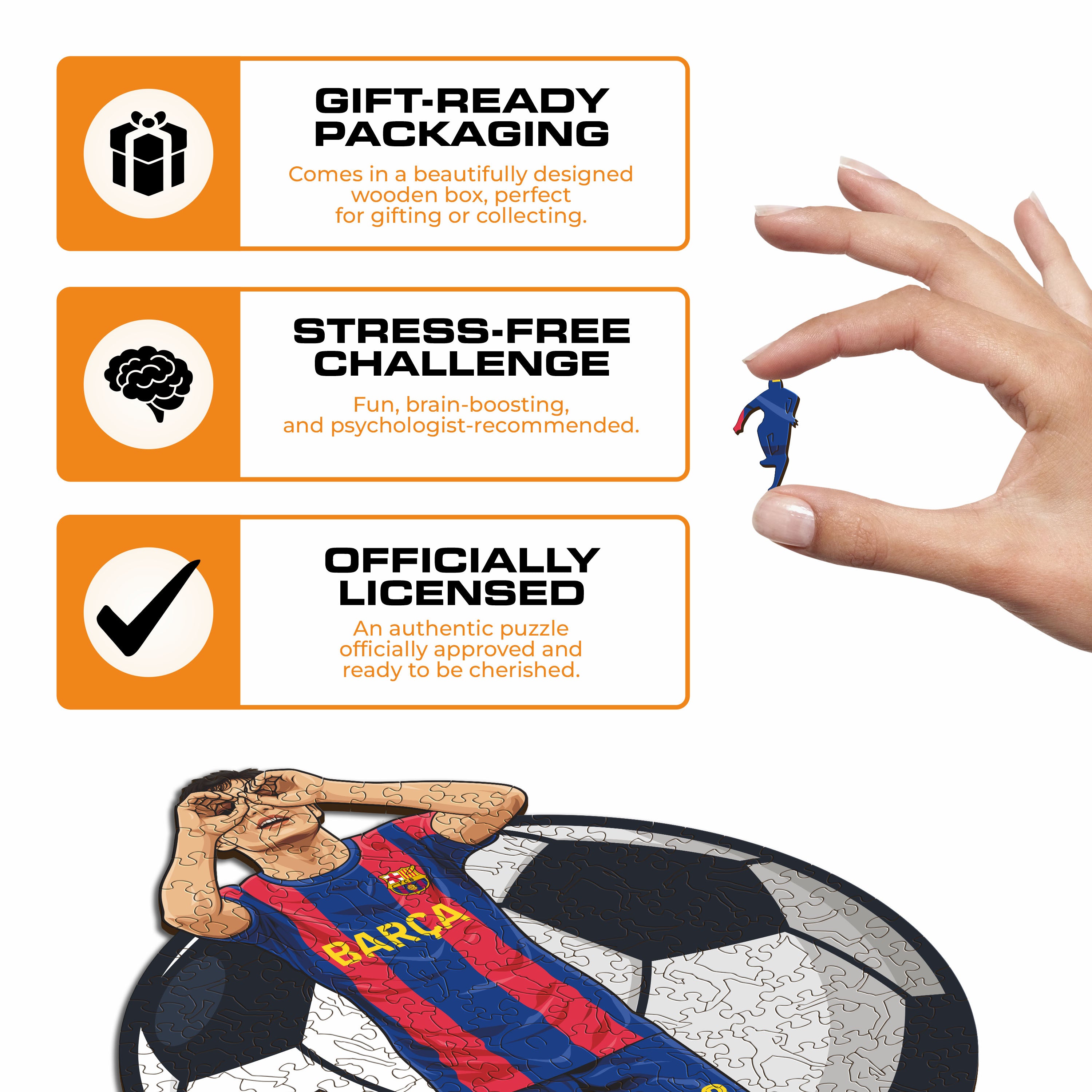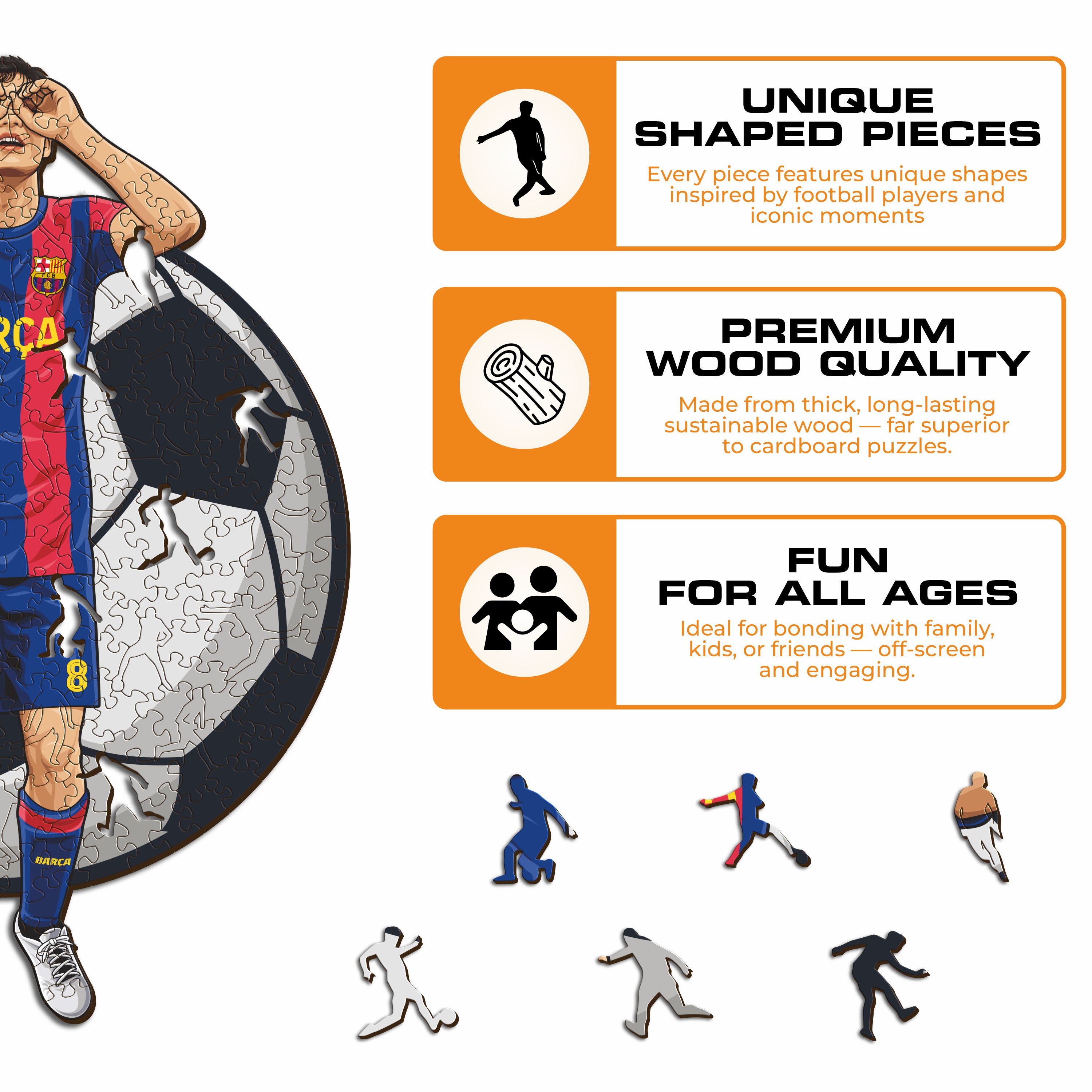 ✓ Each puzzle piece has a unique shape that depicts elements related to soccer and iconic player poses.