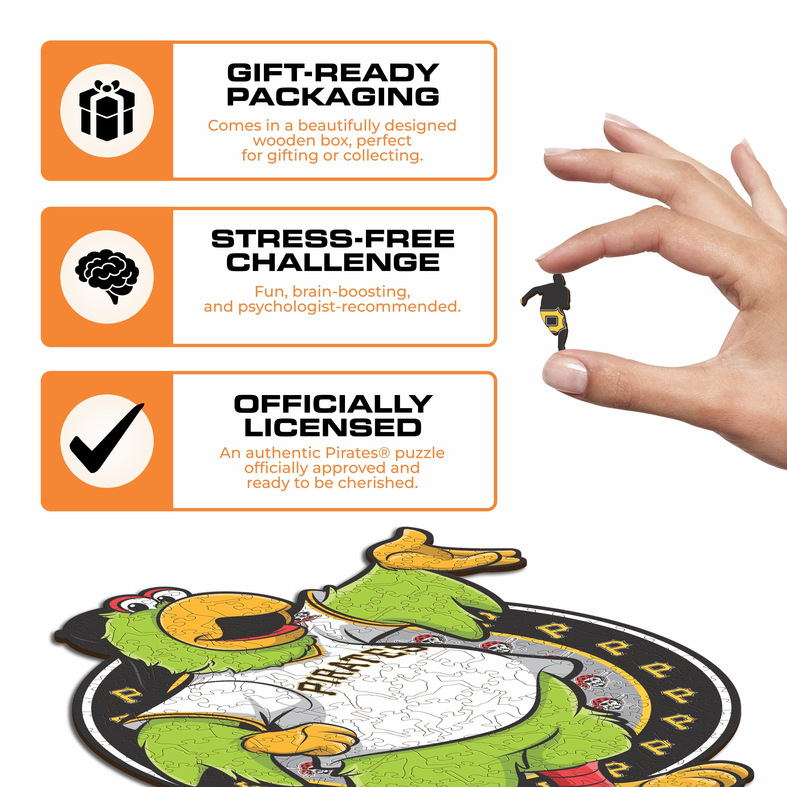 ✓ 1x Pittsburgh Pirates™ Mascot - Official Wooden Puzzle