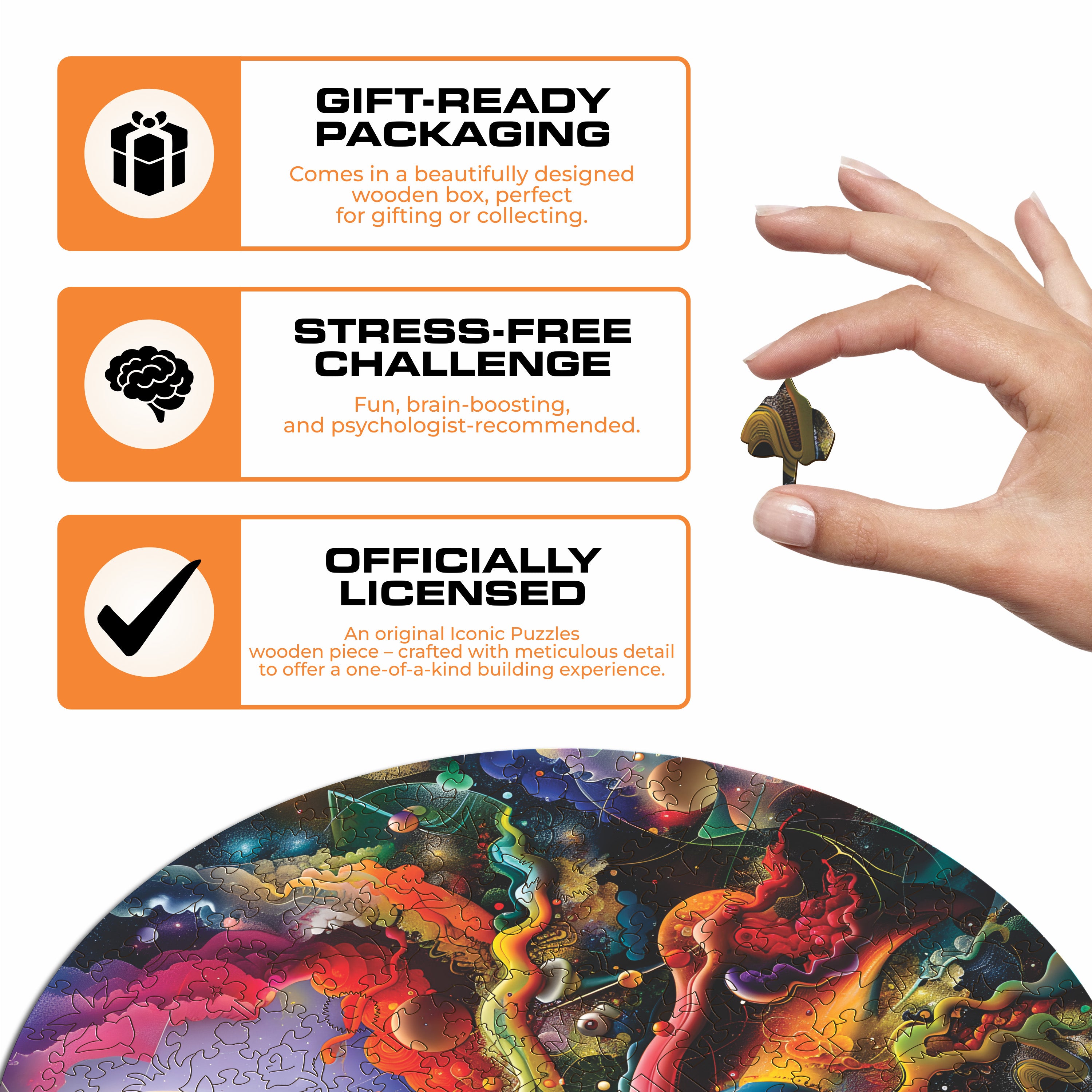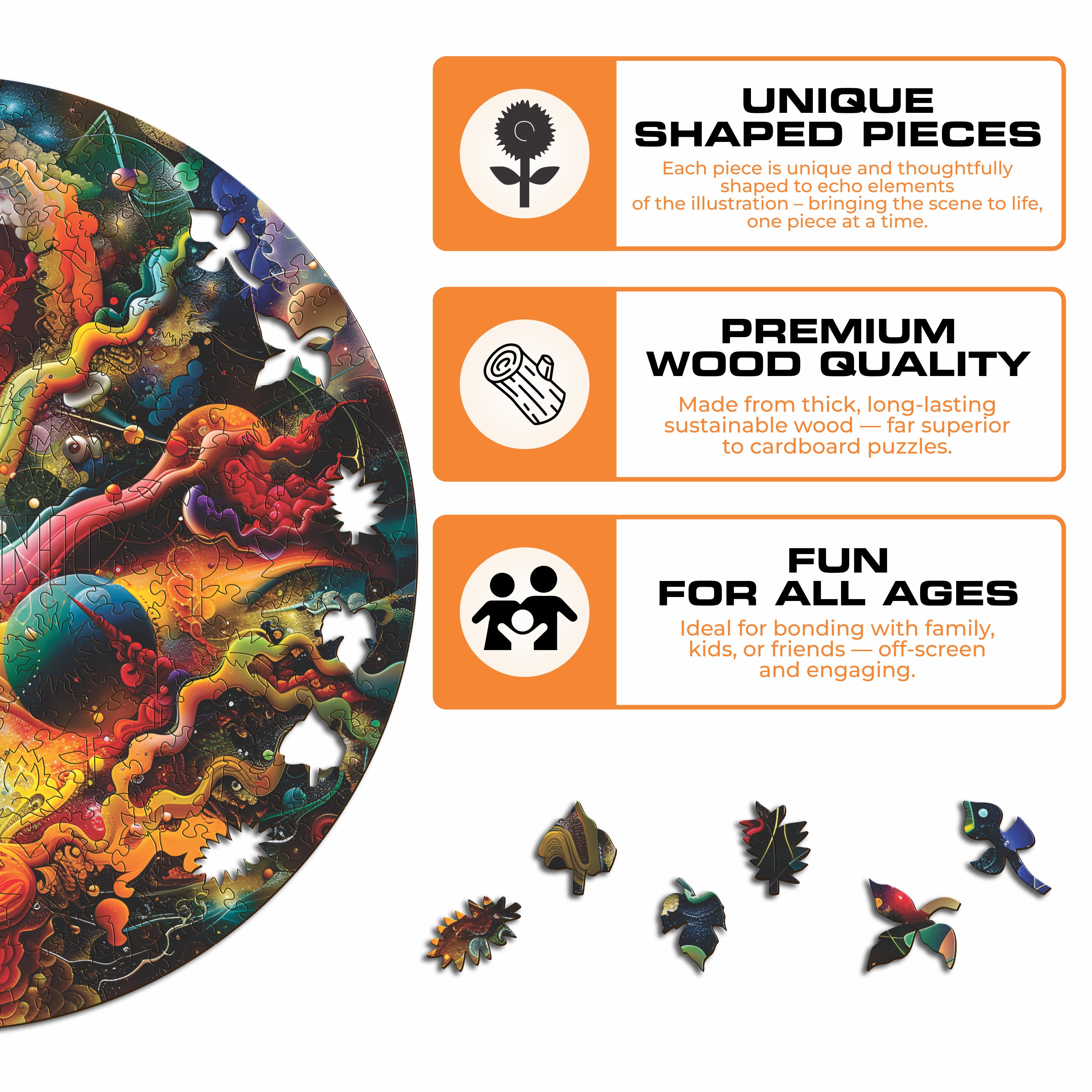 - 100% sustainable wooden puzzle 1/5in (0.3cm) thick.