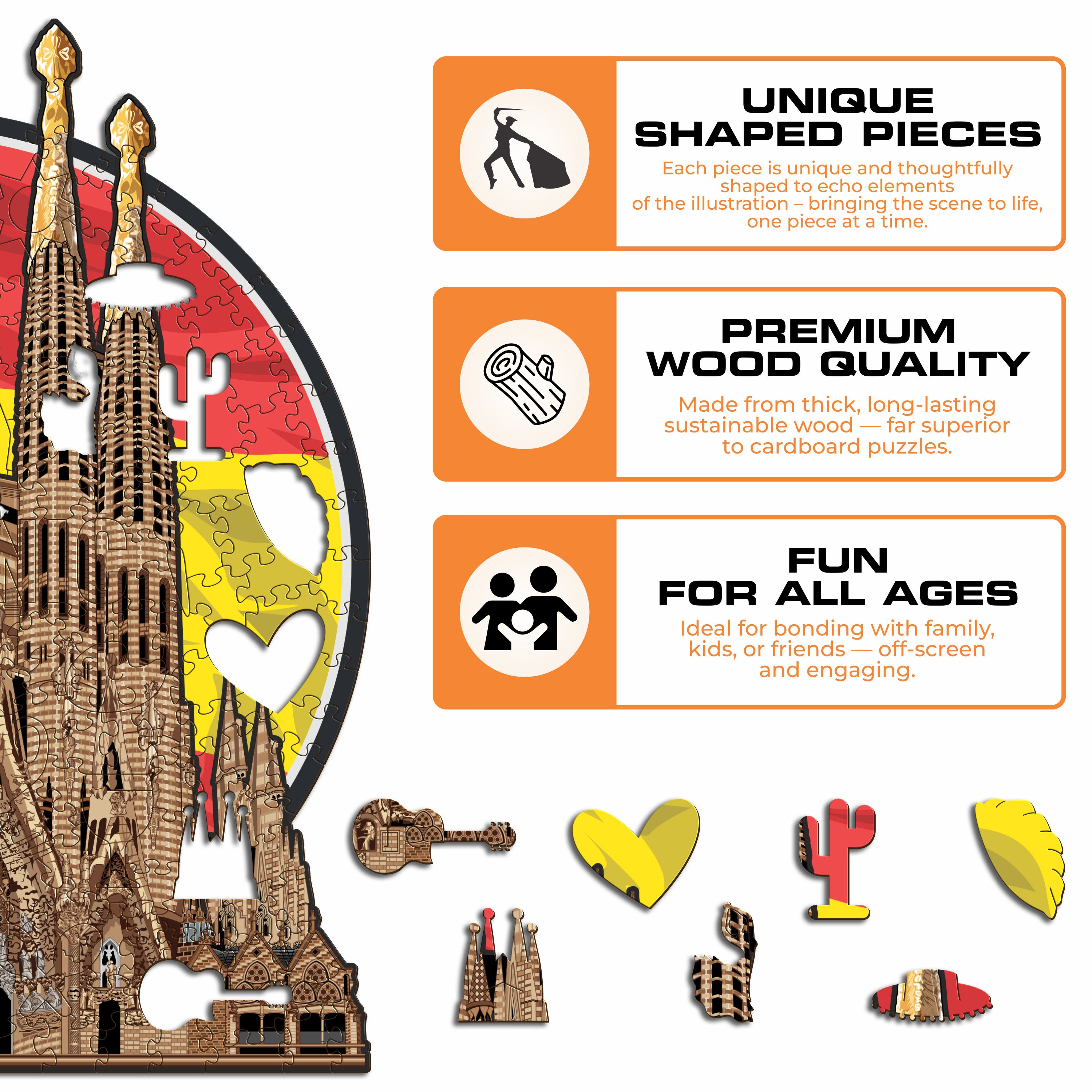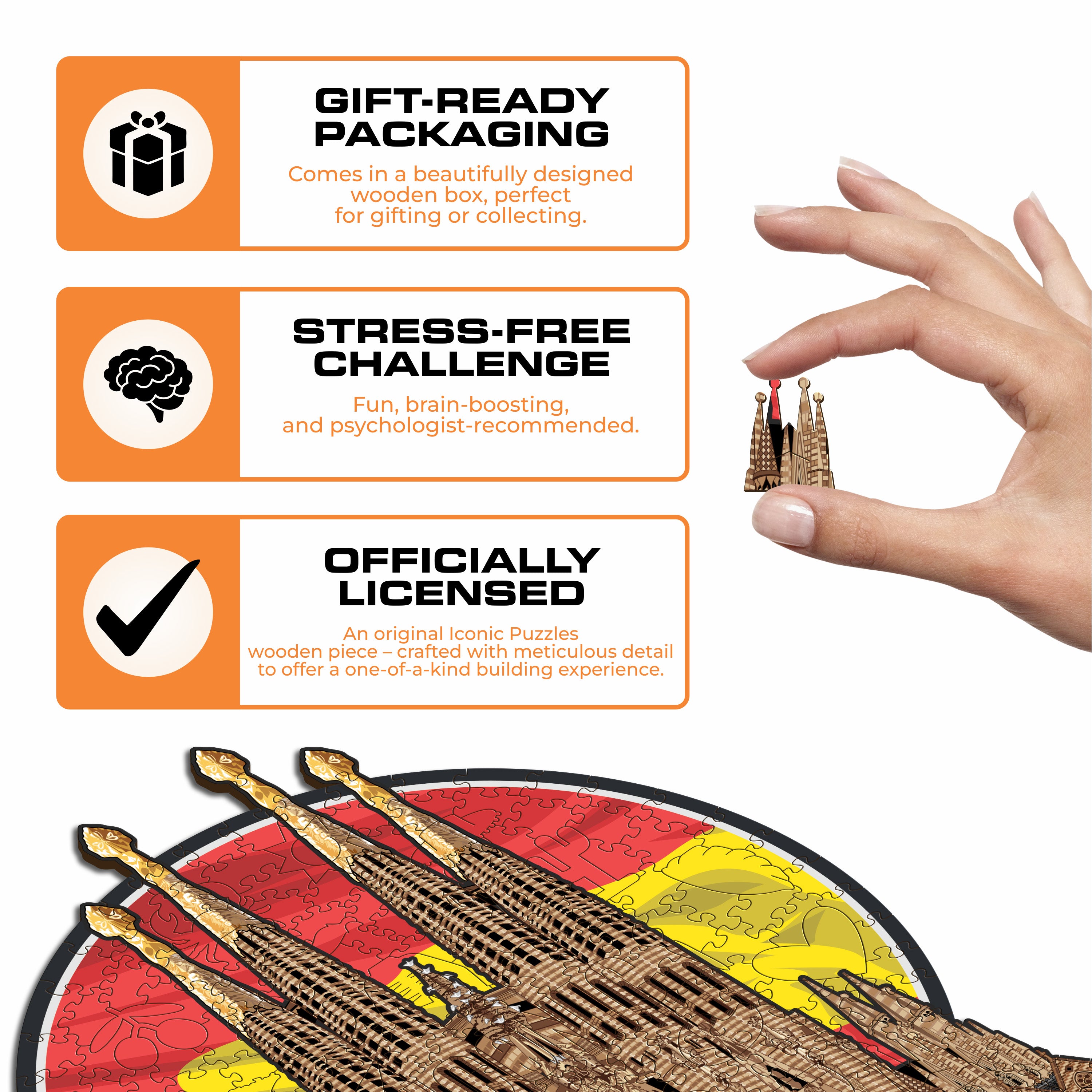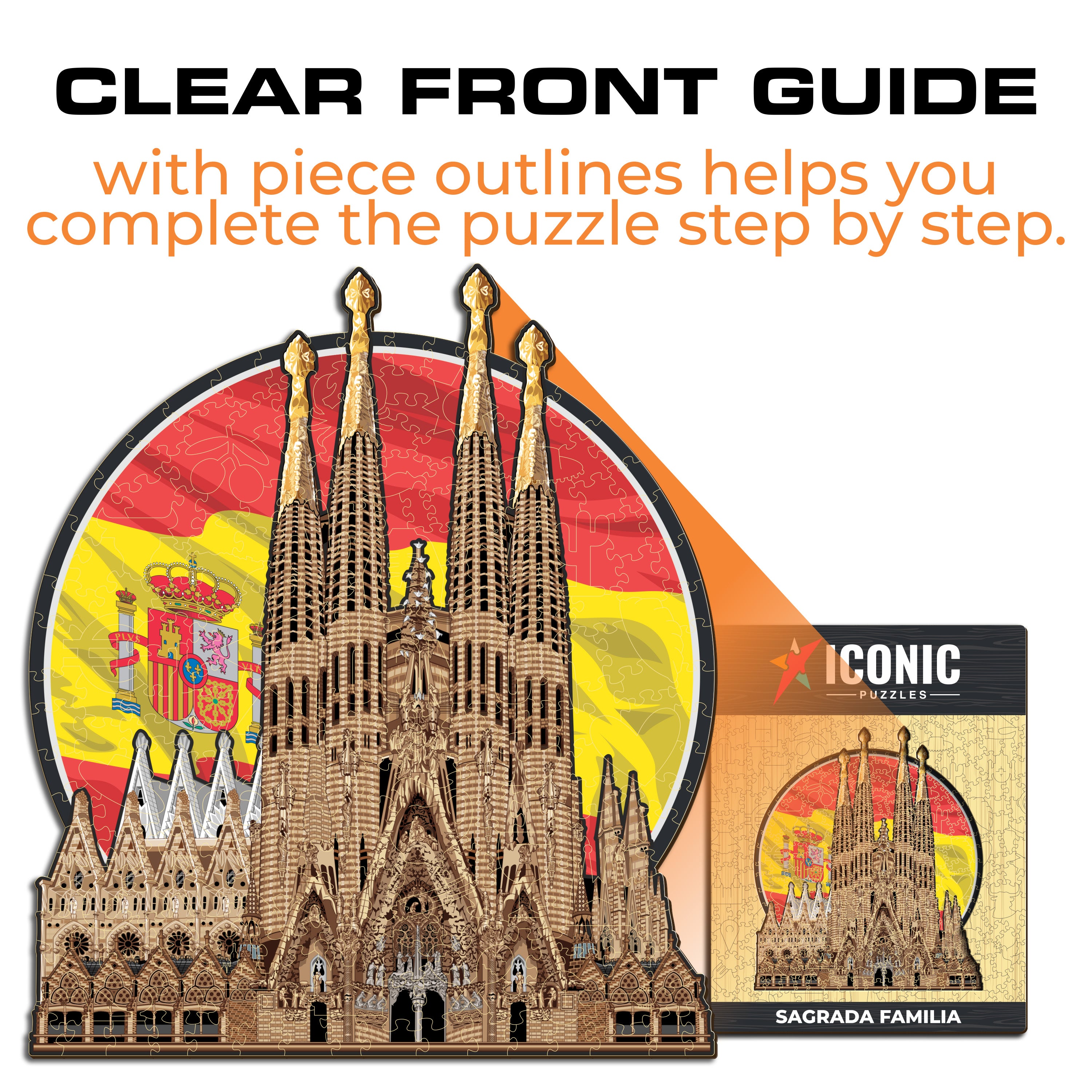 ✓ 1x Sagrada Família - Official Wooden Box (featuring a printed guide on the front to help you complete the puzzle with ease)