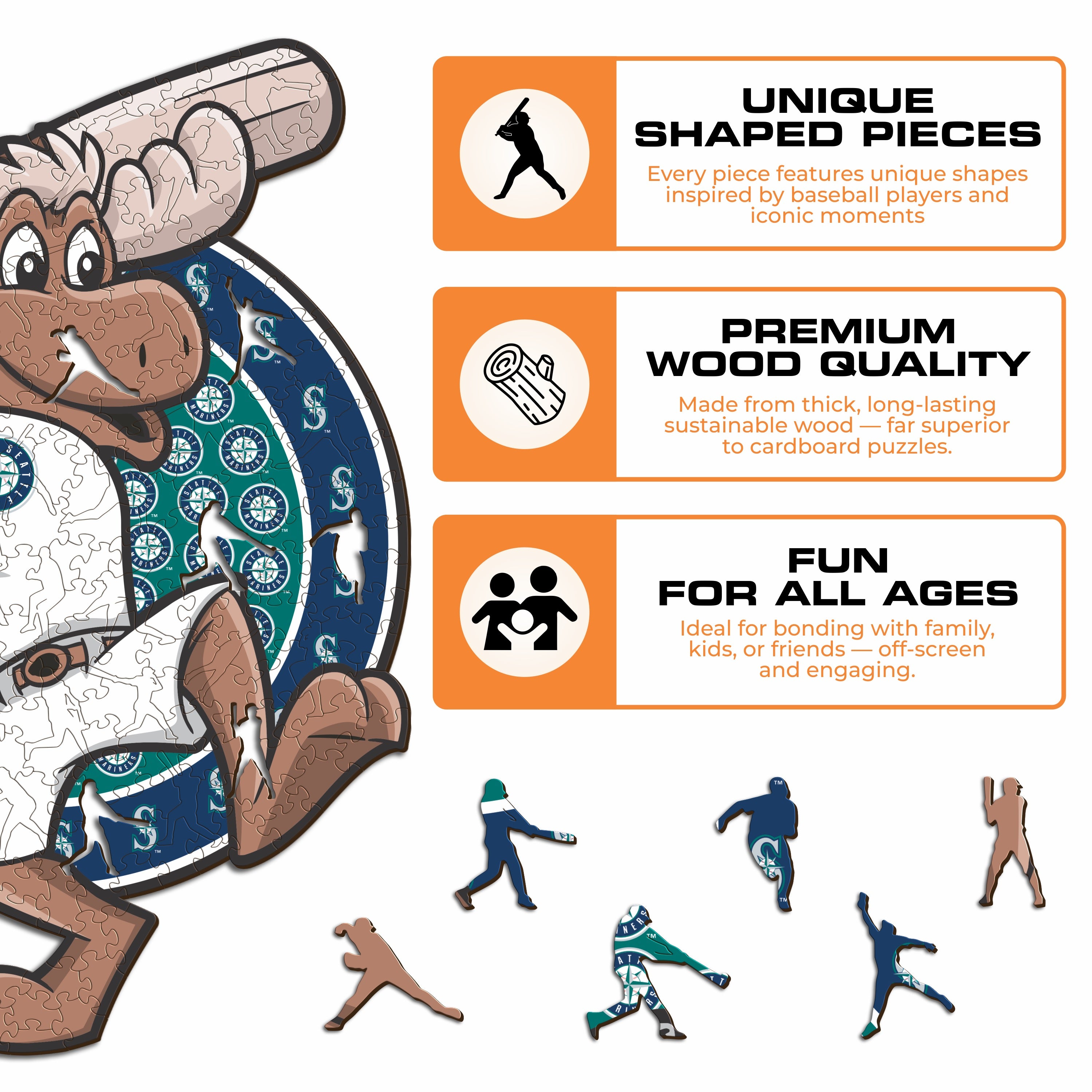 ✓ 1x Seattle Mariners™ Mascot - Official Wooden Puzzle