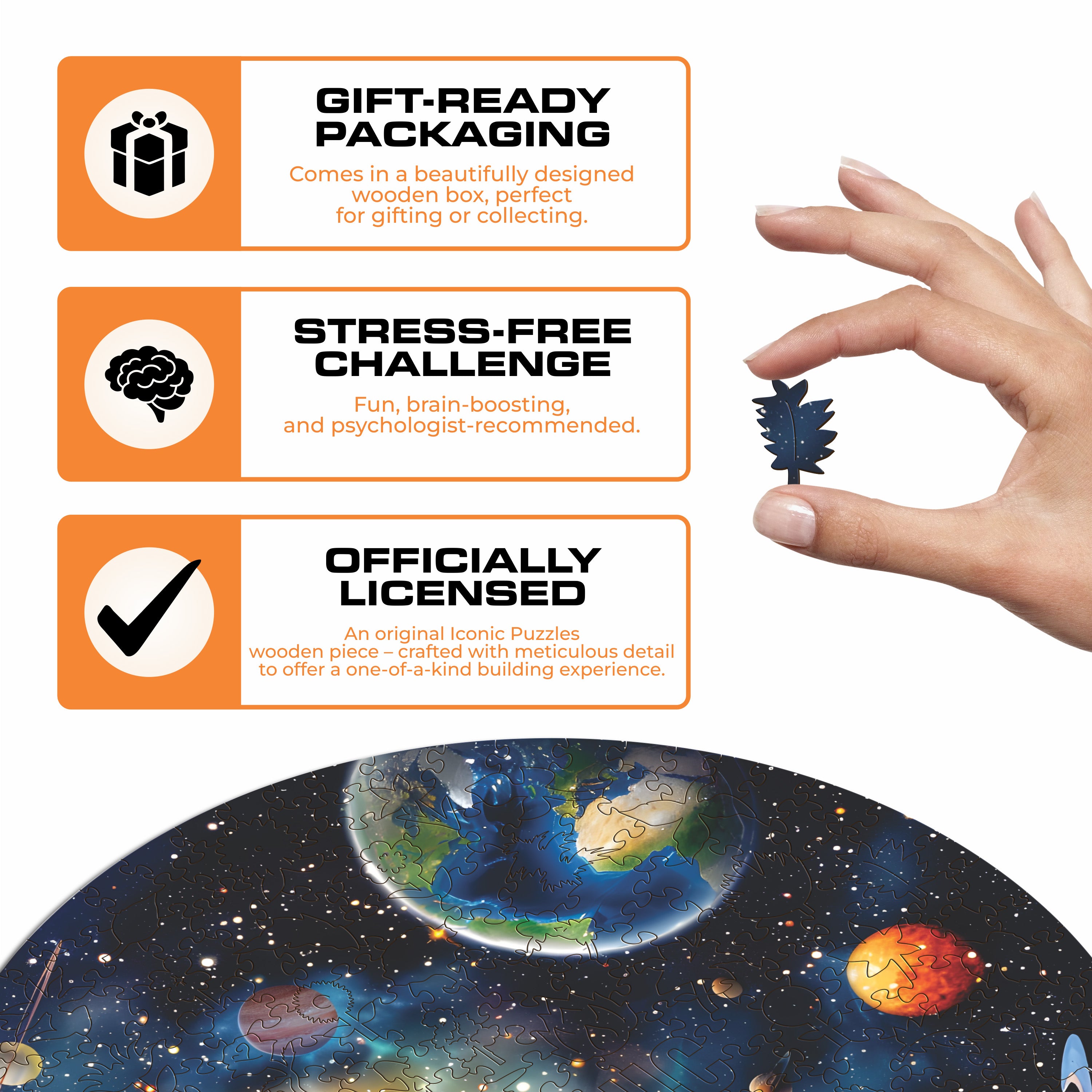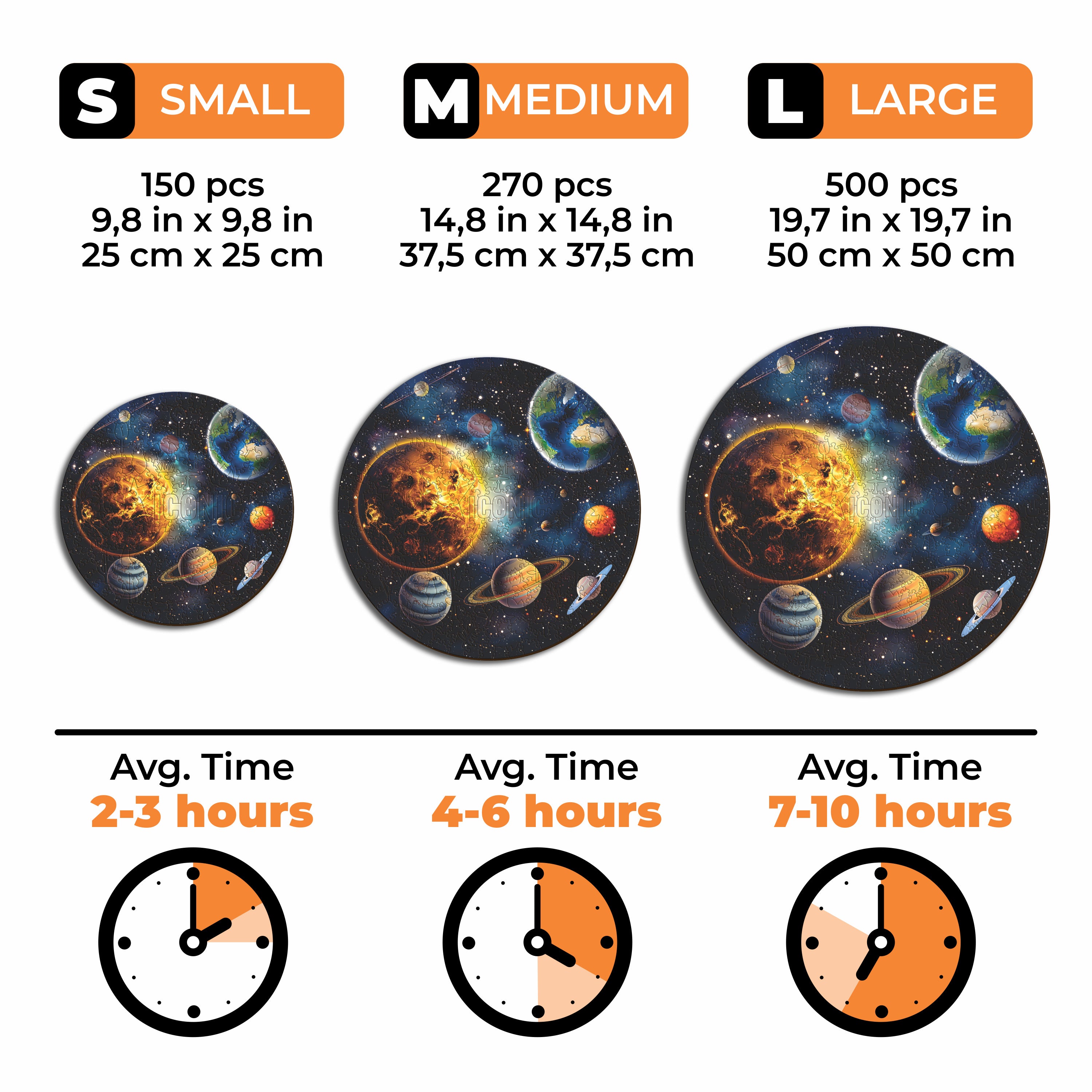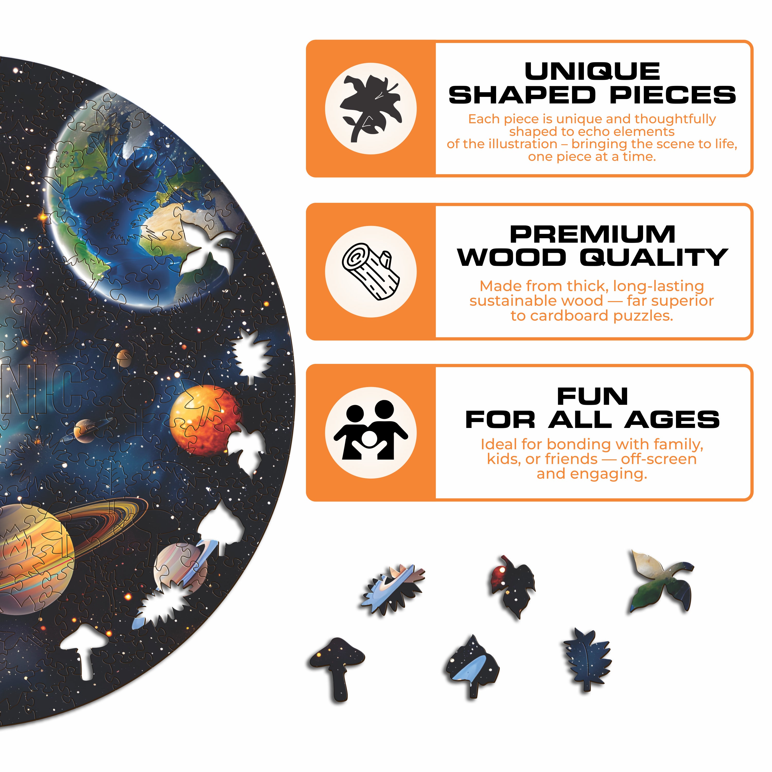 - 100% sustainable wooden puzzle 1/5in (0.3cm) thick.