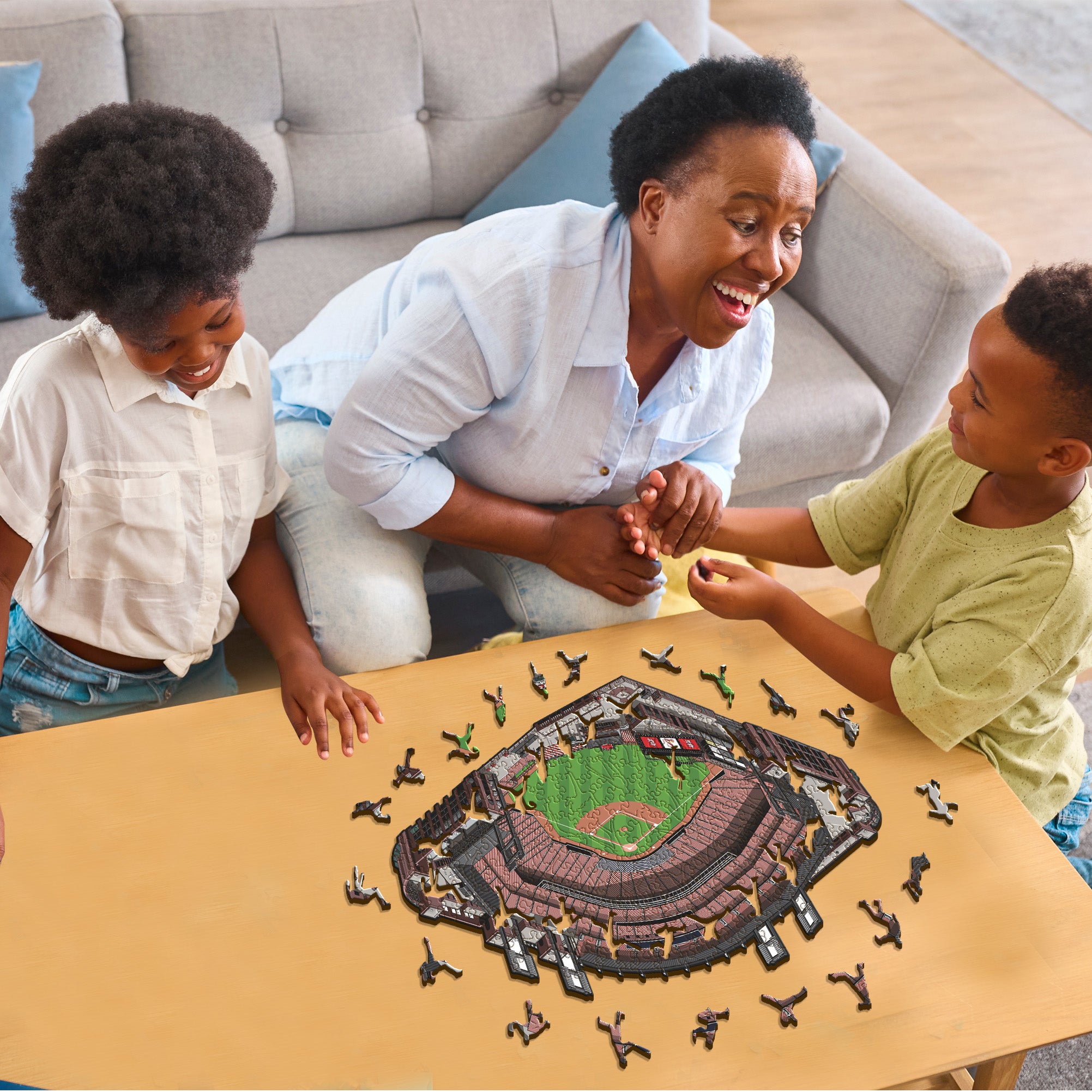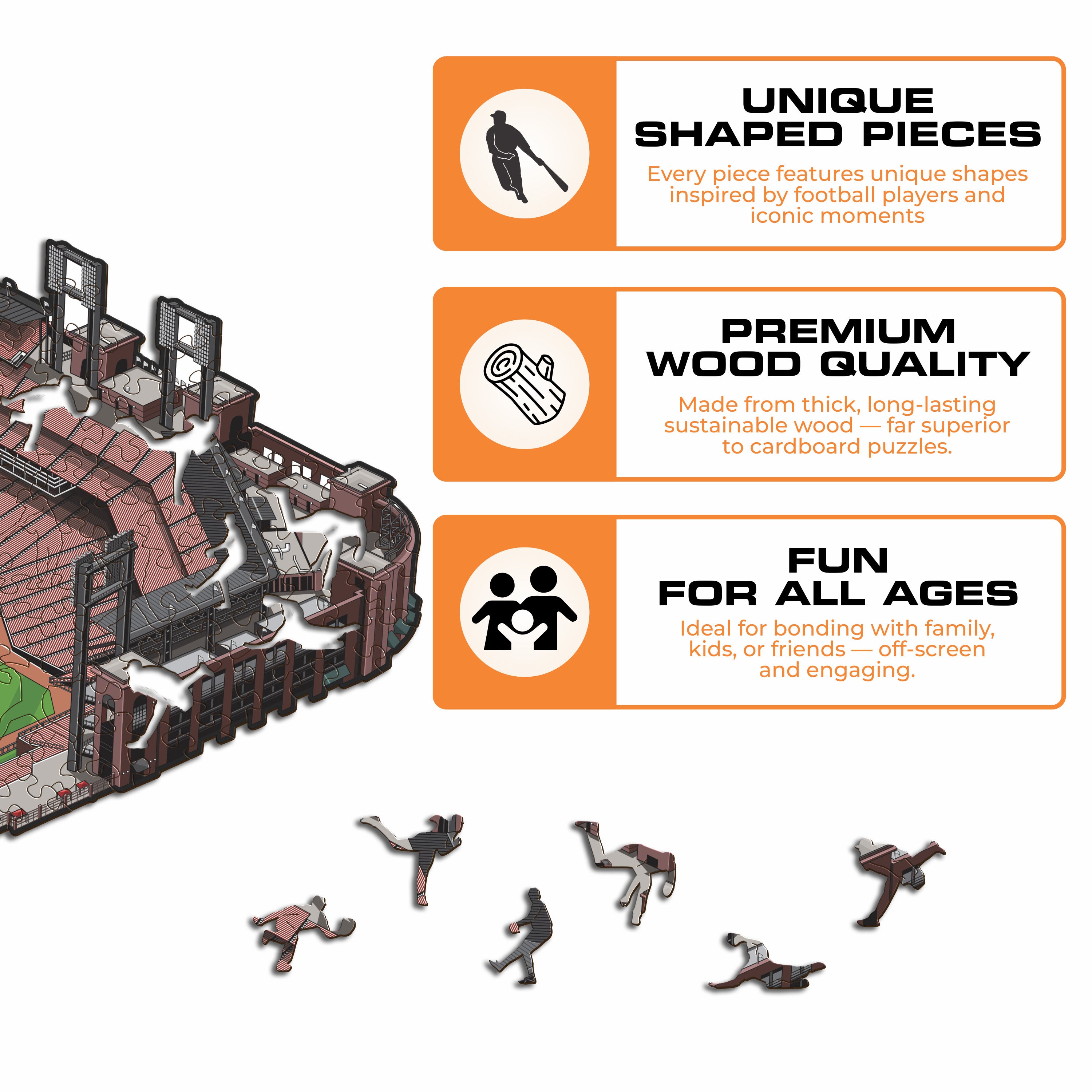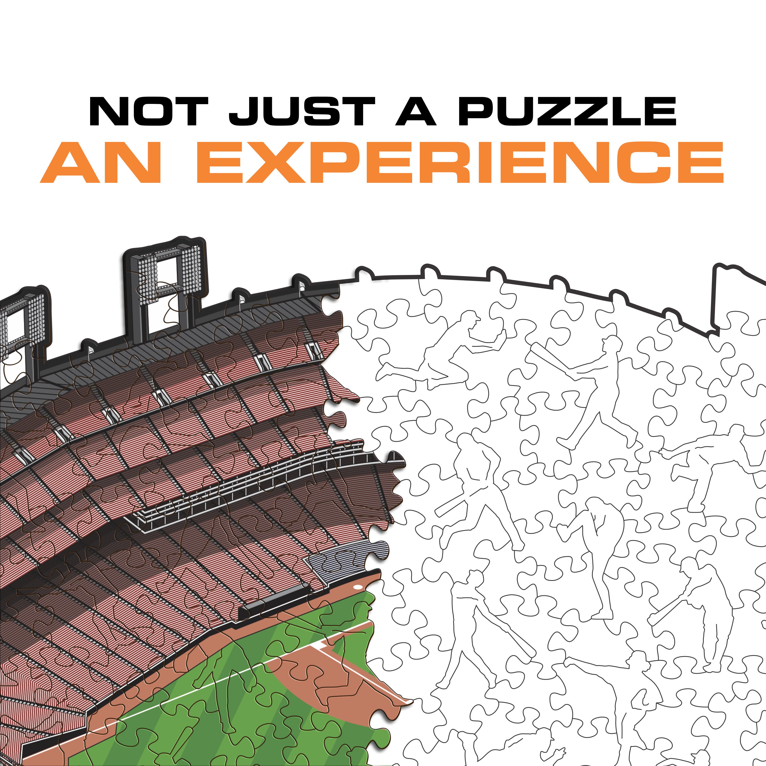 ✓ Each puzzle piece has a unique shape that depicts elements related to baseball and iconic player poses.