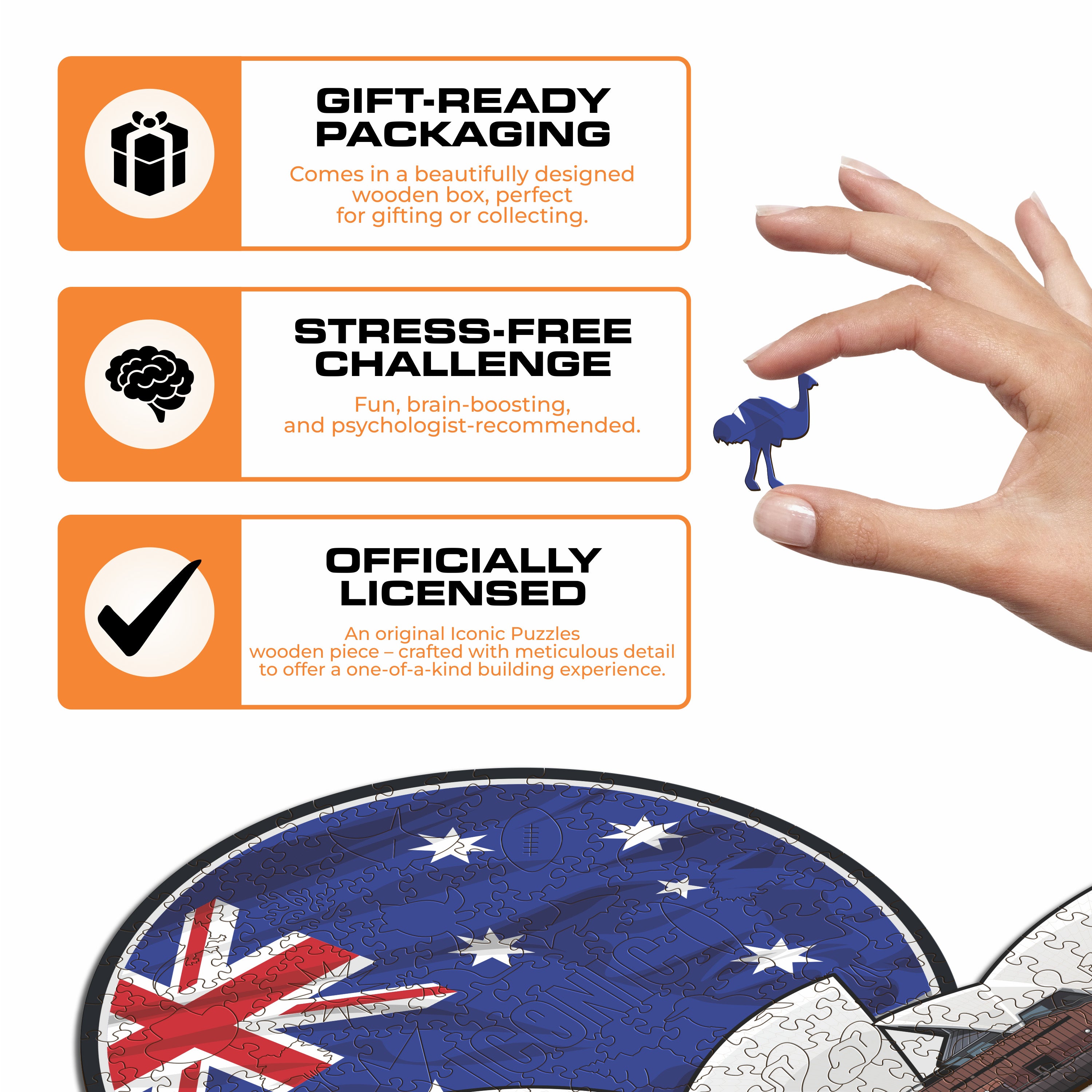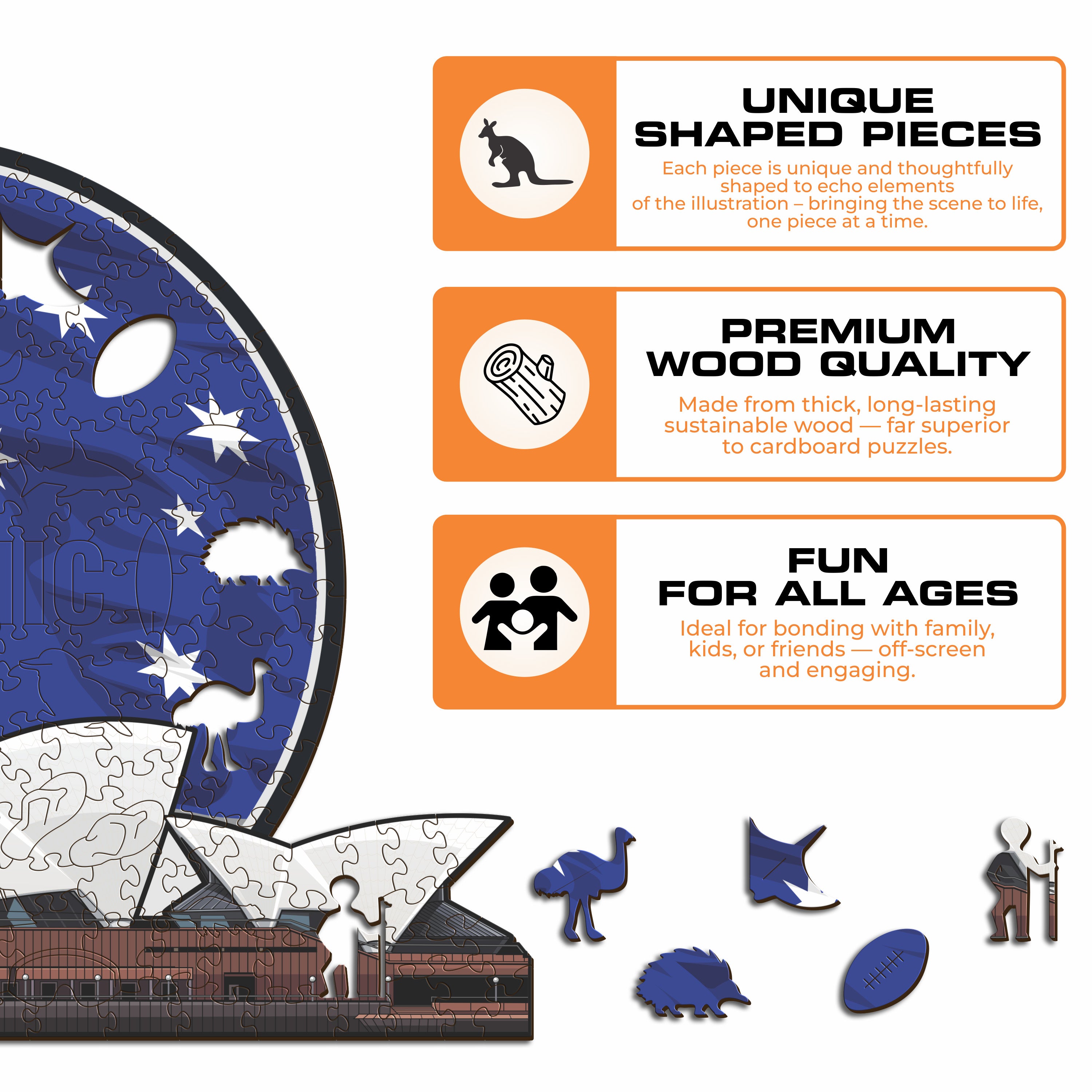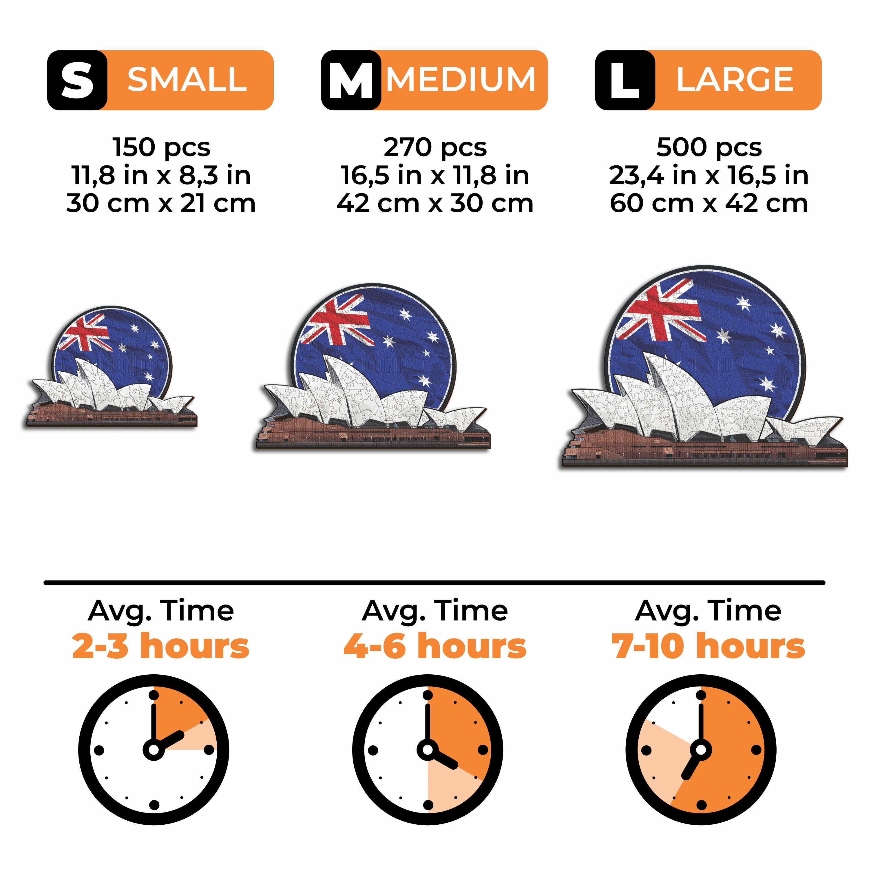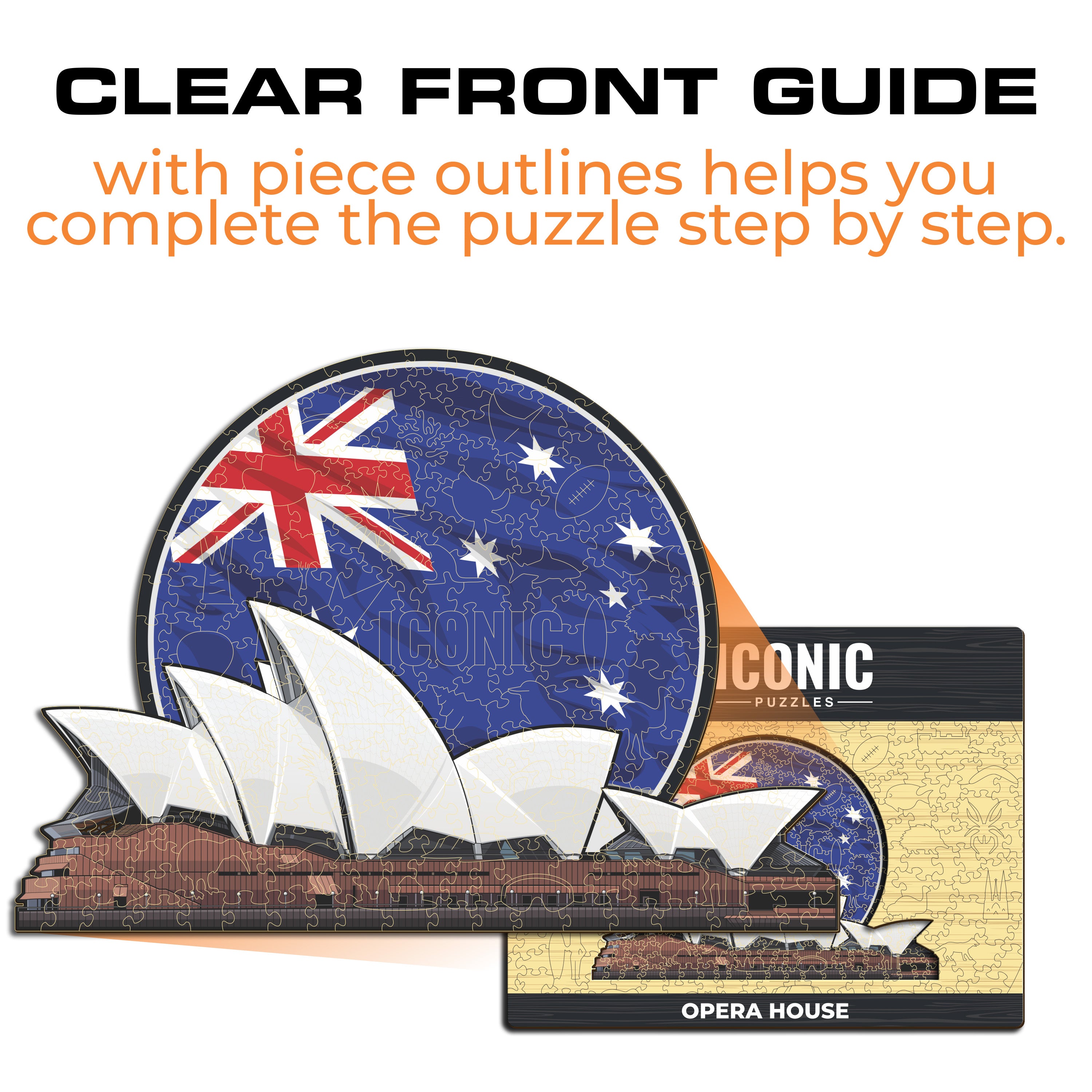 ✓ 1x Sydney Opera House - Official Wooden Box (featuring a printed guide on the front to help you complete the puzzle with ease)