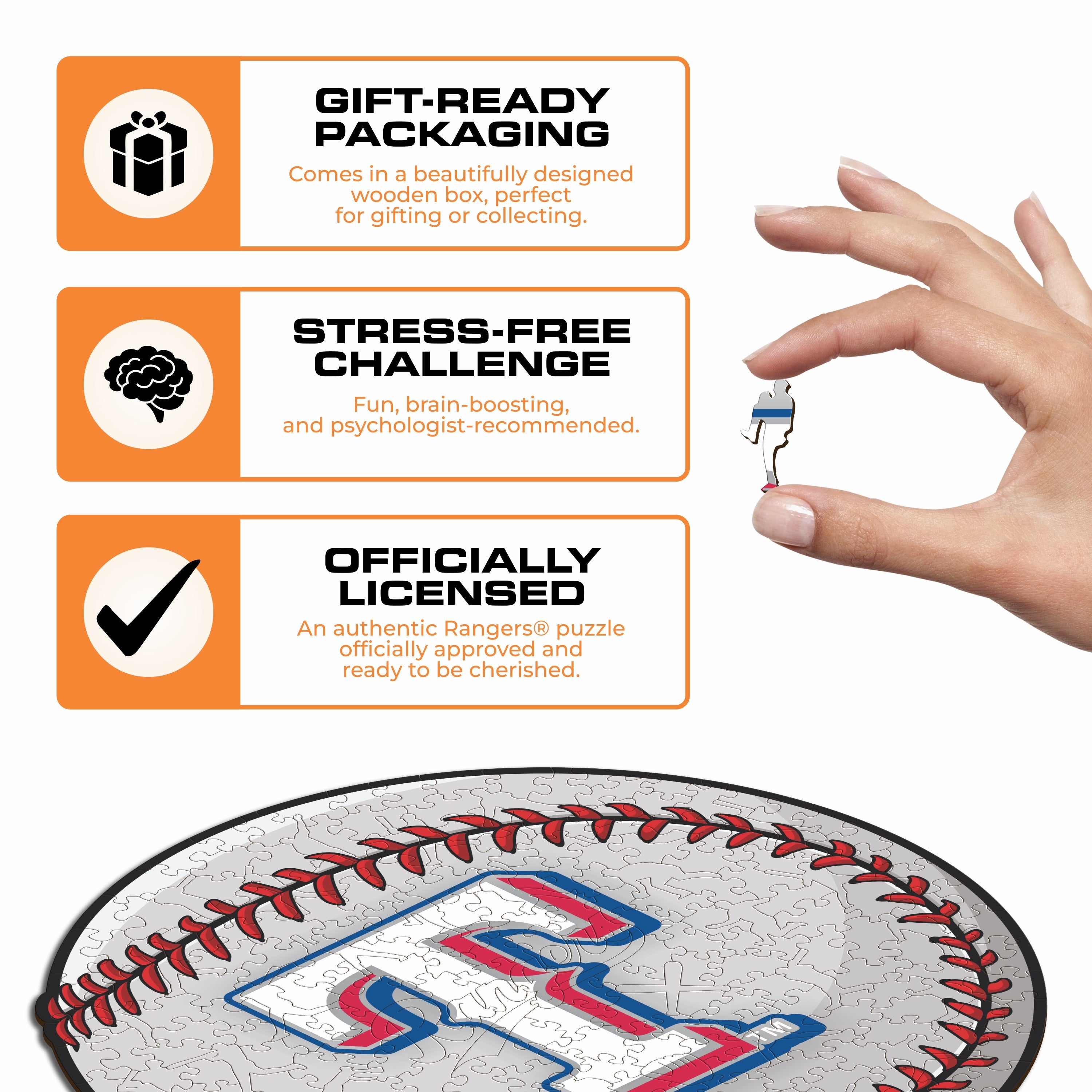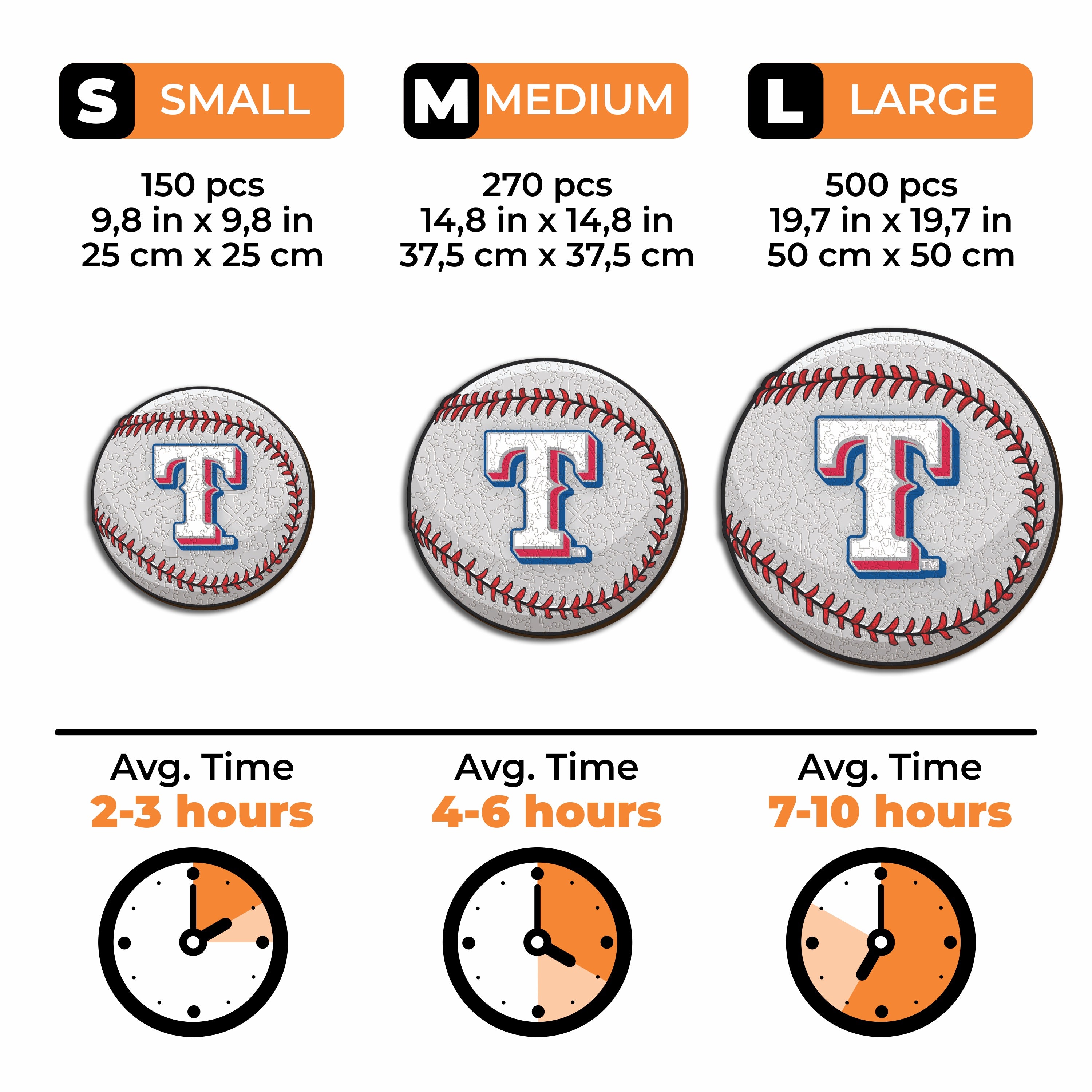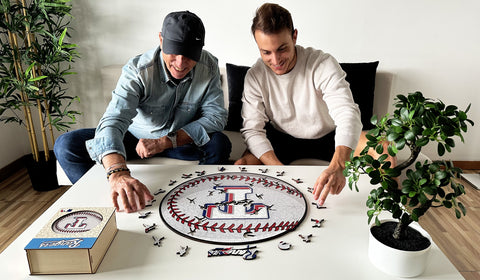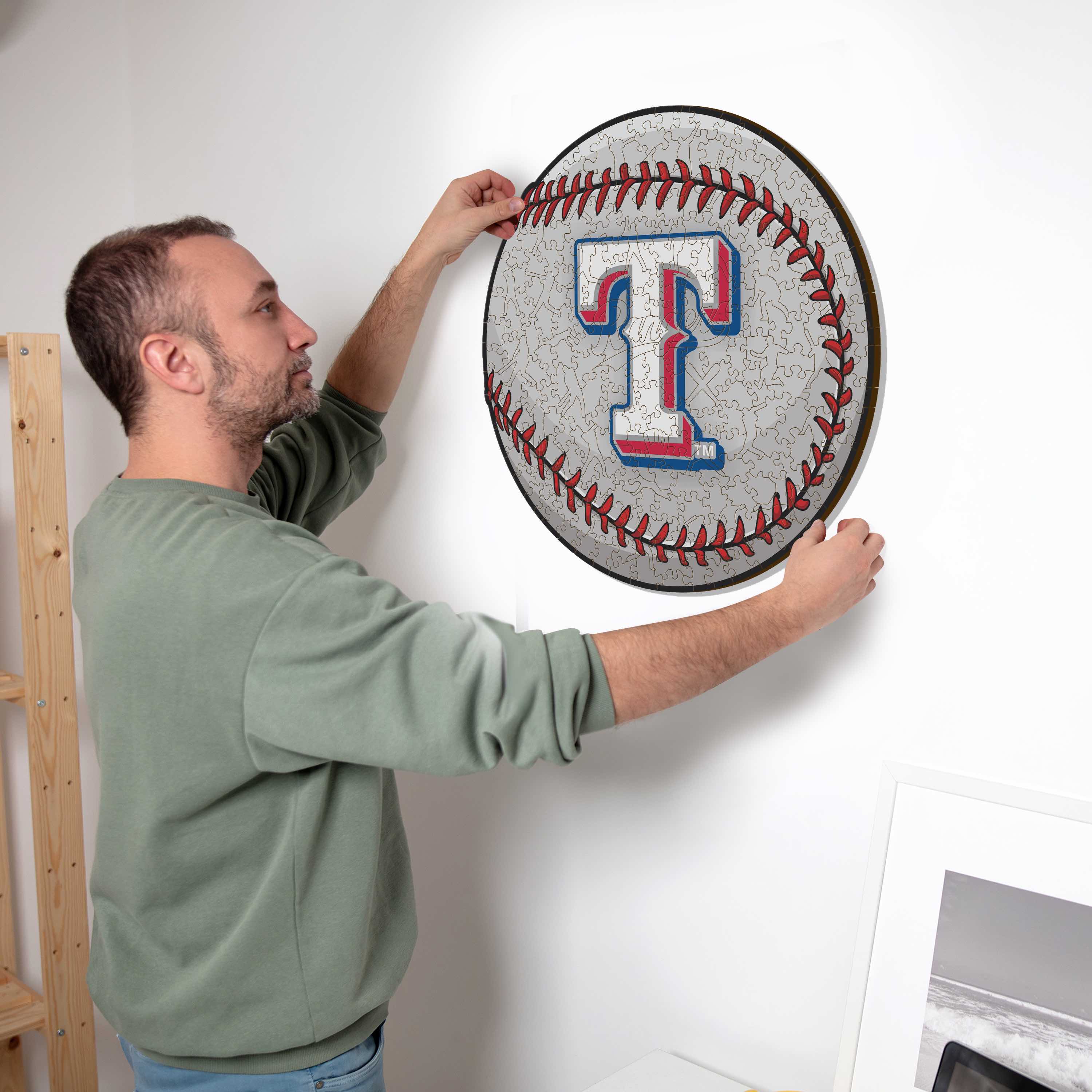 Each puzzle piece has a unique shape that depicts elements related to baseball and iconic player poses.