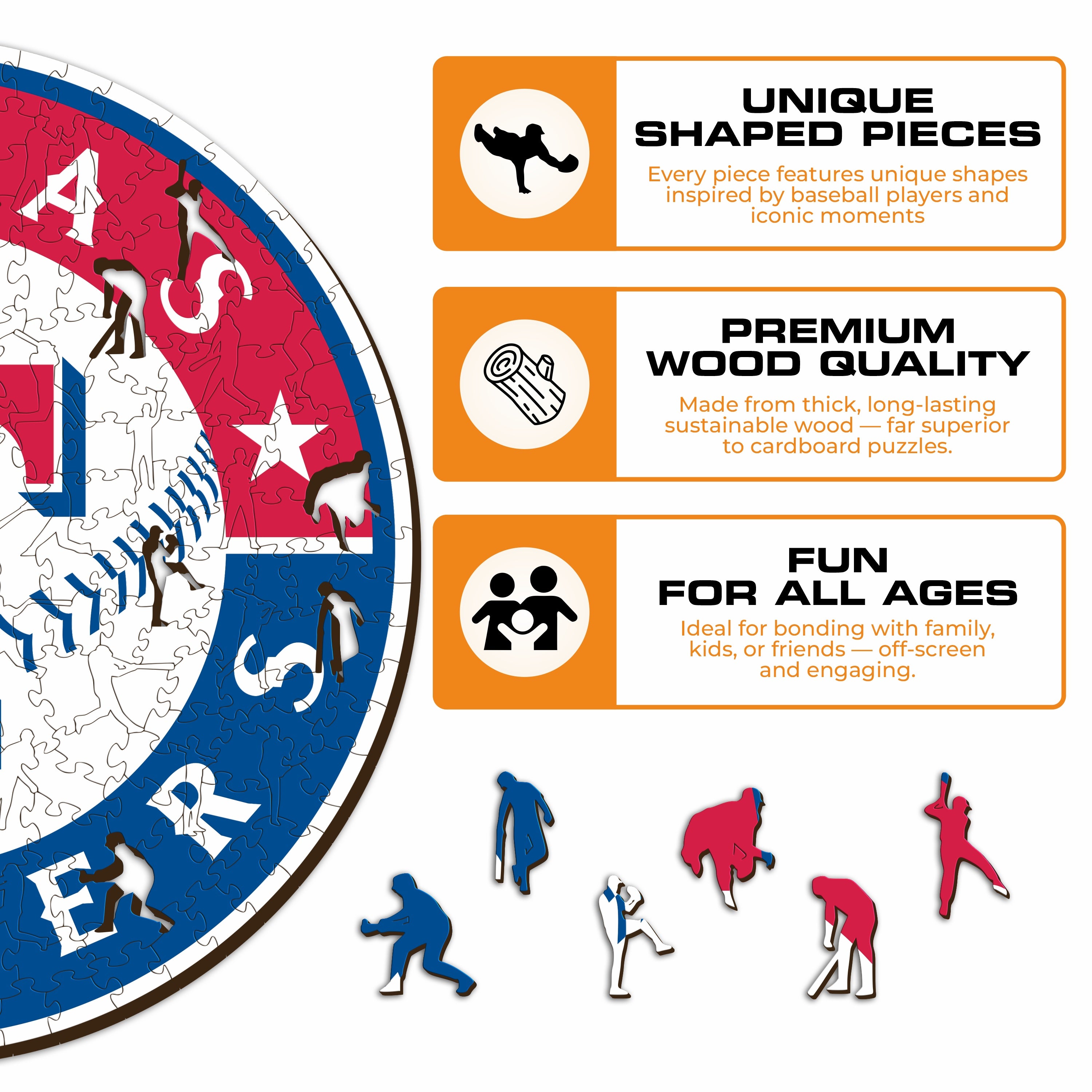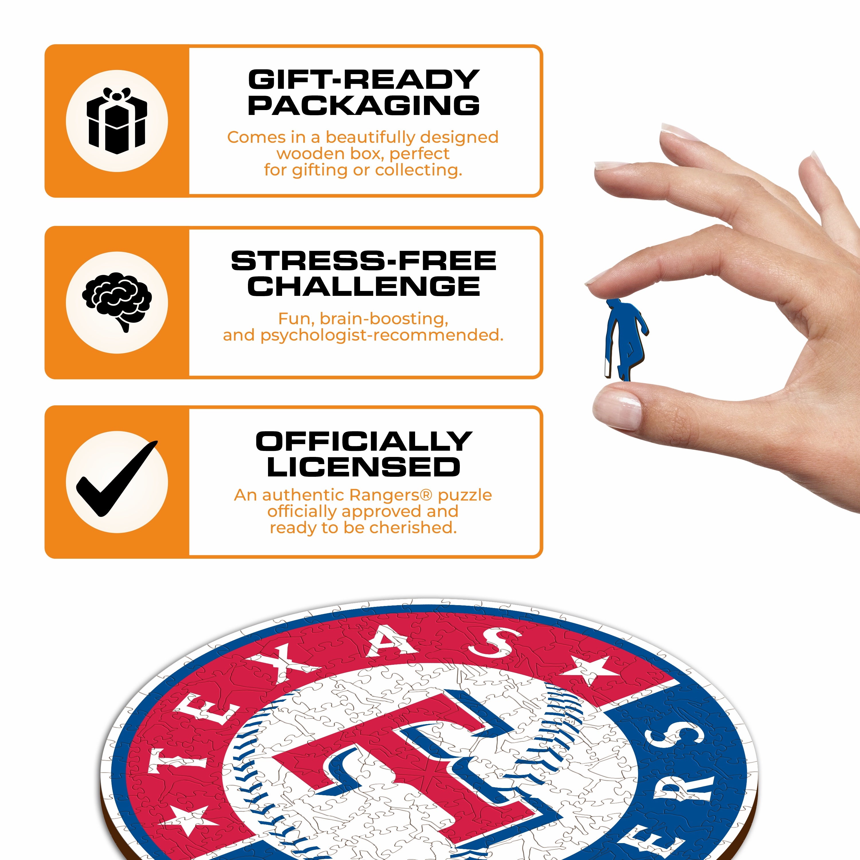 ✓ 1x Texas Rangers™ - Official Wooden Puzzle