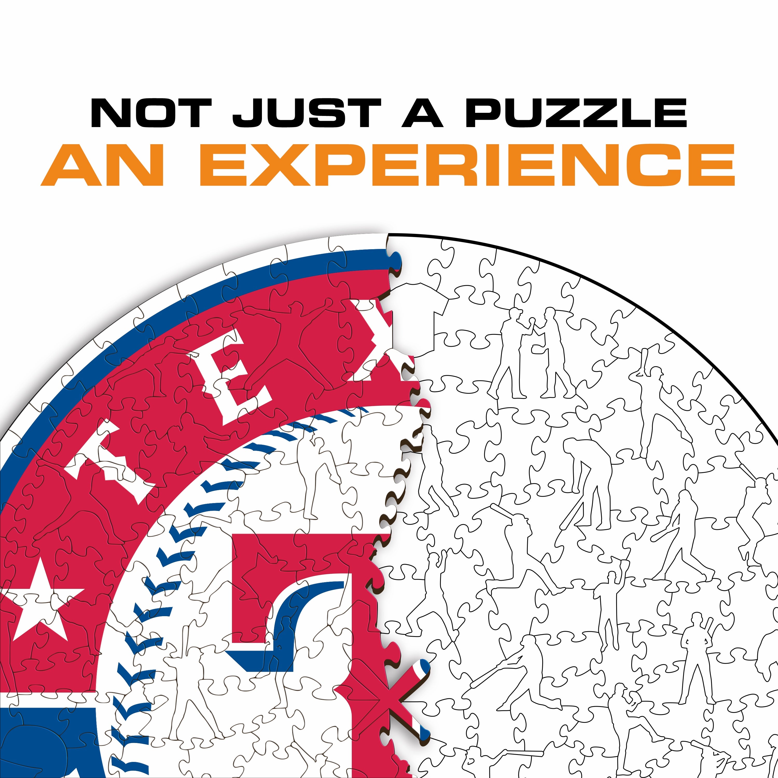 ✓ Each puzzle piece has a unique shape that depicts elements related to baseball and iconic player poses.