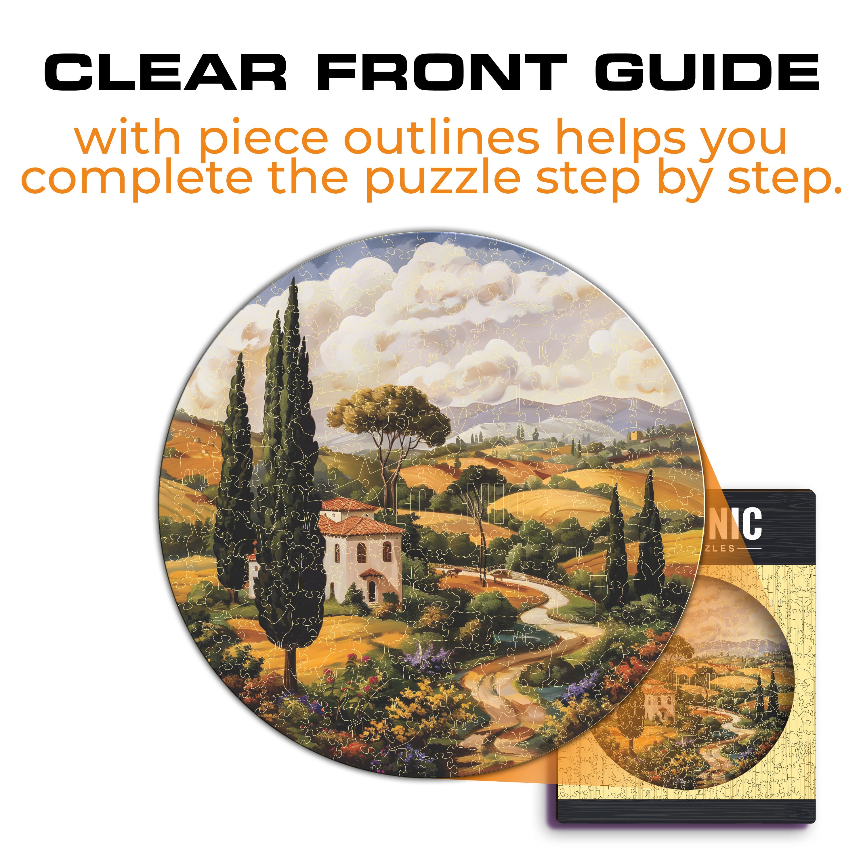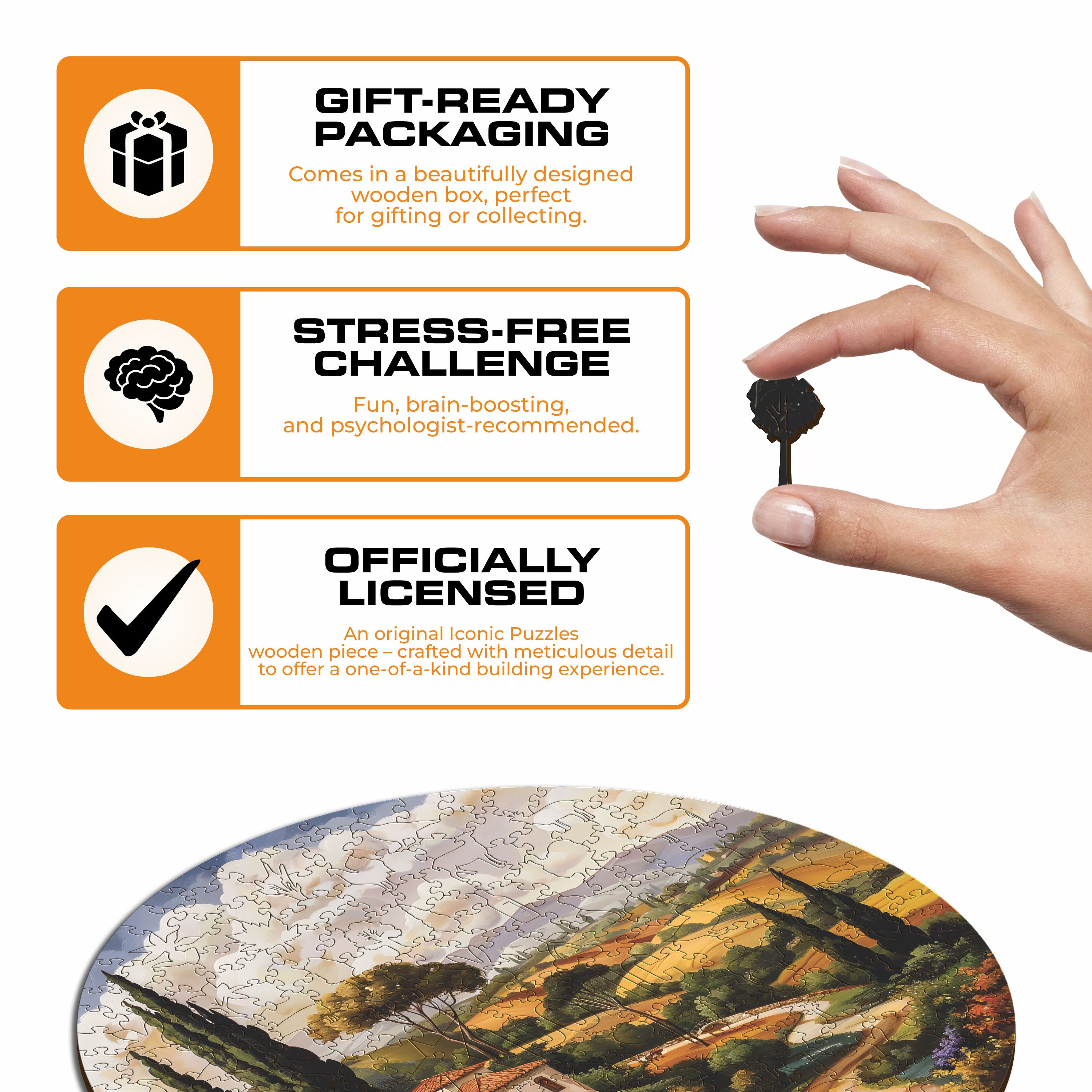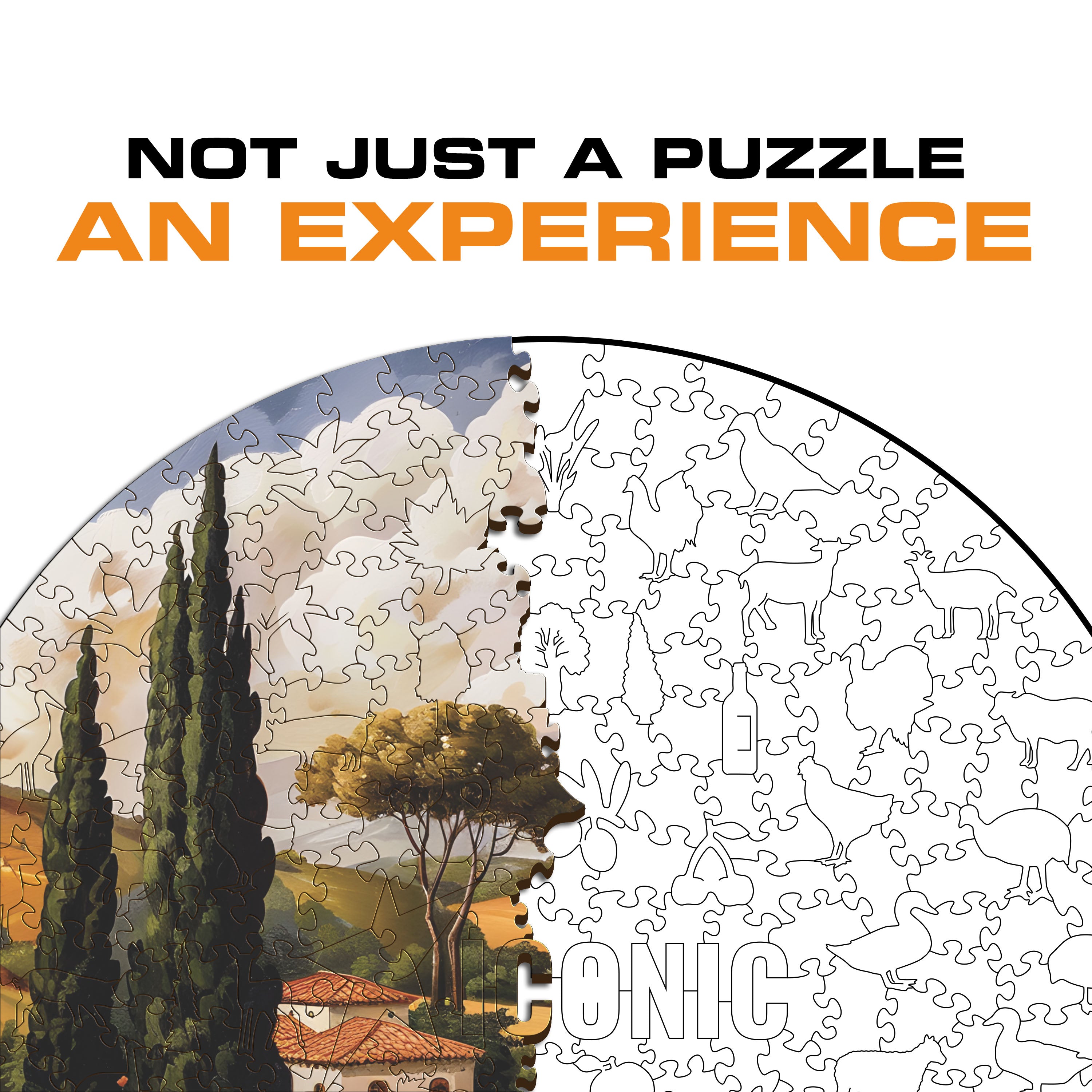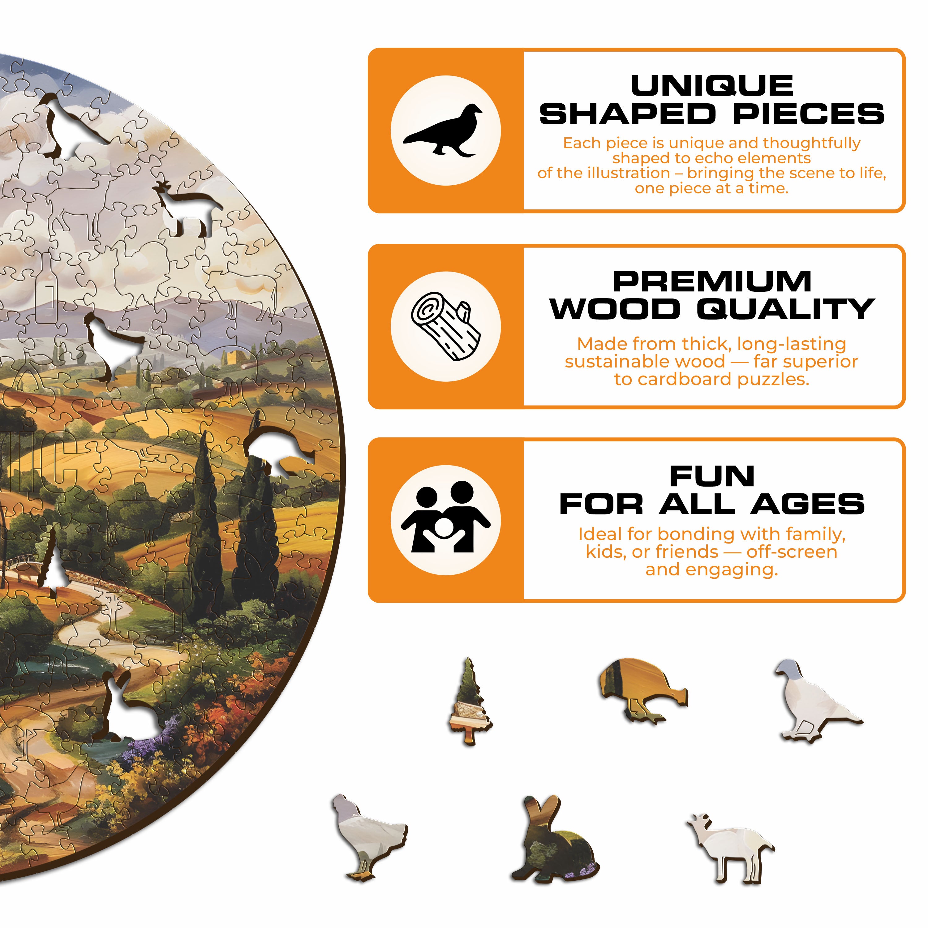 ✓ Each puzzle piece has a unique shape that depicts elements related to Italy. animals and nature.