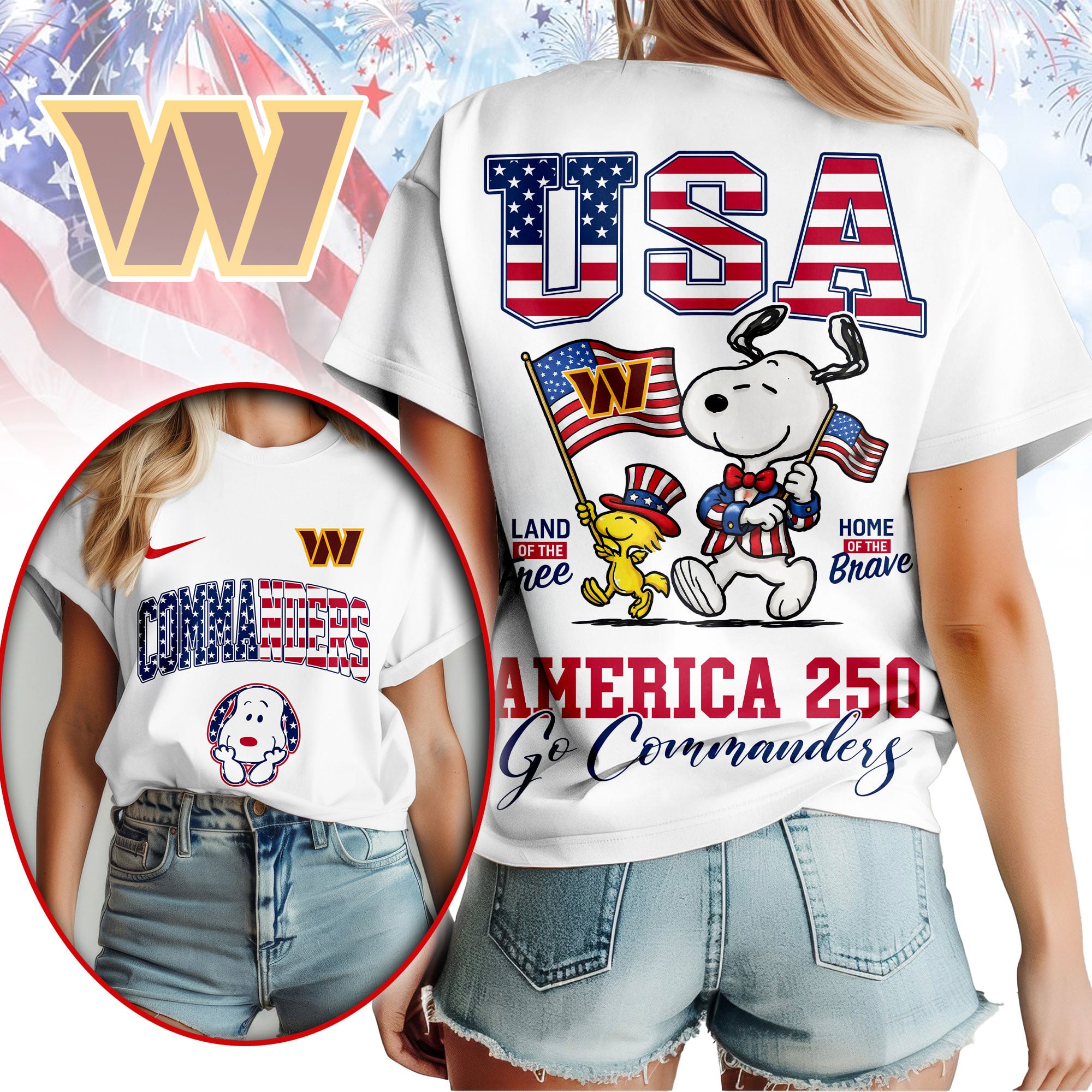 Washington Commanders | Premium NFL Snoopy America 250 3D Shirt